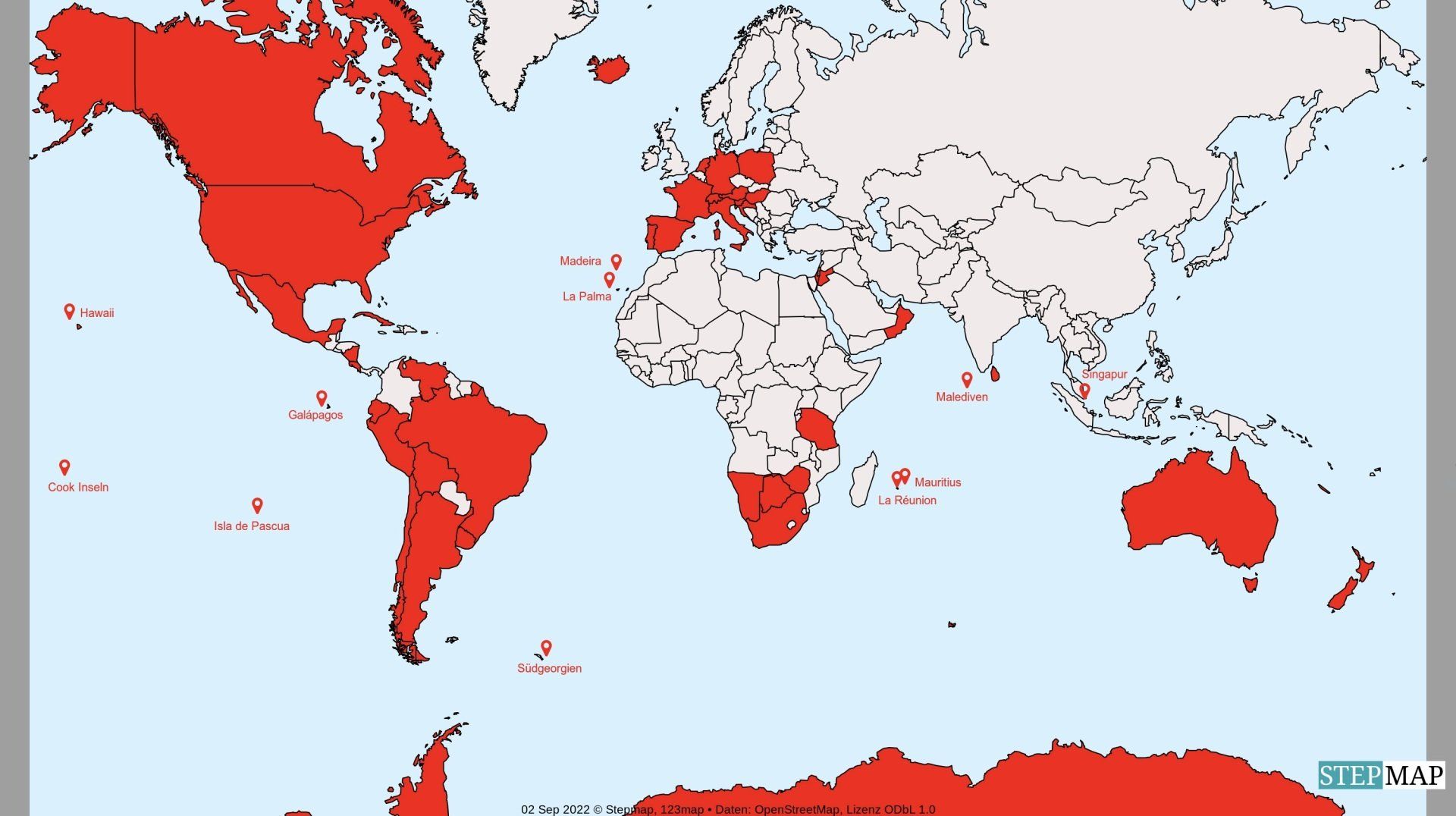 - die rot markierten Länder/Inseln habe ich bereits kennenlernen dürfen: