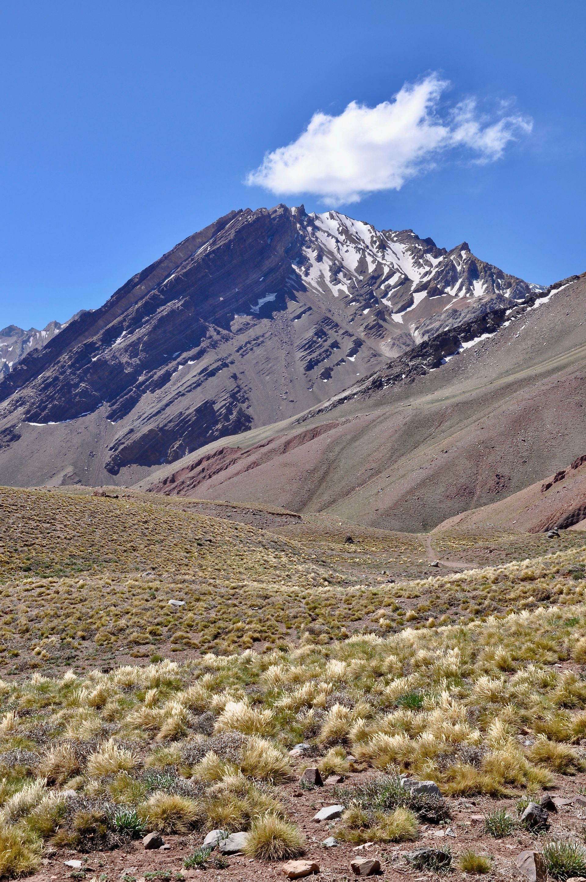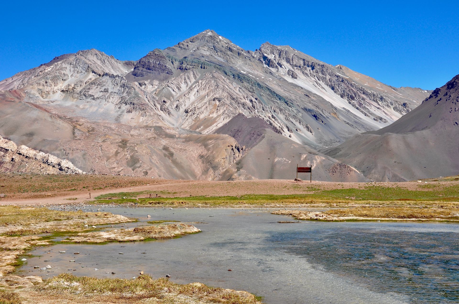 An der Puente del Inca fahren wir zunächst vorbei, unser erstes Ziel liegt weiter westlich. Der höchste Berg Amerikas und außerhalb der Himalaya/Karakorum-Region ruft, der Aconcagua mit seinen 6.962 Metern. Sein Name bedeutet frei übersetzt „steinerner Wächter“ und stammt aus der Sprache der Quechua. Dem Schweizer Matthias Zurbriggen gelang im Jahre 1897 die Erstbesteigung. Heute versuchen es einige Tausend Bergsteiger jährlich, es ihm gleichzutun.