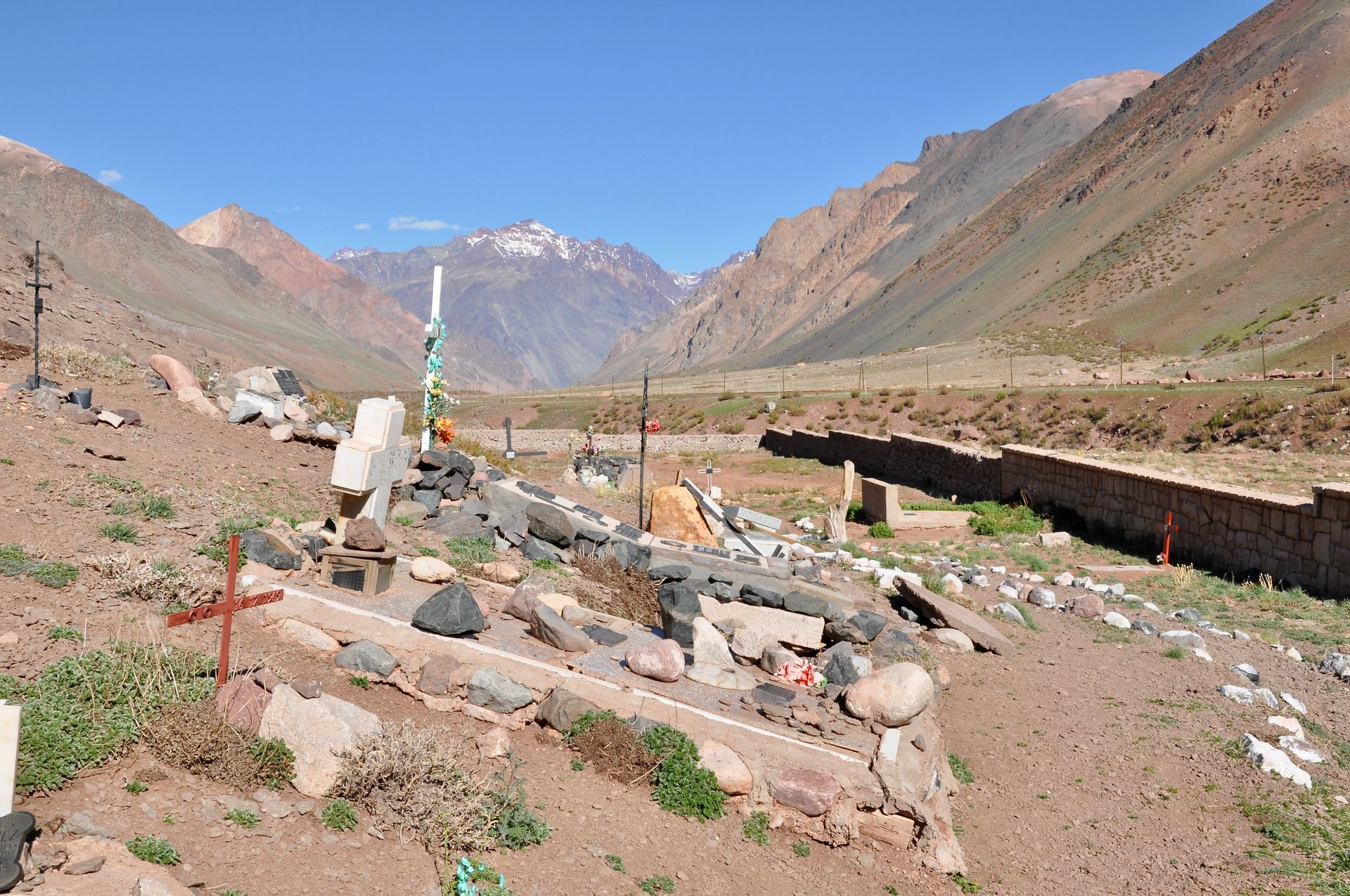 Wir fahren nicht allzu weit und biegen in die kleine Straße ab, die uns zum Friedhof der Bergsteiger führt. Die vielen Gräber erzählen davon, dass so viele Bergsteiger am Aconcagua gestorben sind. An einigen Gräbern hängen Bergsteigerstiefel. Ich bin überrascht über die größere Anzahl der letzten Ruhestätten mit deutschen Namen und Inschriften, hier weiter unten zu Füßen des steinernen Wächters. Mir läuft ein Schauer über den Rücken, als ich sehe, dass ein Grab ausgehoben wurde. Die Saison für die Besteigung des Berges hat noch nicht begonnen.