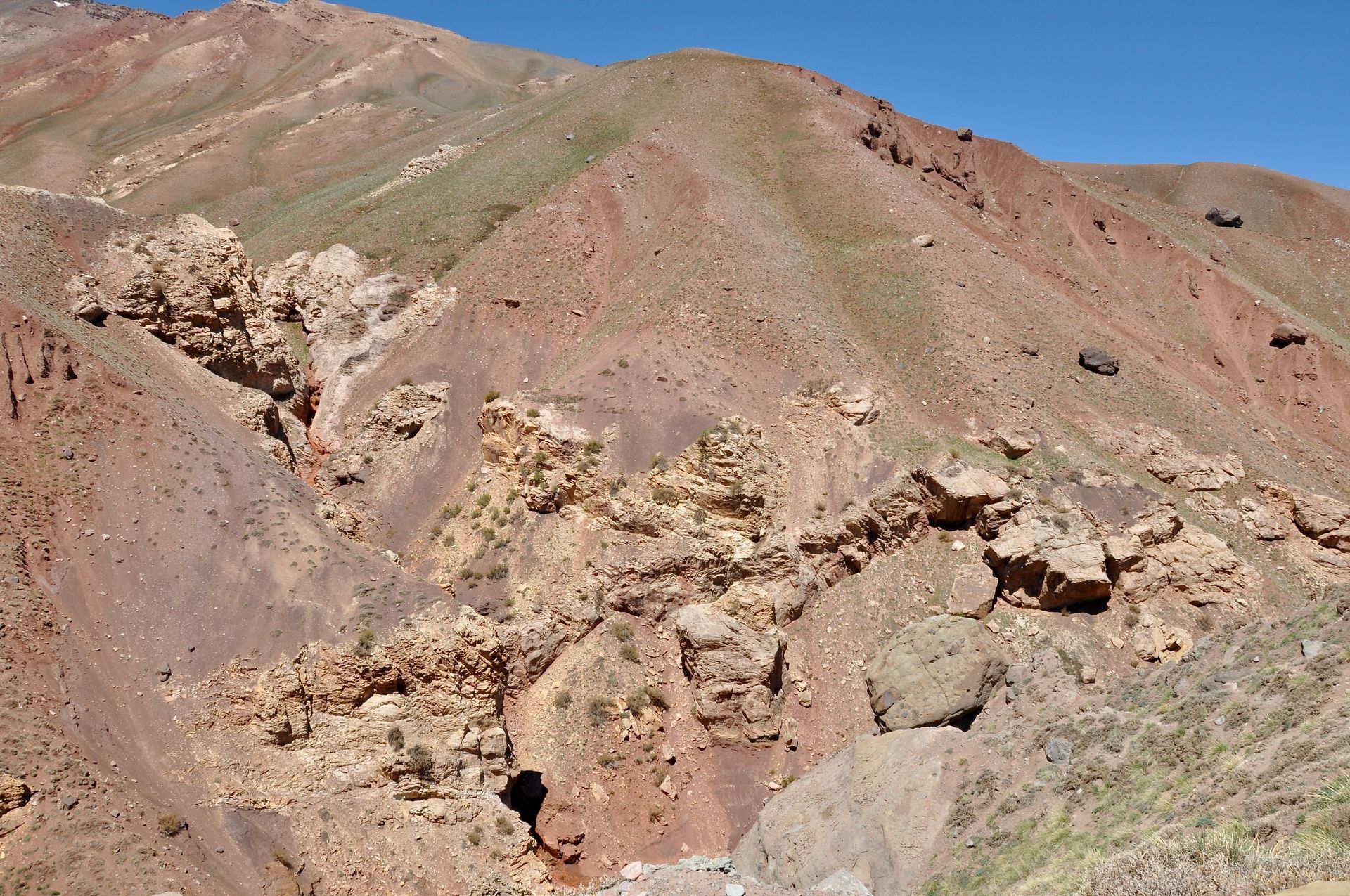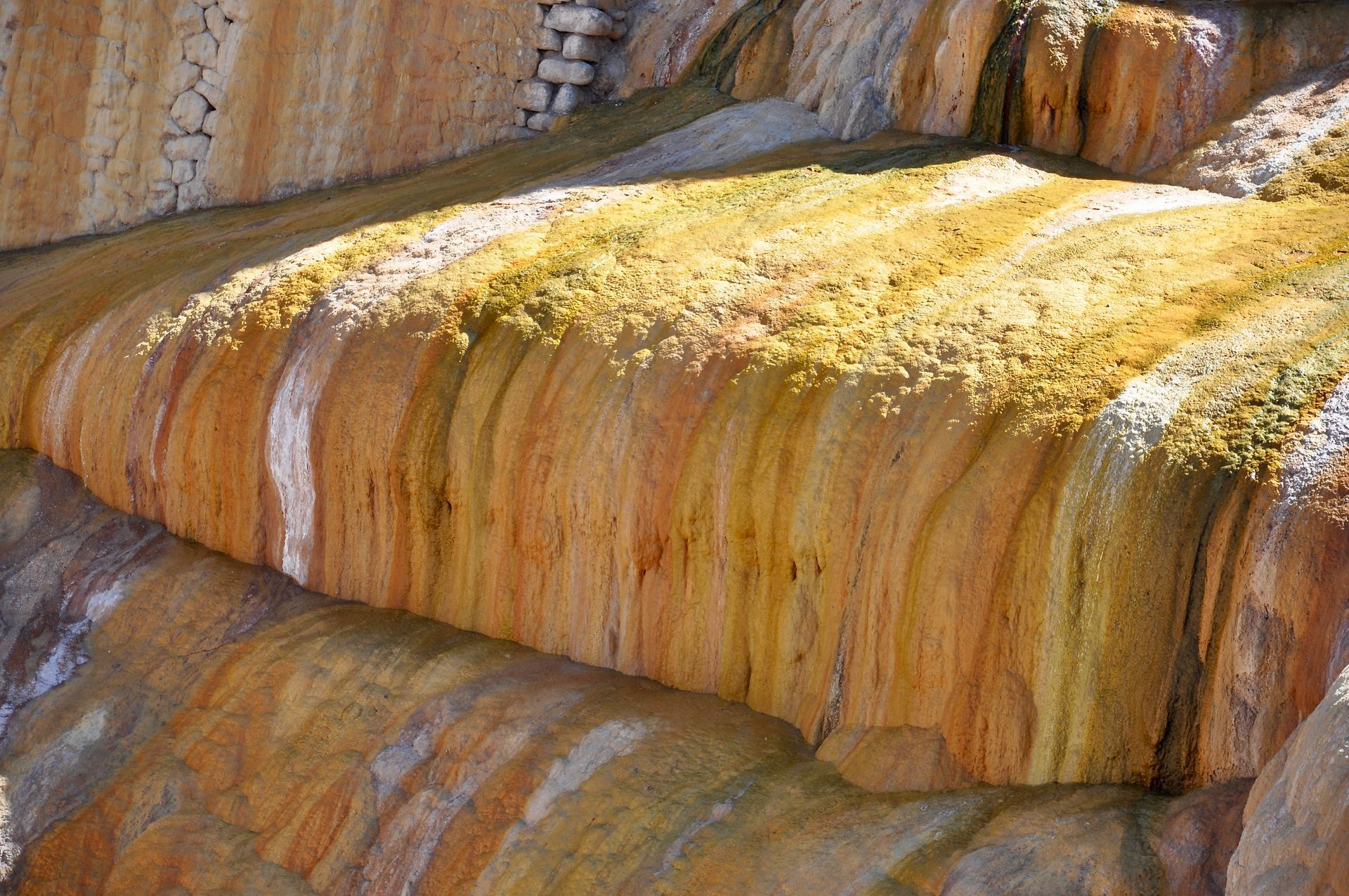 Ein weiterer obligatorischer Stopp folgt an der Puente del Inca. Wir befinden uns noch immer oberhalb von 2.700 Metern. Die Puente del Inca ist keine von den Inkas errichtete Brücke, wie der Name vermuten lassen könnte. Vielmehr handelt es sich um eine geologische Formation. Die natürlich entstandene Brücke überspannt mit 28 Metern den Río de las Cuevas, dessen schwefelhaltiges Wasser für die farbige Wunderwelt ringsum sorgt. Auf der gegenüberliegenden Seite der 47 Meter tiefen Schlucht stehen die Ruinen des ehemaligen Thermalhotels, nun ein UNESCO Naturdenkmal. Mitte der sechziger Jahre des vergangenen Jahrhunderts zerstörte eine Lawine den Ort der Erholungssuchenden, nicht aber die Quelle, aus der auch heute noch 34 Grad warmes Wasser sprudelt.