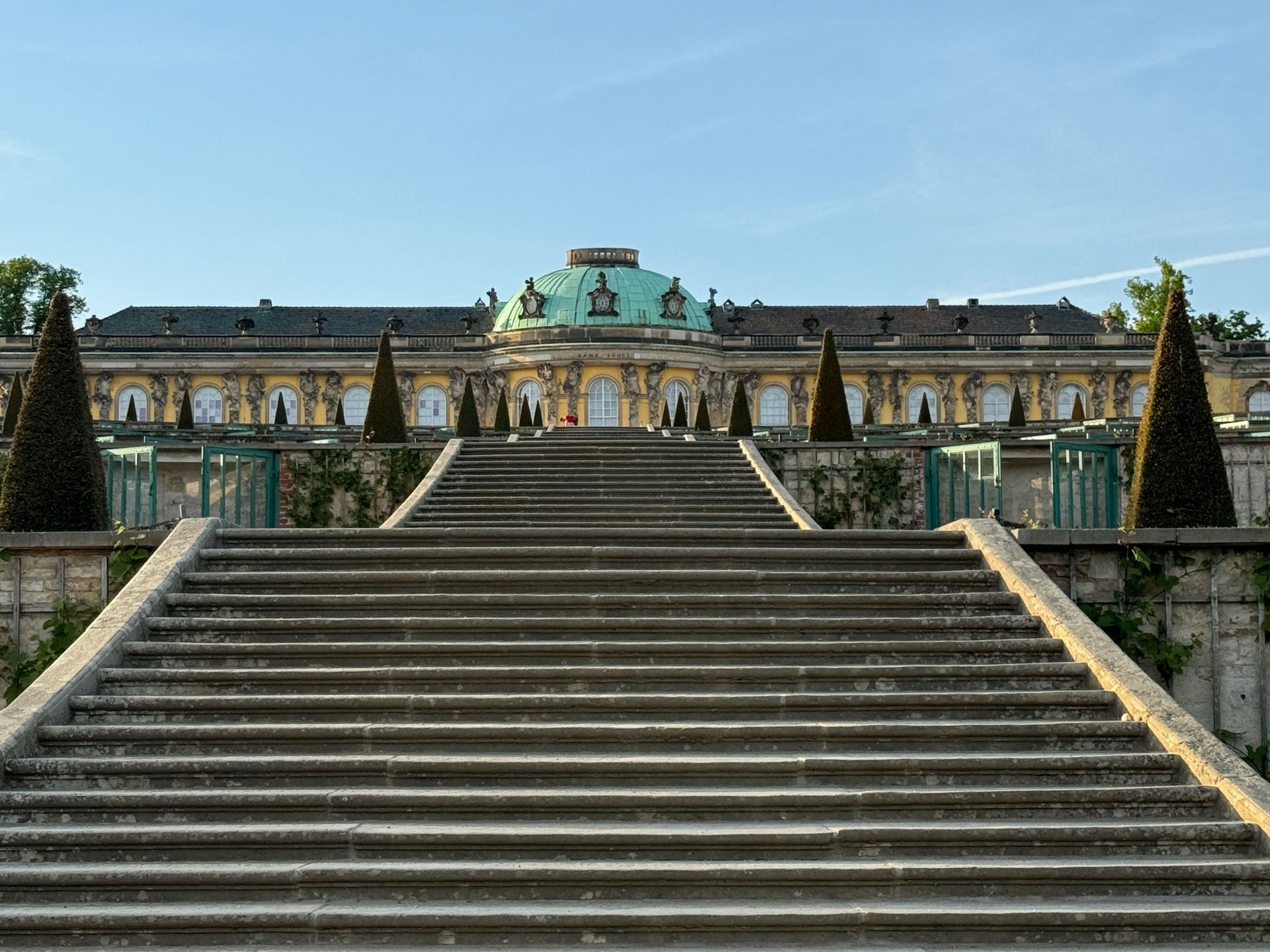 Schloss Sanssouci schauen wir uns lediglich kurz im Vorbeigehen an, da wir für den morgigen Tag Karten für die Schlossbesichtigung haben.