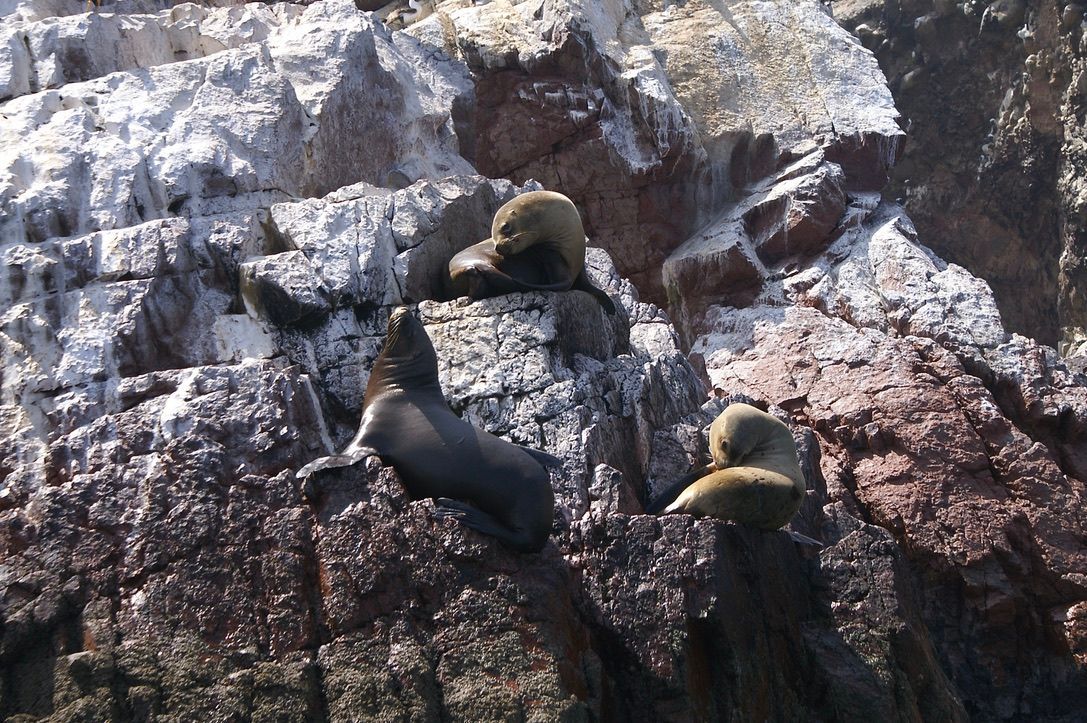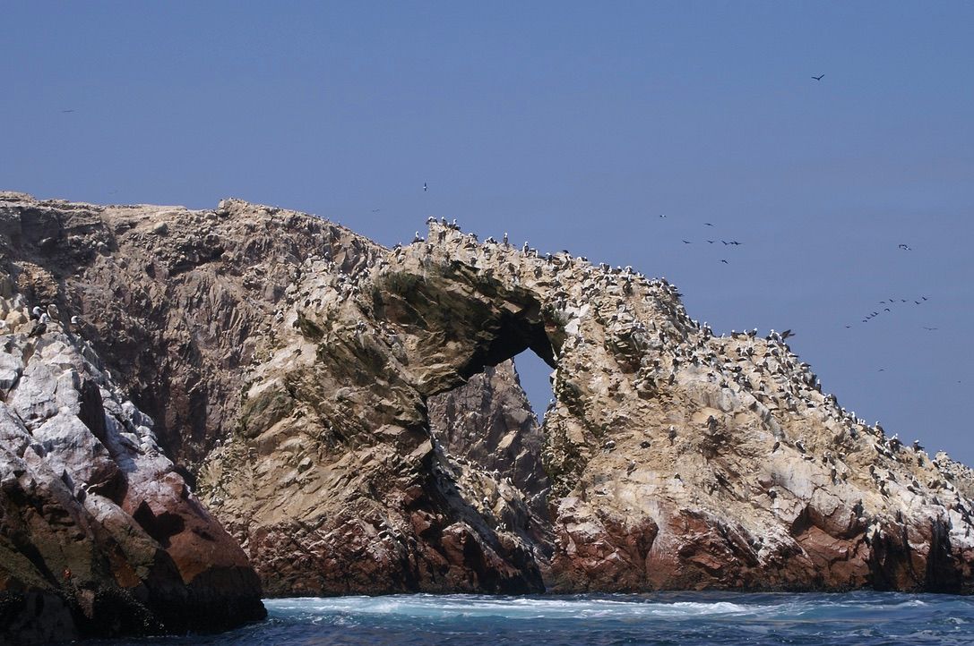 Wir nähern uns den Islas Ballestas und den kleinen umliegenden Felsen. Bis Mitte des 19. Jahrhunderts wurde auf den Inseln noch in großem Stil Guano abgebaut, davon zeugen einige Gebäude. Es ist beeindruckend, wie viele Vögel, von Chilepelikanen über Kormorane, Tölpel, Inkaseeschwalben bis hin zu Humboldtpinguinen hier leben. Auf den Felsen tummeln sich zudem Seelöwen und ich bin sicher, im Meer um die Inseln geht es ähnlich lebhaft zu. Ich bin begeistert von dieser Tierwelt.