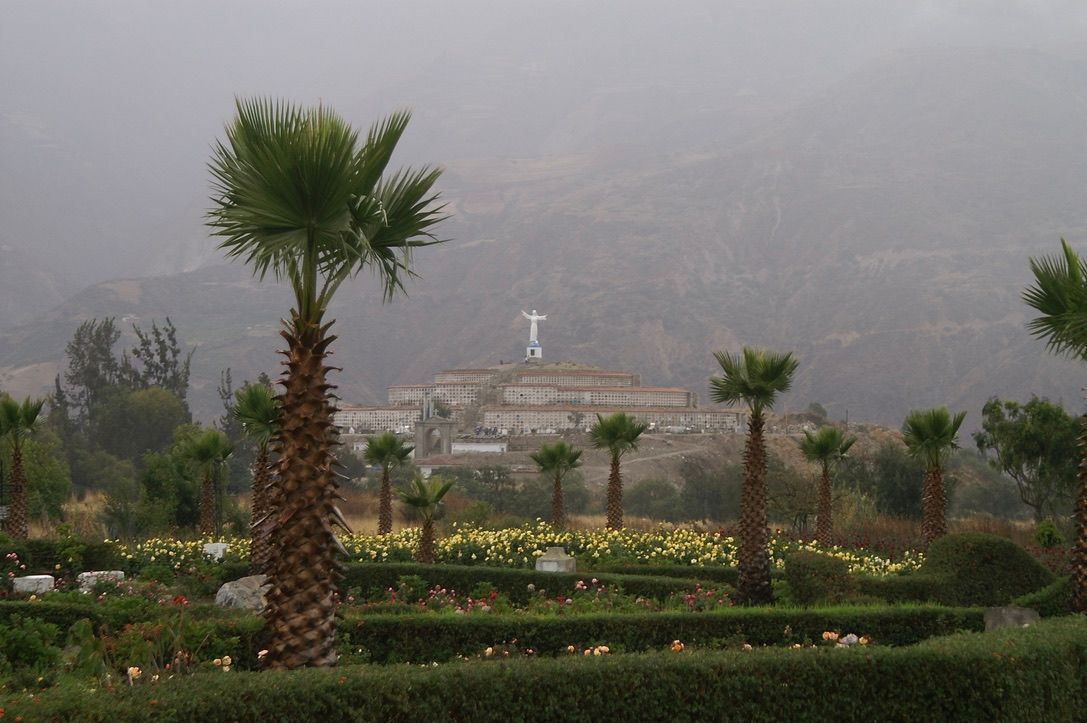 Auf der Rückfahrt halten wir in Yungay. Wir befinden uns auf knapp 2.500 Metern Höhe. Leider regnet es mittlerweile, sodass wir uns nicht allzu lange an diesem Ort aufhalten. Am 31. Mai 1970 begrub eine Schlammlawine Yungay Viejo und 20.000 Menschen starben. Nur der höher gelegene Friedhofshügel mit seiner Christusstatue wurde verschont. Rosen wurden überall dort gepflanzt, wo früher Häuser standen, Parks zur Erholung dienten und Menschen ihr Leben lebten. Auslöser der Schlammlawinen war ein Erdbeben mit einer Stärke von 7,8 auf der Richterskala. Vom Huascarán stürzten Eismassen in einen Gletschersee. Unglaubliche Mengen an Schlamm, Geröll, Felsen und Wasser rasten in Minuten kilometerweit durch enge Schluchten und begruben Yungay und seine Einwohner unter sich.