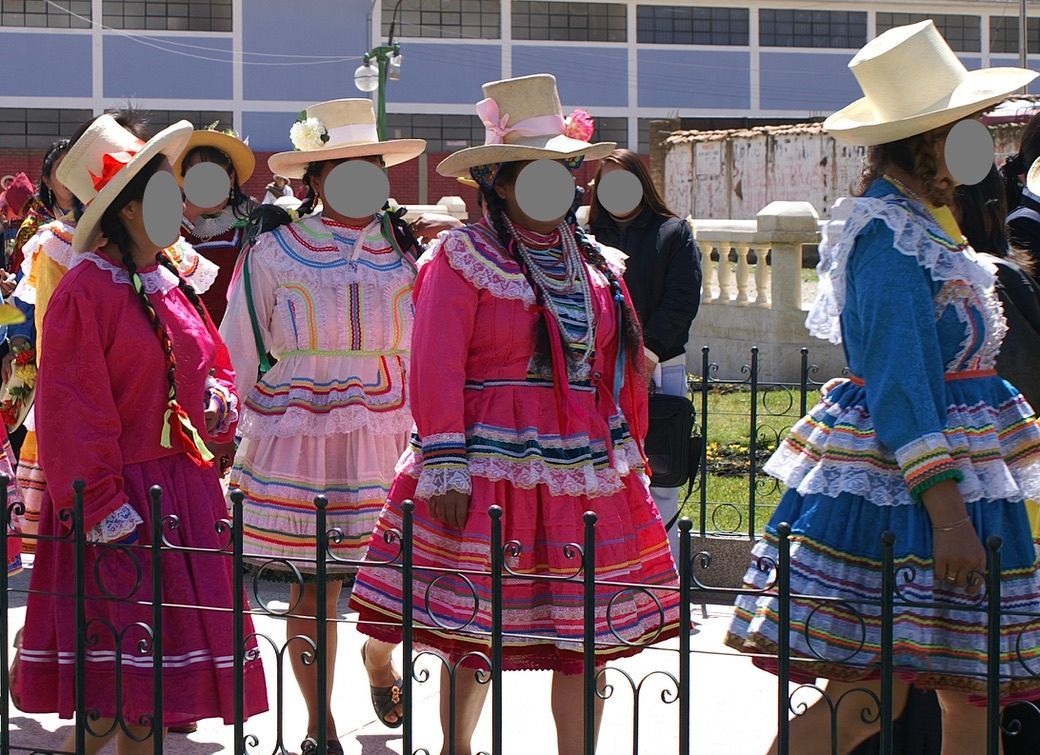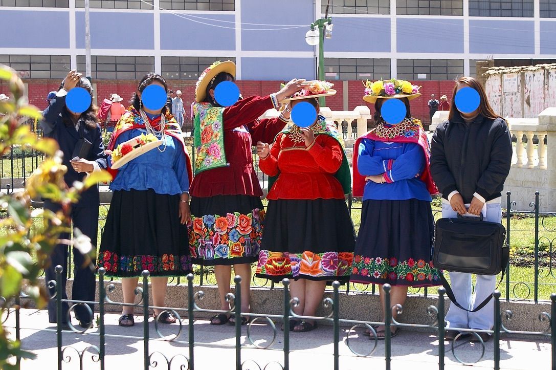 Hinter Huaraz windet sich die Straße weiter in die Höhe. In einem kleinen Ort stehen und sitzen Frauen in ihren typischen Trachten Schlange, wofür genau, erschließt sich mir nicht.