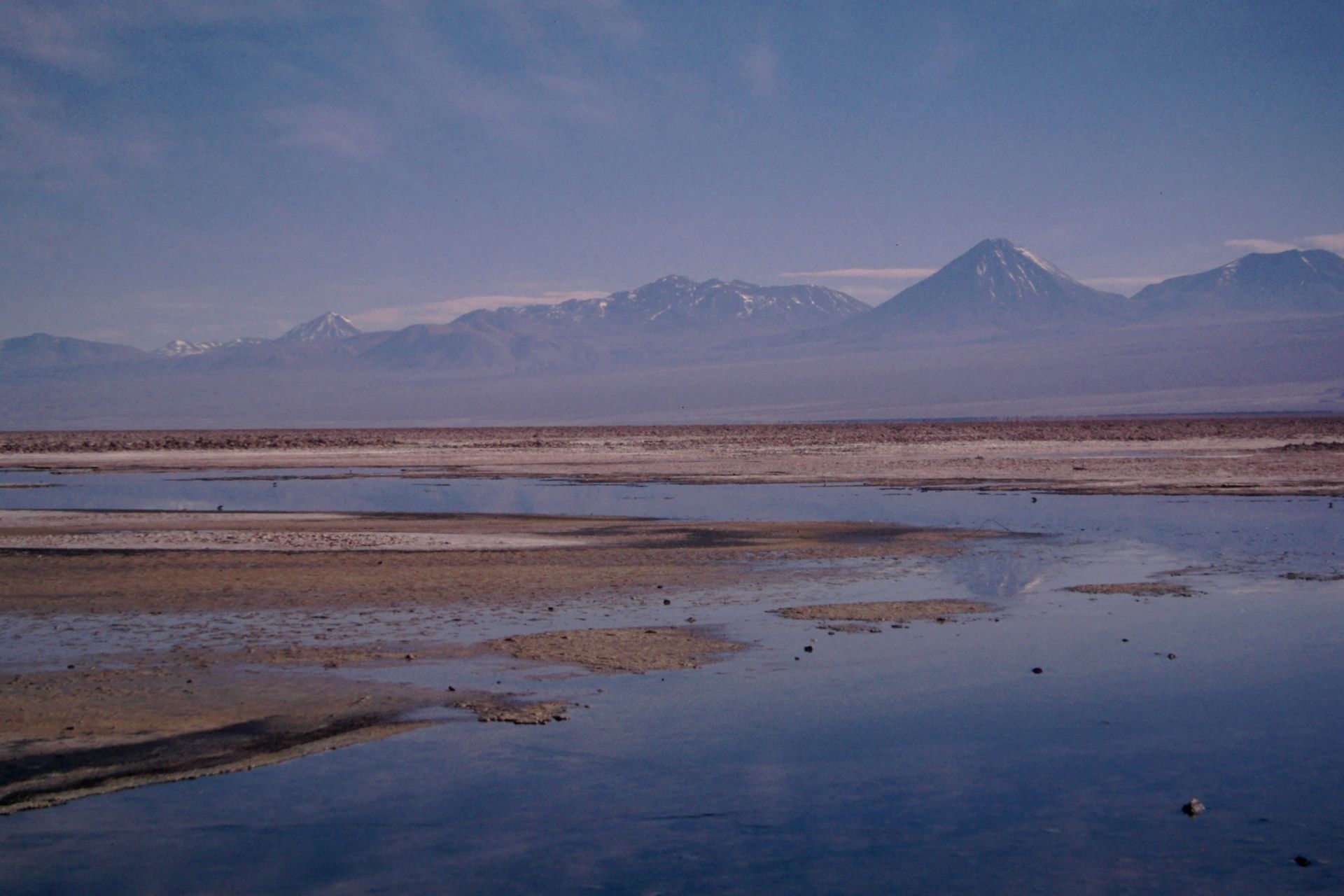 Wir erfahren, dass sie leider kein anderes Fahrzeug hätten. Natürlich wäre es nicht in allerbestem Zustand (was in unseren Augen noch reichlich untertrieben ist), da sie zumeist ausgediente Pickups aus den Minen verleihen würden, aber das wäre nun einmal Südamerika. Nun gut, wir haben keine Wahl und packen unser Gepäck auf die Rücksitzbank. 90 Kilometer und 1 ½ Stunden Fahrt liegen vor uns. Unser Ziel lautet San Pedro de Atacama. Die Strecke ist recht eintönig, ein Asphaltband trennt eine Steinwüste. Kurz vor San Pedro de Atacama ändert sich die Landschaft plötzlich. Wir sehen das erste Mal den Hausvulkan von San Pedro de Atamaca, den Lincancabur mit seinen 5.916 Metern. Es ist traumhaft!