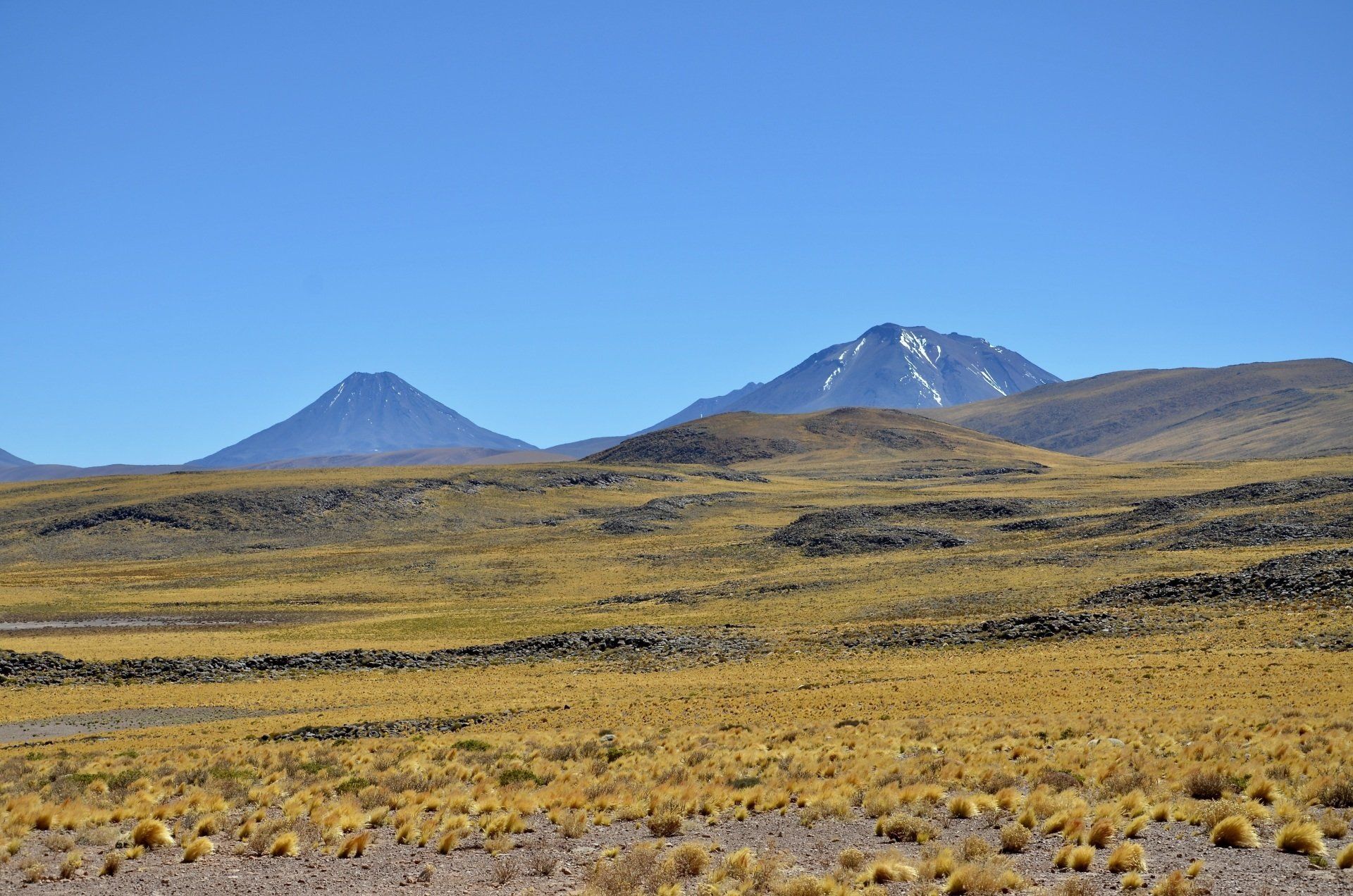 Langsam windet sich die Straße in die Höhe und kurz hinter Socaire, das bereits auf einer Höhe von 3.250 Metern liegt, endet nicht mehr die Asphaltstraße wie wir es bisher kannten, sodass wir merklich schneller vorankommen als in der Vergangenheit. Die Straße ist sogar noch nach dem Abzweig zu den Lagunen geteert und da wir gut in der Zeit liegen, entschließen wir uns, dieser Route Richtung Paso de Sico weiter zu folgen. Die Strecke ab hier ist Neuland für uns und welch wundervolles Neuland! Wir können uns an der Landschaft des Altiplanos und der Puna nicht satt sehen, für uns eine der schönsten Landschaften, die wir bisher auf unseren Reisen gesehen haben. Immer wieder halten wir an, genießen die spektakuläre Umgebung mit den Vulkanen im Hintergrund, machen Fotos von diesen oder auch von Vicuñas, die sich immer wieder blicken lassen.
