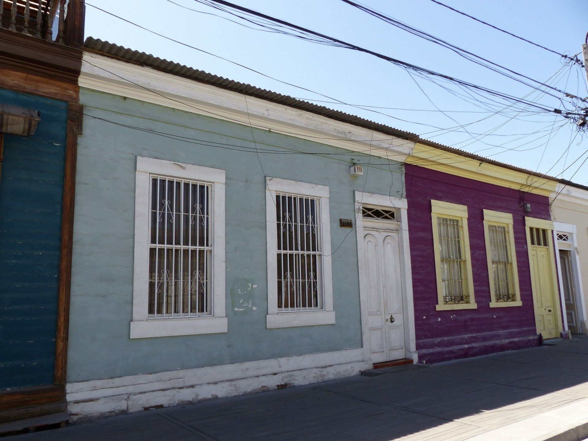 Wir haben uns ein Taxi bestellt und lassen uns die wenigen Kilometer ins Stadtzentrum fahren, wo wir am Beginn der Baquedano aussteigen. Entlang dieses Straßenzuges stehen vielfarbige alte Häuser aus der Zeit, in der die mächtigen Salpeterbarone das Sagen hatten. Die Bürgersteige bestehen teilweise aus Holz und hier verkehrt noch eine kleine historische Straßenbahn. Zweifelsohne ist dieser Straßenzug schön, aber einige der Häuser hätten sicherlich nichts gegen eine weitere Renovierung einzuwenden. Allerdings trägt auch die direkte Lage am Meer nicht gerade dazu bei, dass Renovierungen hier lange vorhalten.