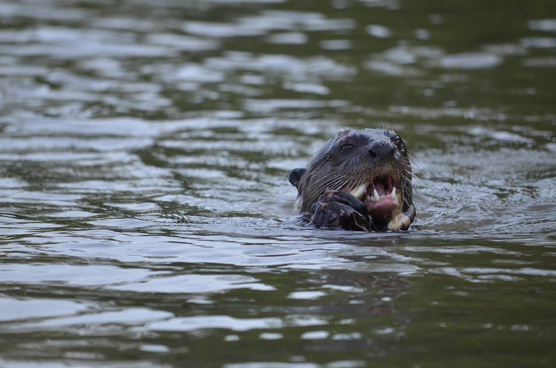 Das Nachmittagslicht ist wunderschön, wir sehen bereits unsere ersten Riesenotter und die seltenen kleineren, aber ähnlich aussehenden Fischotter.
