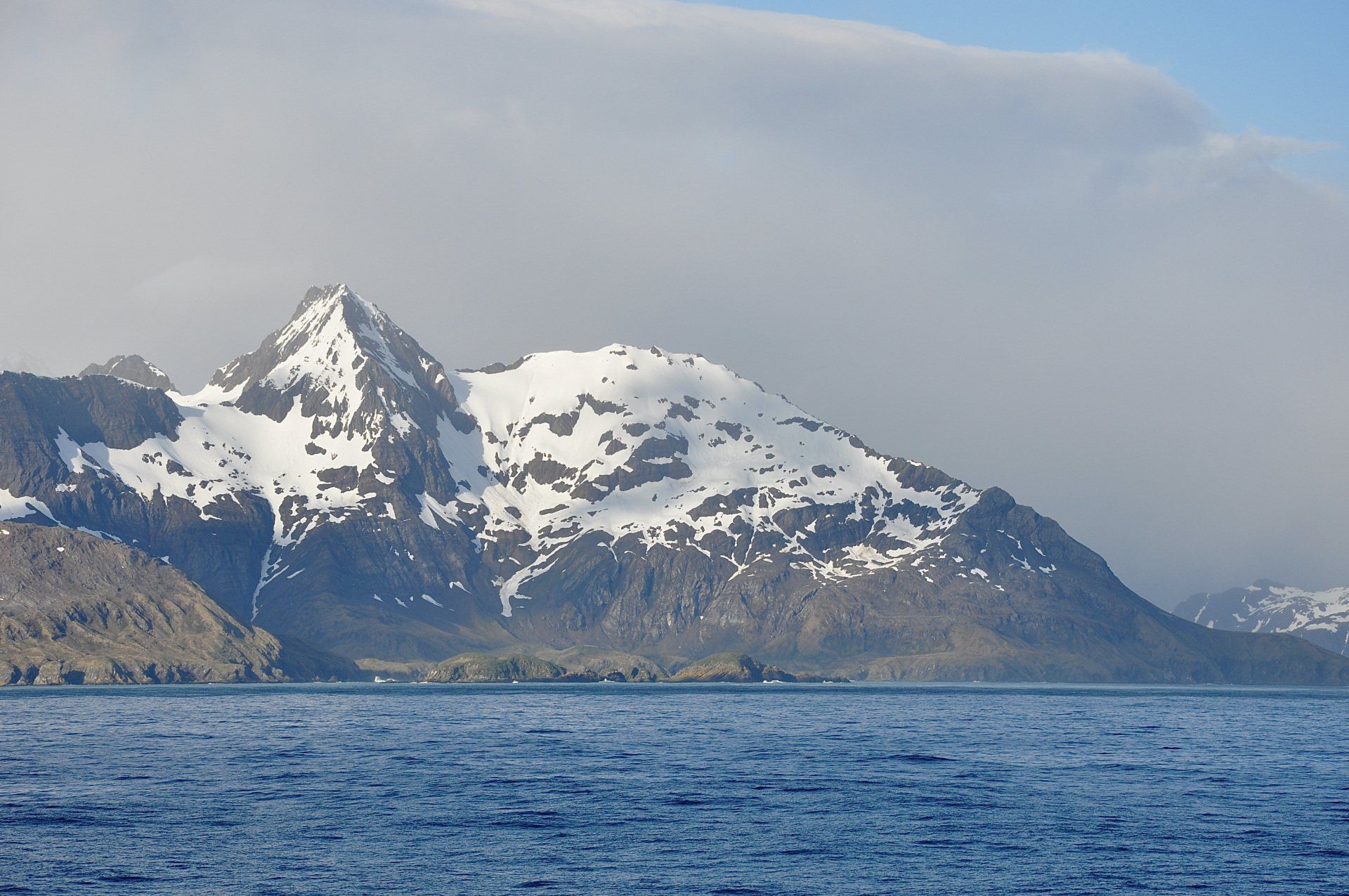 Entlang der Küste Südgeorgiens mit herrlichen Ausblicken auf Gebirge, Gletscher und die tiefblaue See kommt auch schon bald ein größerer Eisberg in Sicht. Zu meinem Leidwesen wird der eisige Wind immer heftiger, währenddessen die See im Vergleich dazu noch recht ruhig ist. Das Schiff stampft bereits leicht dem Drygalski-Fjord entgegen. Mittlerweile halten wir uns an Deck fest, um nicht weggeweht zu werden. Die Stimme durch den Lautsprecher verkündet Windstärke 11 und informiert darüber, dass der Kapitän schauen muss, ob und wie weit er überhaupt bei diesen Bedingungen in den Fjord hineinfahren kann. Da es sich hier nur um eine Einbahnstraße handelt, muss das Schiff wieder gewendet werden, kein leichtes Unterfangen bei diesem Wind.