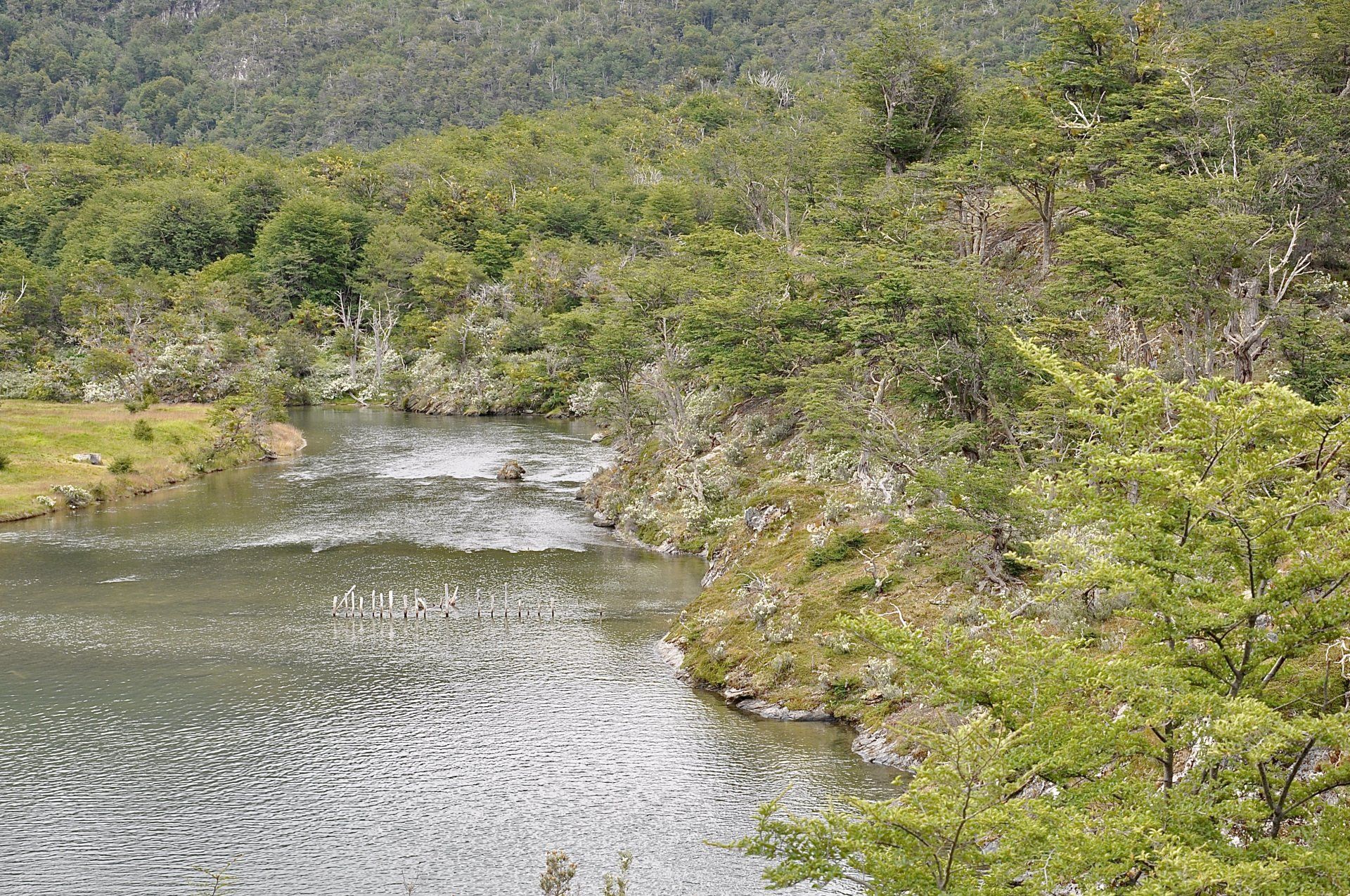 Wir fahren weiter zum Besucherzentrum, immer wieder unterbrochen durch verschiedene Fotostopps. Dort angekommen nehmen wir uns kurz Zeit und schauen uns die lehrreich gestaltete Ausstellung zur Geschichte Feuerlands an. Nicht allzu weit entfernt verlassen wir dann gemeinsam mit unserer Reiseleiterin den Wagen. Der Fahrer wird uns später wieder an einem anderen Punkt aufnehmen. Eine Wanderung führt uns durch ein sehr schönes Gebiet, wir erspähen einen Fuchs und erreichen einen Aussichtsbalkon im Wald, der einen unglaublichen Blick auf die darunterliegende Bahia Lapataia und die Bergwelt freigibt. Der weitere Weg verläuft hinunter bis zu dieser bekannten Bucht.