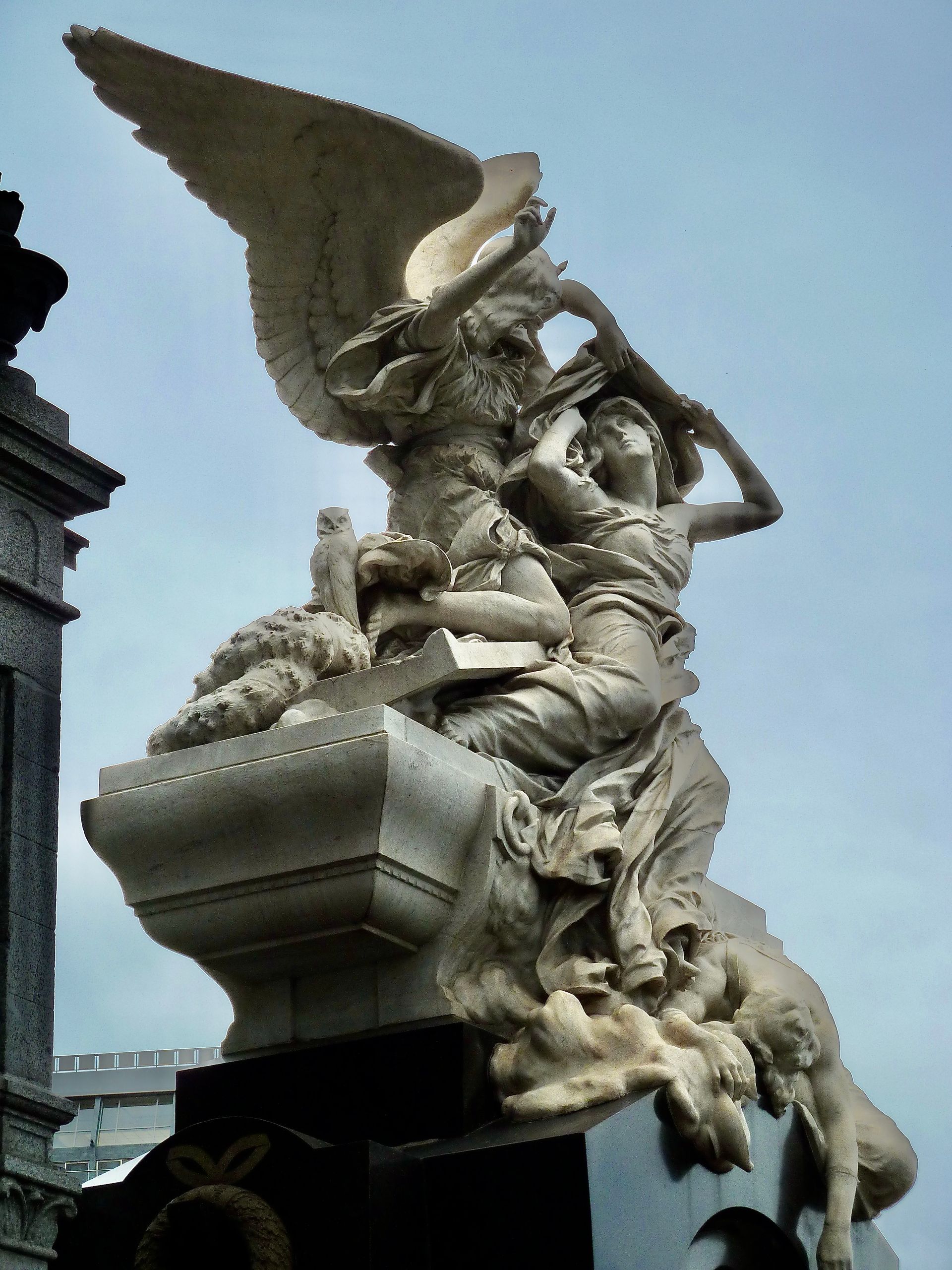 Zuerst fahren wir zum von Touristen eher wenig besuchten, sehr großen Cementerio de la Chacarita. Auf diesem Friedhof ist unter anderem Carlos Gardel begraben sowie es zeitweise auch Juan Domingo Perón war. Diese für so viele Menschen letzte Ruhestätte befindet sich auf einem riesigen Areal. Es ist so weitläufig, dass mehrere breite Straßen hindurch führen, auf denen Autos fahren können. Leider spielt heute das Wetter nicht ganz so mit, hin und wieder fällt aus dunklen Wolken der eine oder andere Tropfen Regen.