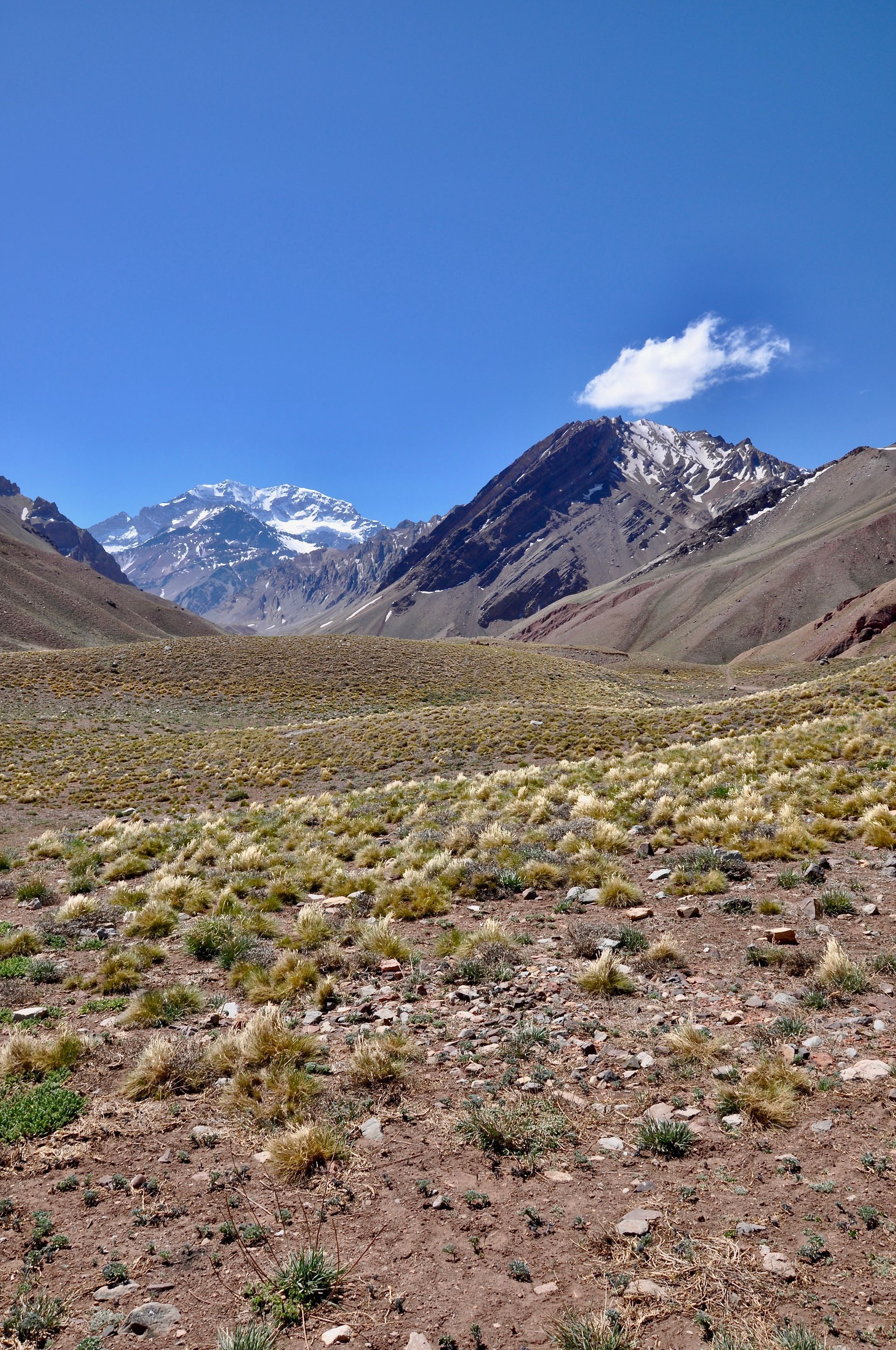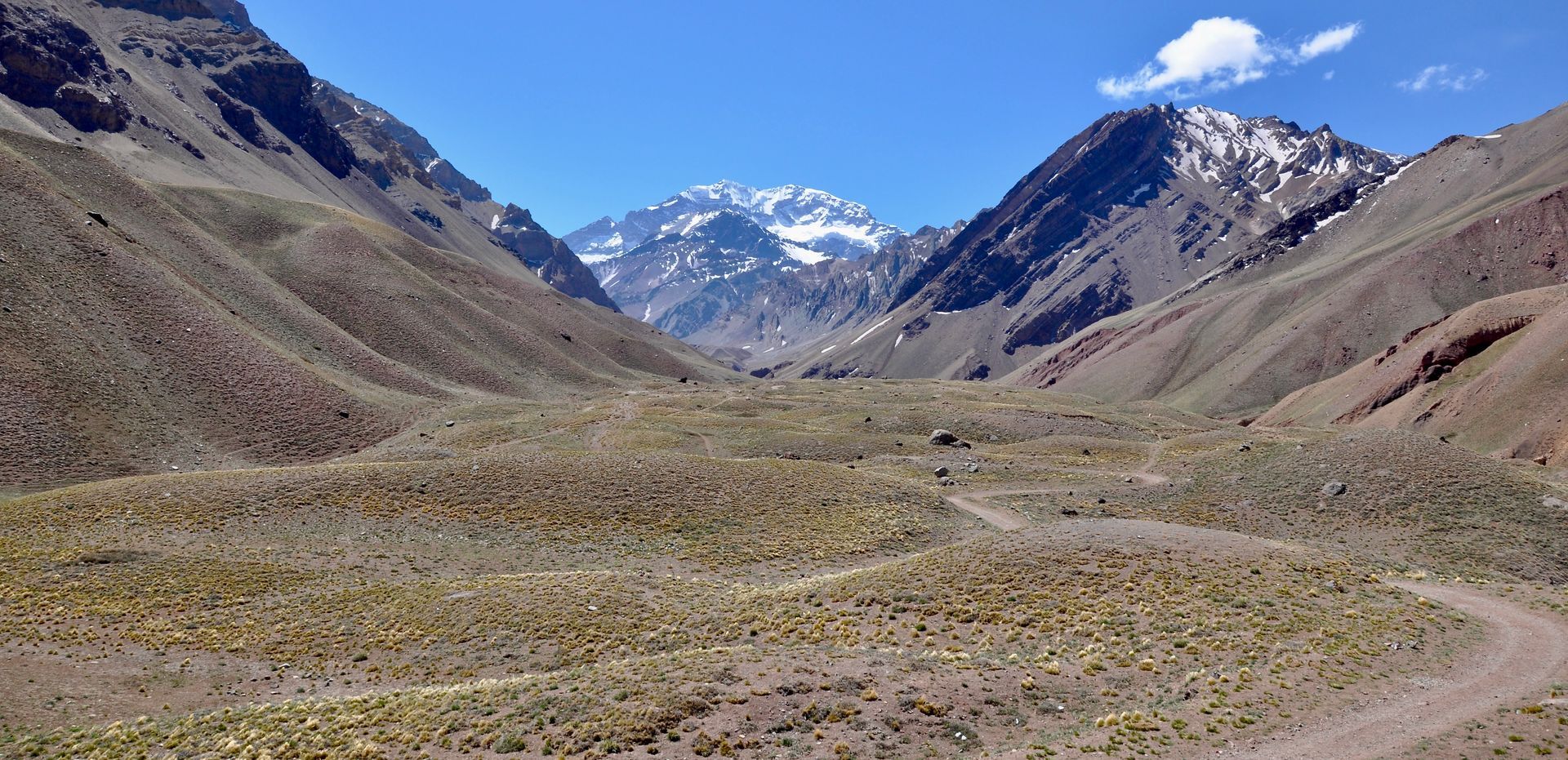 An der Puente del Inca fahren wir zunächst vorbei, unser erstes Ziel liegt weiter westlich. Der höchste Berg Amerikas und außerhalb der Himalaya/Karakorum-Region ruft, der Aconcagua mit seinen 6.962 Metern. Sein Name bedeutet frei übersetzt „steinerner Wächter“ und stammt aus der Sprache der Quechua. Dem Schweizer Matthias Zurbriggen gelang im Jahre 1897 die Erstbesteigung. Heute versuchen es einige Tausend Bergsteiger jährlich, es ihm gleichzutun.