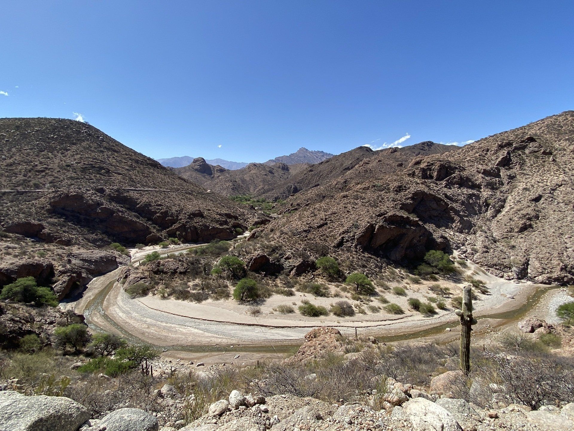 Hinter Molinos biegen wir ab. Die Straße wird enger und sandiger. Hier gibt es Passagen, die mich an das Damaraland in Namibia erinnern. Hinter dem kleinen Ort Colomé, wo ich in ziemlich genau einer Woche zwei Nächte auf dem namensgleichen Weingut gebucht habe, verengt sich die Straße ein weiteres Mal. Die Piste steigt an, die Kurven nehmen zu, während die Einsehbarkeit der Windungen zeitgleich abnimmt.