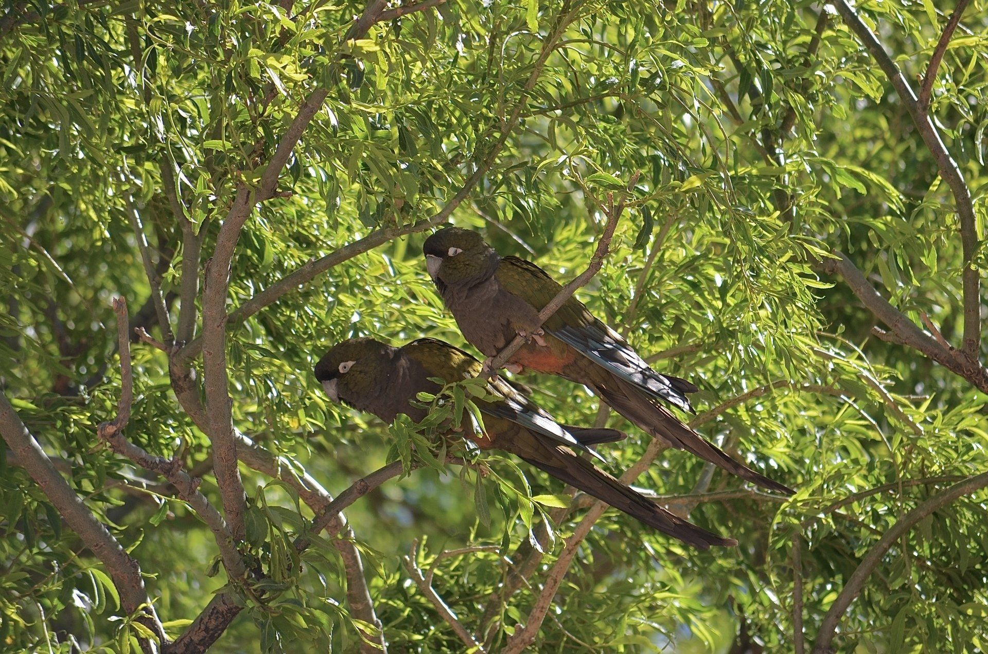 Wir sitzen noch nicht lange in unserem Vehikel und ein großer Sichtungswunsch erfüllt sich. In mehreren Bäumen sitzen Hunderte von Felsensittichen (burrowing parrots). Ich bin vollkommen aus dem Häuschen und überglücklich, dass ich mich nach längerem Überlegen im Vorfeld der Reise entschieden habe, einen zusätzlichen Body mit Teleobjektiv mitzuschleppen. Die kleinen Sittiche sind äußerst scheu, aber es gelingen mir trotzdem ein paar Aufnahmen. Ich könnte den kleinen Rabauken stundenlang zusehen, so witzig finde ich ihr Verhalten. Irgendwann reiße ich mich dann schweren Herzens los, weiß ich doch, wir haben unsere Fahrt gerade erst begonnen - und was höre ich von meinem Guide, als ich in den Wagen steige und mich entschuldige, dass ich ihn wieder länger habe warten lassen, „take your time for your photos“. Warum können nicht alle Guides so sein?