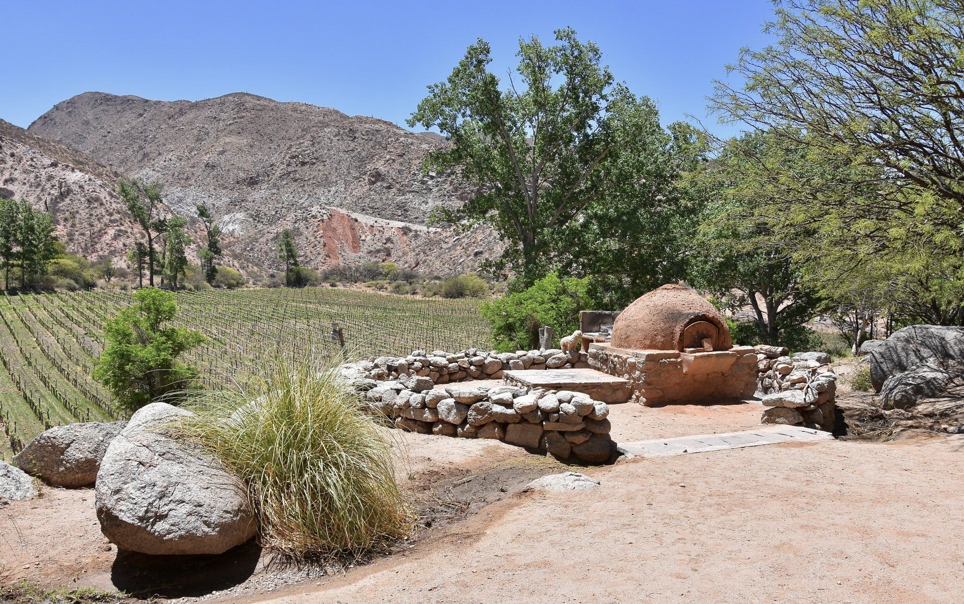Auf der Terrasse mit wunderbarem Blick auf die Weinreben im Tal und den Algarrobo vor dem Gebäude nehmen wir Platz. Ist das eine Wohltat für die Seele. In fließendem Englisch erfahre ich, dass sich hier bis vor kurzem das höchste Weinanbaugebiet befunden hat, bis zu dem Zeitpunkt, als man sich entschloss, auch in Tibet Wein anzubauen. Die Weinreben, auf die wir in diesem Moment schauen, befinden sich in 2.400 Metern Höhe; zu Tacuil gehören aber auch Weinreben, die auf 2.700 Metern wachsen. Die Höhe und die Trockenheit findet sich in der Haut der Trauben wieder, diese ist später hauptverantwortlich für die besondere Qualität der Weine. Ich koste einen Torrontés, der einzige Wein, der seinen Ursprung in Argentinien hat sowie drei Rotweine des Weingutes. Ebenso interessant ist für mich zu hören, dass sich Colomé bis zur Jahrtausendwende im Eigentum der Familie Dádalos befand. Als die große Wirtschaftskrise Argentinien ergriff, man sich aber von Colomé trennte und verkaufte.