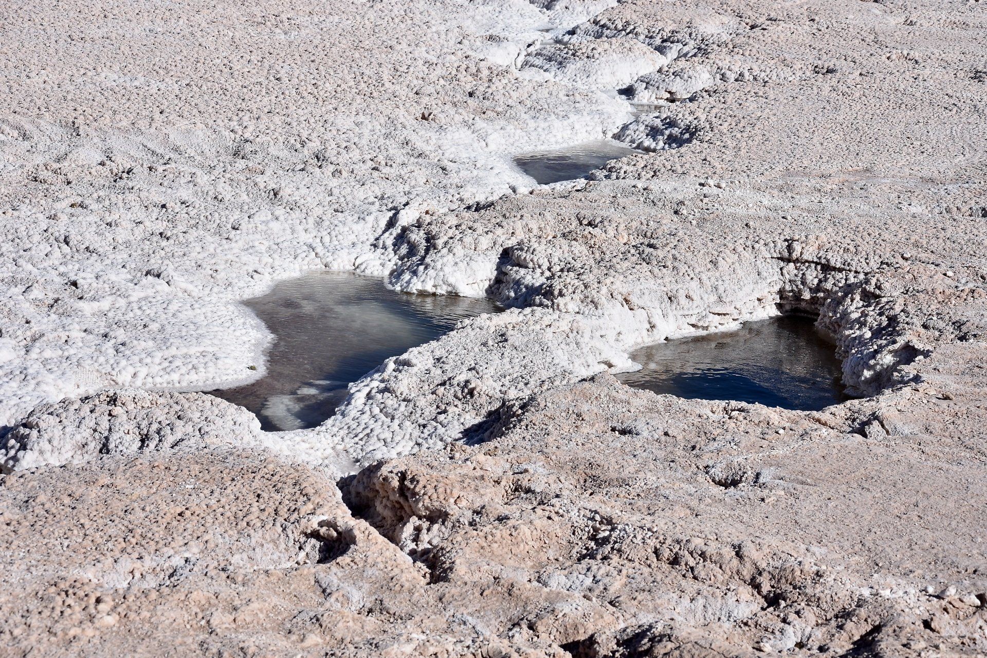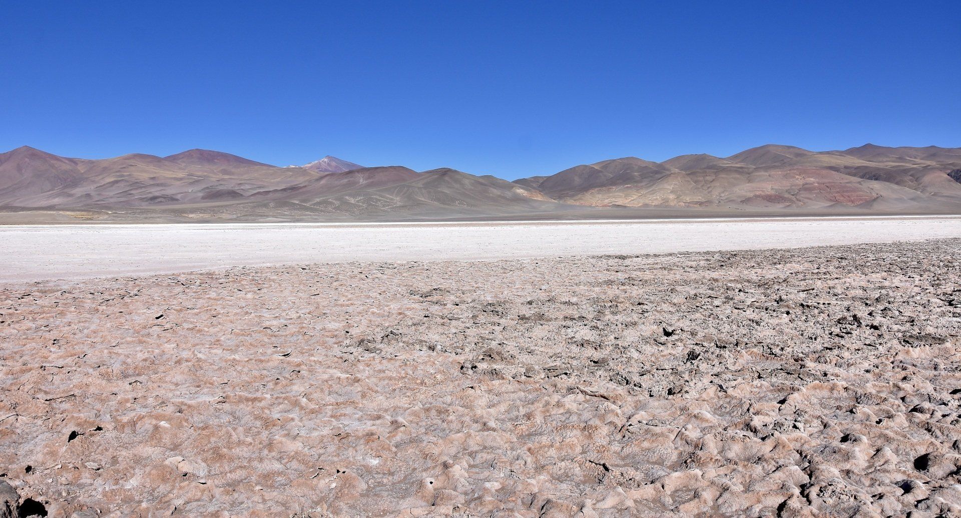 Es ist wirklich erstaunlich, welche Unterschiede es bei den Salzseen im Hochland gibt, von blendend weiß und eben, wie am Salar de Uyuni, bis hin zu ockerfarbenen Salzgebilden, die so groß und uneben sind, dass man nicht darauf laufen kann, wie am Salar de Atacama … und eben alles dazwischen, so wie nun der Salar de Pocitos, dessen Oberfläche in sich schon nicht einheitlich ist. Ich laufe umher, meist jedoch sehr umsichtig, da ich feststelle, dass der Untergrund wesentlich feuchter ist, als es auf den ersten Blick erscheint. Mein Guide hat mich an einer Stelle aussteigen lassen und hält nun in ziemlicher Entfernung. Ich kann mir wieder so viel Zeit lassen, wie ich möchte, ich fotografiere und genieße. Eine unglaubliche Stille liegt über der Salzebene – und eine unglaubliche Atmosphäre. Seit wir heute Morgen in Cachi losgefahren sind, hatte ich kaum Zeit, einmal durchzuatmen. Damit meine ich nicht die ohnehin nicht gerade mit viel Sauerstoff durchtränkte Luft, mit der ich bisher glücklicherweise keine Probleme habe, sondern die Eindrücke, die ständig und in so unterschiedlicher Gestalt auf mich einwirken. Dabei ist das erst der Anfang meiner Reisetage, die ich in der Puna verbringen werde - und das Tagesziel, Tolar Grande, ist noch längst nicht erreicht, aber die Schatten werden schon länger und es ist bereits nach 17:00 Uhr.