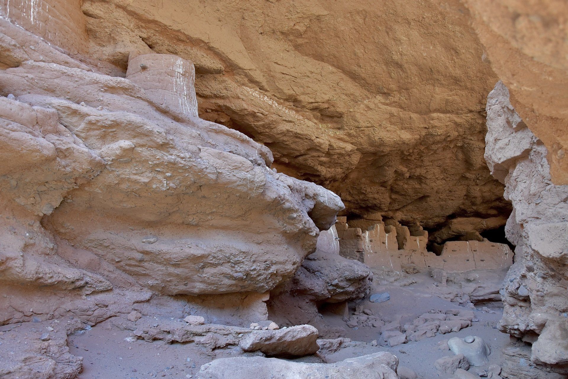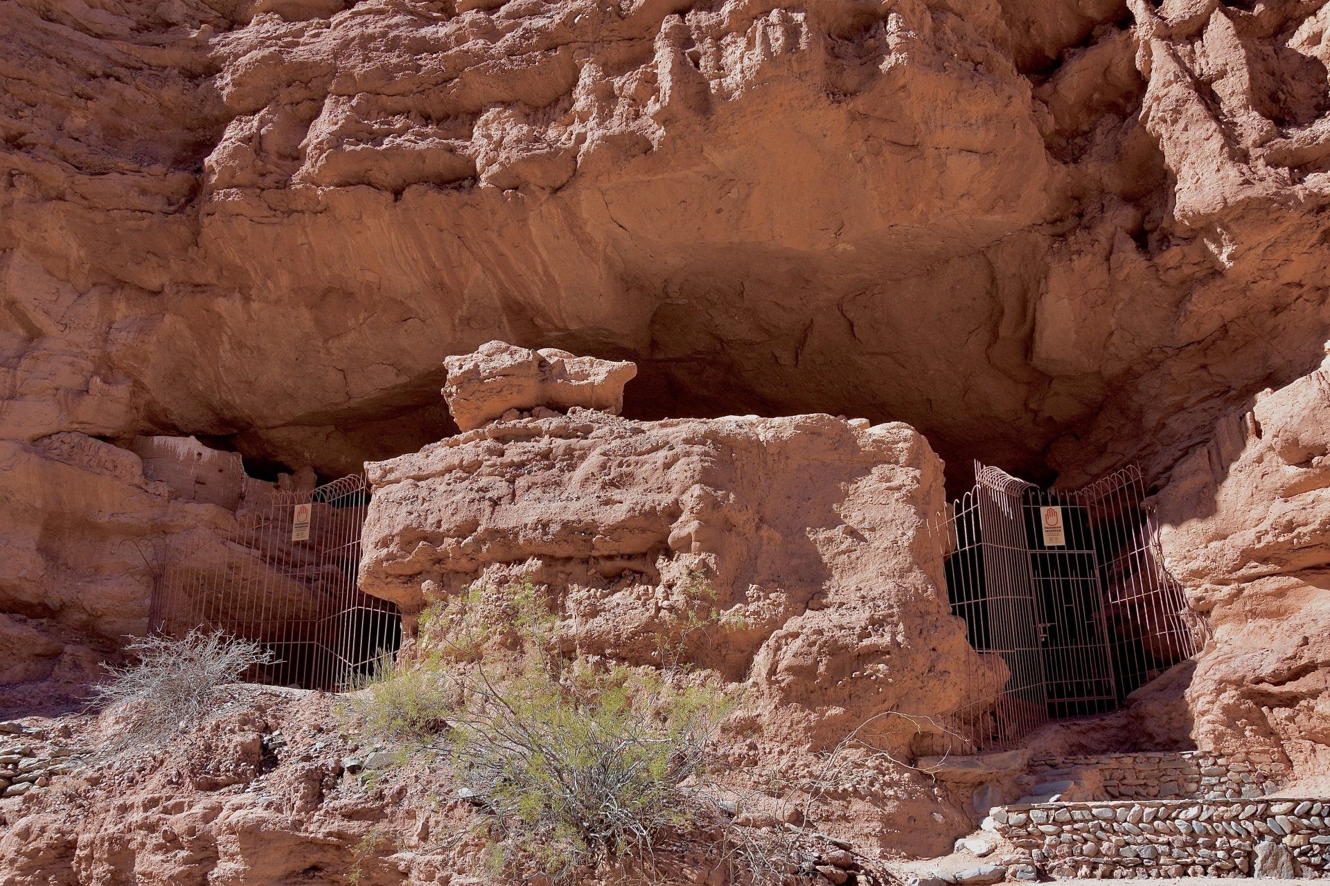 Wir haben den Ort La Poma noch nicht passiert, da zeigt sich ein weiteres Mal, welches Glück ich mit meinem Guide habe. Er biegt in eine Piste ein, die einer kurzen, sandigen Fahrspur inmitten links und rechts thronender roter Felsen folgt. Unser Ziel heißt Graneros de la Poma. Ich behaupte, dass ich mich seit vielen Jahren sehr intensiv mit Argentinien auseinandergesetzt, sehr viel bereits im Land gesehen, mich dort einigermaßen auskenne und mich überdies auch wieder recht gut vorbereitet habe, dennoch ist dies wieder so ein Ort, von dem ich zuvor noch nie etwas gehört, geschweige denn in irgendeinem Reiseführer darüber gelesen habe.