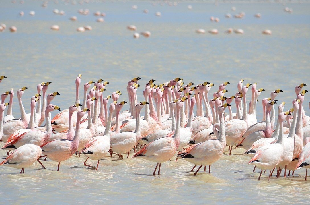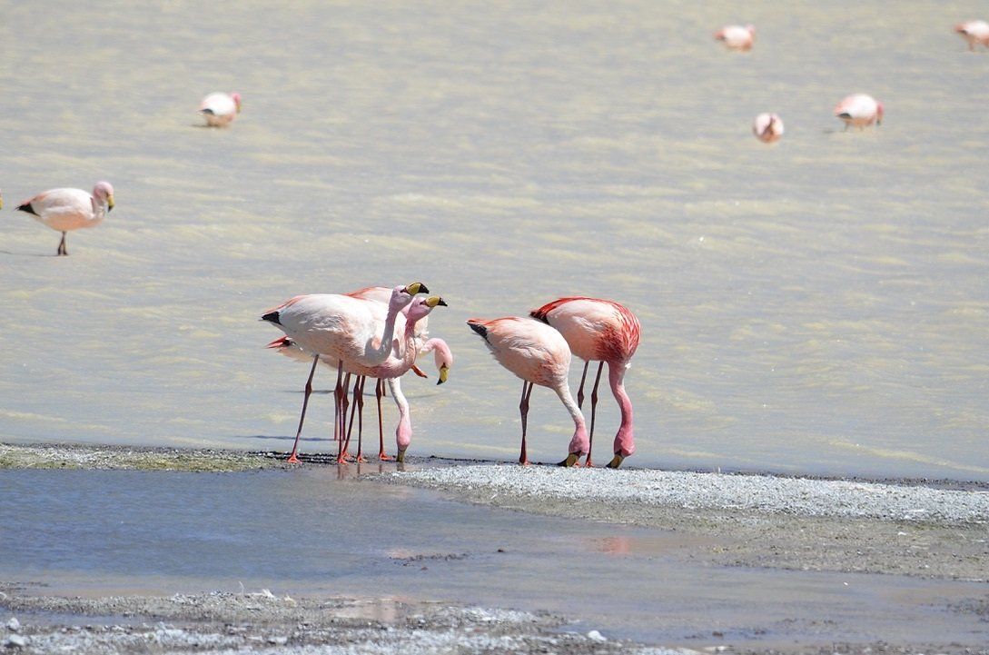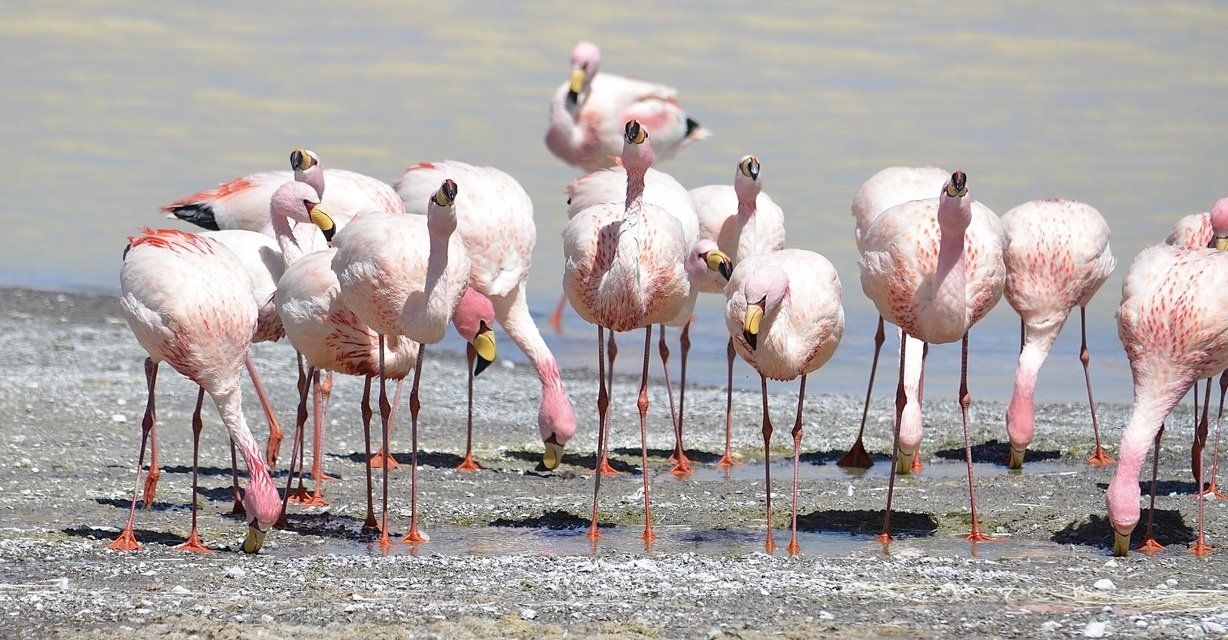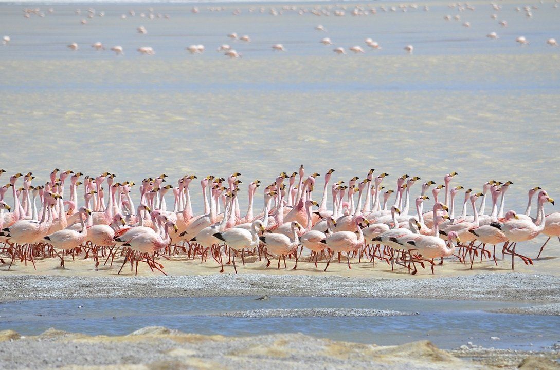 In der Laguna Grande tummeln sich unzählige James Flamingos. Im Winter friert alles zu, aber sobald der Frühling erwacht, finden sich die rosa-weiß gefiederten Vögelchen ein. Die Lagune auf 4.150 Metern Höhe ist eine ihrer größten Sammelpunkte in den Anden. Zeitweise beherbergt die Lagune sogar 25 % der gesamten Population des James Flamingos. Ich habe bereits einige Lagunen in den Anden besucht und immer wieder Flamingos gesehen, aber noch nie in dieser Anzahl, und ich bin mir zudem nicht sicher, ob ich zuvor schon einmal James Flamingos gesehen habe.