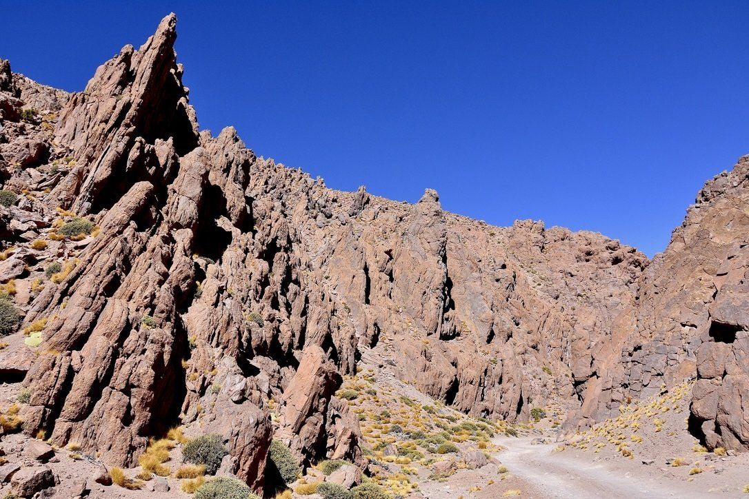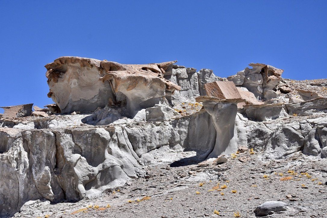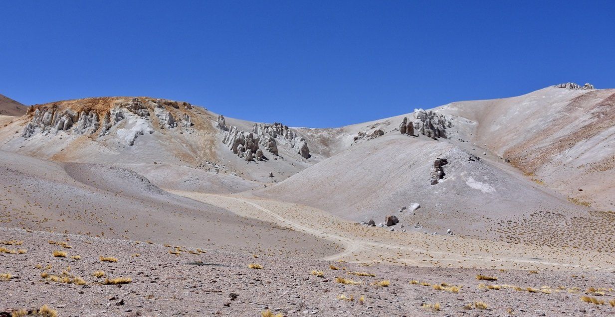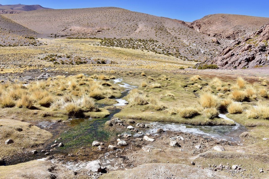 Zu meiner Überraschung gibt es hier sogar ein kleines Areal mit Fumarolen, nichts Spektakuläres, wenn man bereits andere ähnliche Gebiete oder Geysire gesehen hat, aber auf alle Fälle lohnenswert für einen kurzen Stopp, wenn man ohnehin gerade in dieser Gegend unterwegs ist. Mein Guide wartet wieder im Auto, während ich einige Fotos von den Fumarolen mache. Hier begegne ich wieder den Männern vom Membrita Canyon. In fließendem Englisch fragt mich einer der Männer tatsächlich, ob ich für ein Naturmagazin oder eine Universität arbeite. Ich bin völlig erstaunt, als er mich dies fragt und wundere mich, wie er darauf kommt. Möglicherweise, so meine Annahme, weil es eher ungewöhnlich ist, ausländische Touristen hier anzutreffen und dann noch eine allein reisende Frau mit Guide. Nein, ist meine Antwort, ich bin nur eine Touristin, die bereits schon einige Male in Argentinien war und immer wieder gerne durch dieses schöne Land reist. Jetzt ist es an ihm, völlig erstaunt zu sein. Im Nachhinein frage ich mich, was er wohl dachte, als ich ihm meine Antwort mit unterschiedlich weißen, dafür aber mit obendrein hellweiß gesprenkelten Zähnen entgegnet habe. Zumindest hat er sich nichts anmerken lassen. Wir unterhalten uns kurz, er erzählt mir, dass er Argentinier sei, aber in Europa lebt und arbeitet. Das war eine sehr nette Begegnung und auch die einzige, seitdem wir das Asphaltband hinter uns gelassen haben.