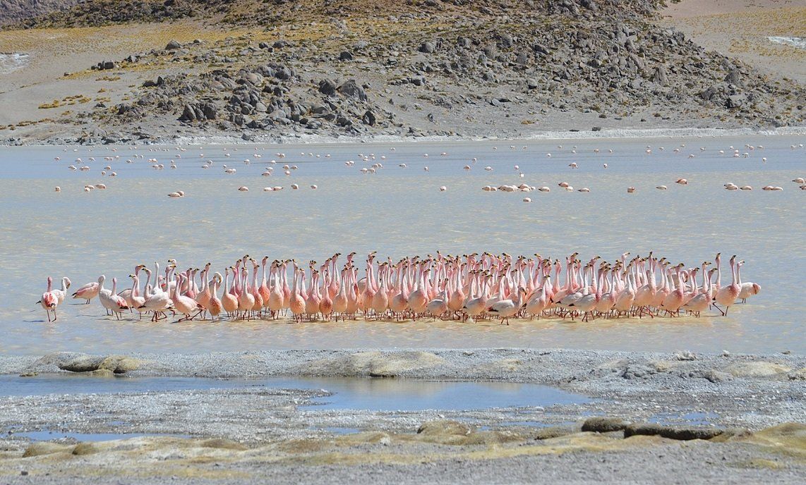 Gerade, als wir die Lagune verlassen wollen, sammelt sich eine größere Gruppe und vollzieht einen Tanz, wie ich in bisher nur aus dem Fernsehen kannte. Die Gruppe stolziert gemeinsam nach rechts, dreht sich dann geschlossen um und stolziert nach links, um anschließend das gleiche Ritual ein weiteres Mal zu vollziehen. Dieses Schauspiel wiederholt sich mehrmals. Es ist einfach nur faszinierend und ich kann es mit eigenen Augen sehen. Ich bin nicht in Afrika, ich bin in der Puna und dennoch bin ich im Safari-Himmel, jetzt und hier.