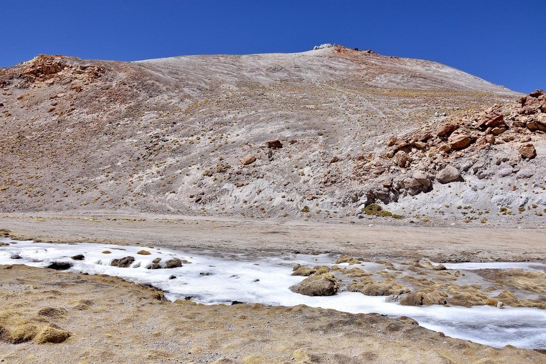 Die Piste, die nun folgt, hat den Namen nur zeitweise verdient, denn des Öfteren ist sie nicht existent. Nach meiner Einschätzung ist dies der bisher anspruchsvollste Streckenabschnitt, den wir auf meiner Tour durch die Puna fahren. Dafür ist die Landschaft um mich herum einmal mehr atemberaubend, sogar Büßerschneeformationen in Bonsaigröße finden sich zu meiner Freude am Wegesrand. Wie kalt es hier werden kann, zeigt sich auch am Eis auf den Bachläufen.