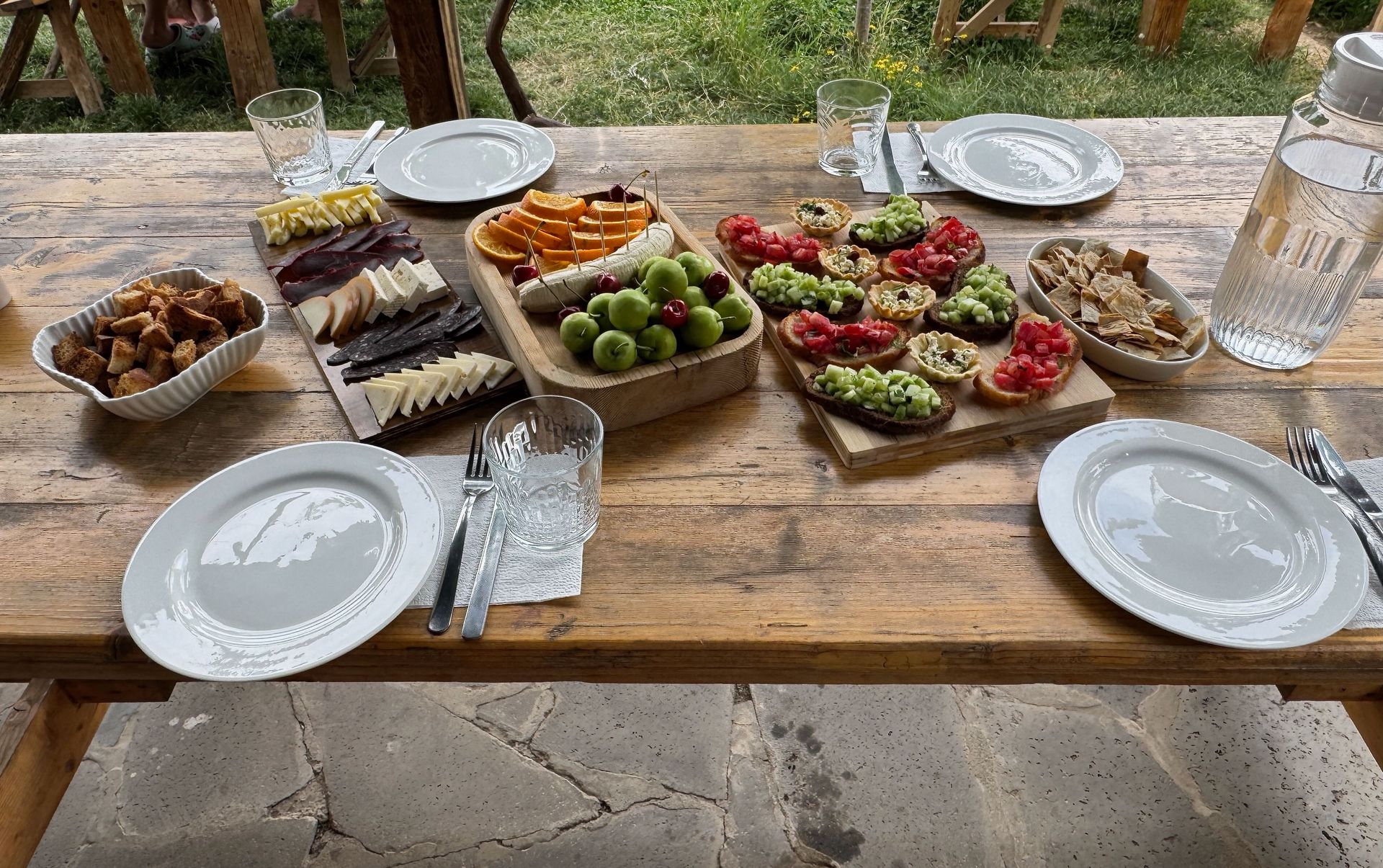 Zum späteren Mittagessen fahren wir zum familiengeführten Weingut One Bridge. Hier gibt es ein Restaurant. Wir sitzen draußen und können es einmal mehr kaum fassen, was so alles auf den Tisch kommt. Das Essen wird begleitet von einer weiteren Weinverkostung, vier Weinen und einem Grappa. Dabei ist mir schon nach Trinity etwas blümerant. Ich koste nur wenig, aber von jedem. Gut, dass es Essen gibt. Unser Guide und unser Fahrer sitzen mit uns am Tisch. Beide sind super sympathisch - mein Mann wird später sagen, unser Guide war mit der/die beste, den/die wir jemals hatten.