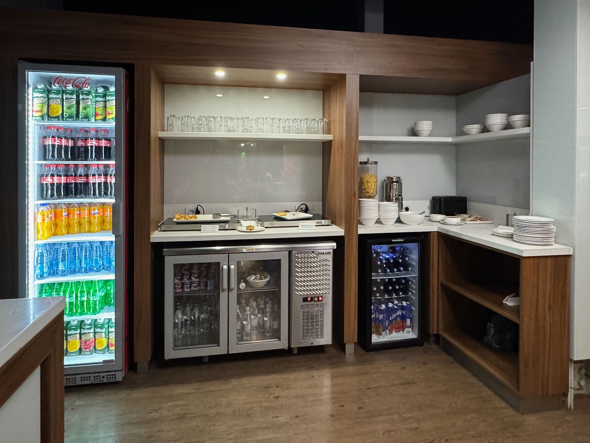 In der übersichtlichen Lounge warten wir auf unseren Flug nach Hause.
