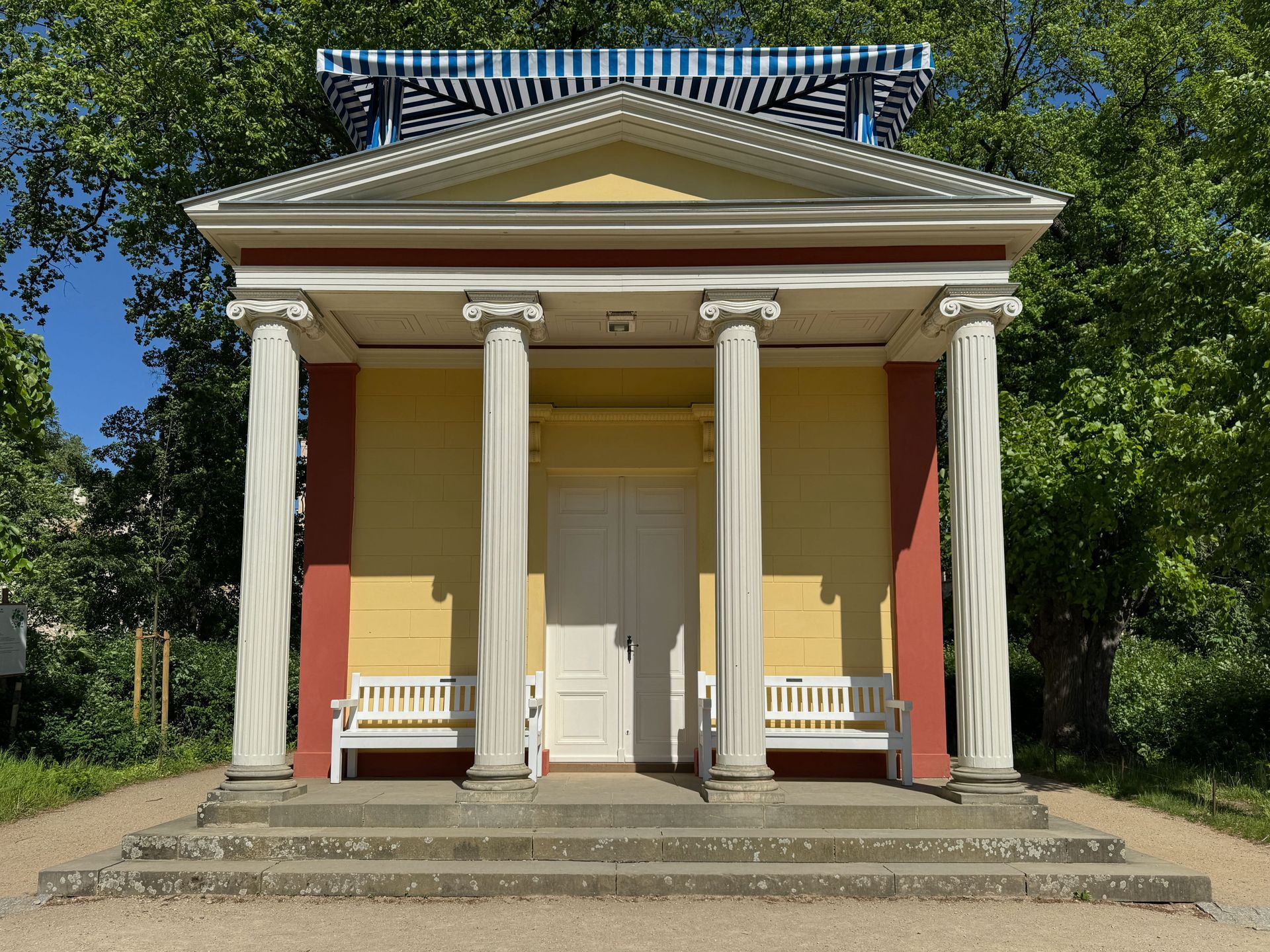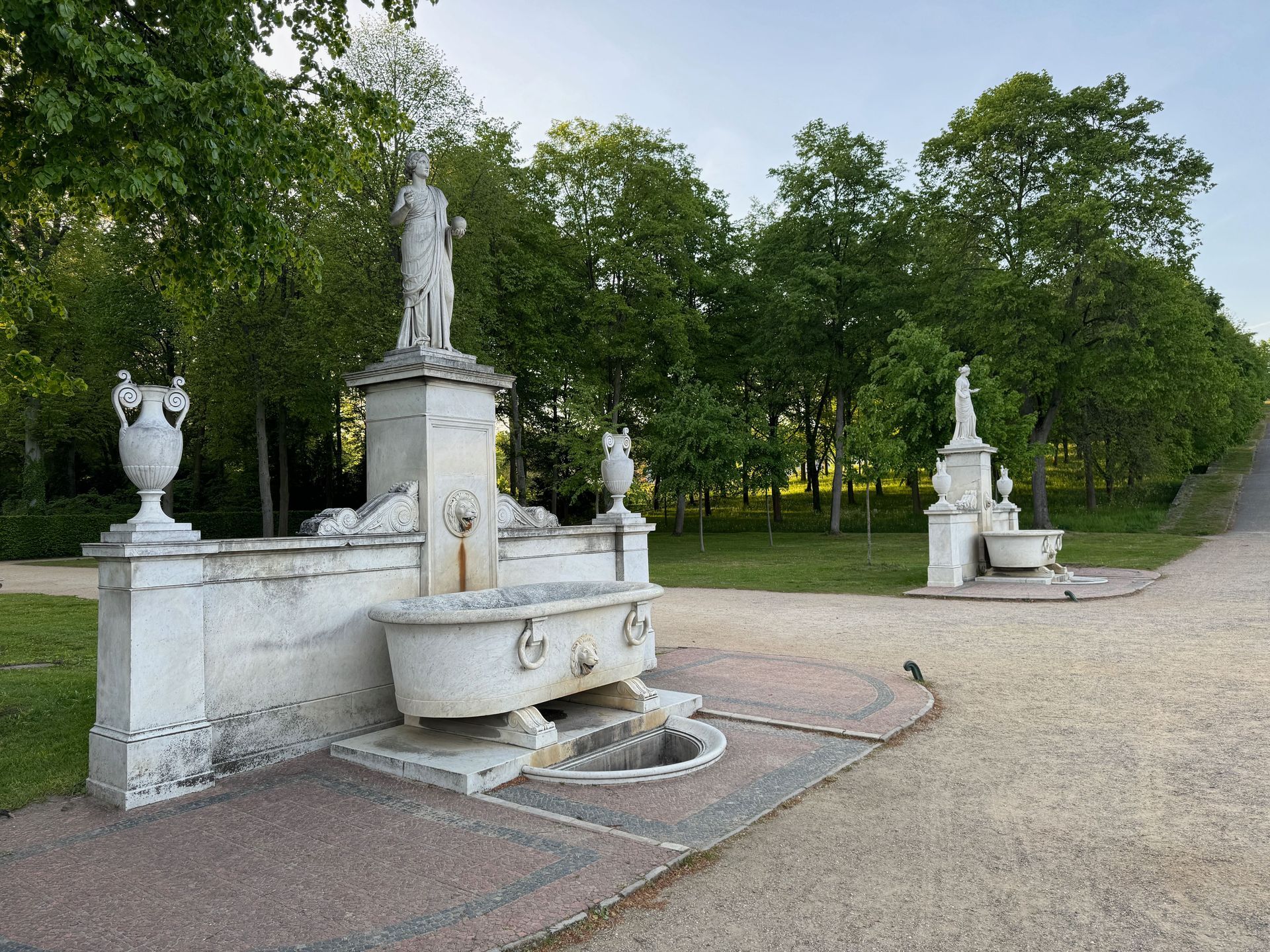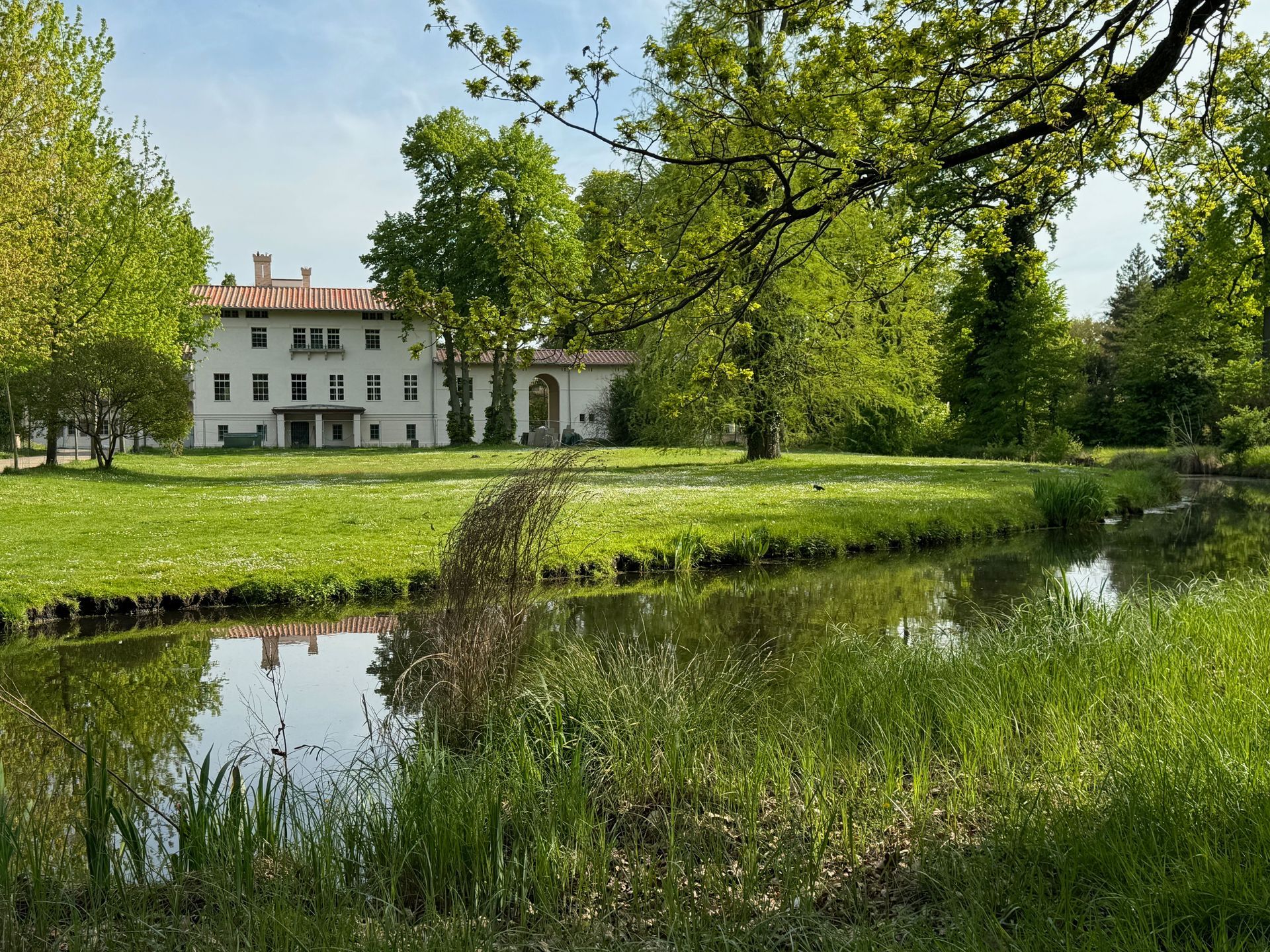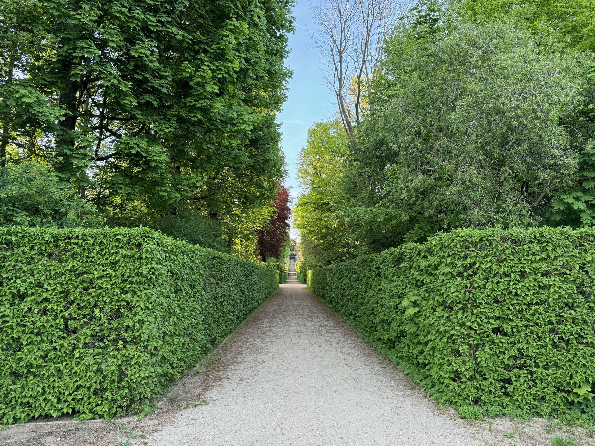 Unser Weg führt uns anschließend an der Mühle vorbei zum Orangerieschloss, das derzeit wegen Restaurierungsarbeiten geschlossen ist. Die Dichte an Schlössern und ähnlichen Bauten in diesem Park beeindruckt mich sehr.