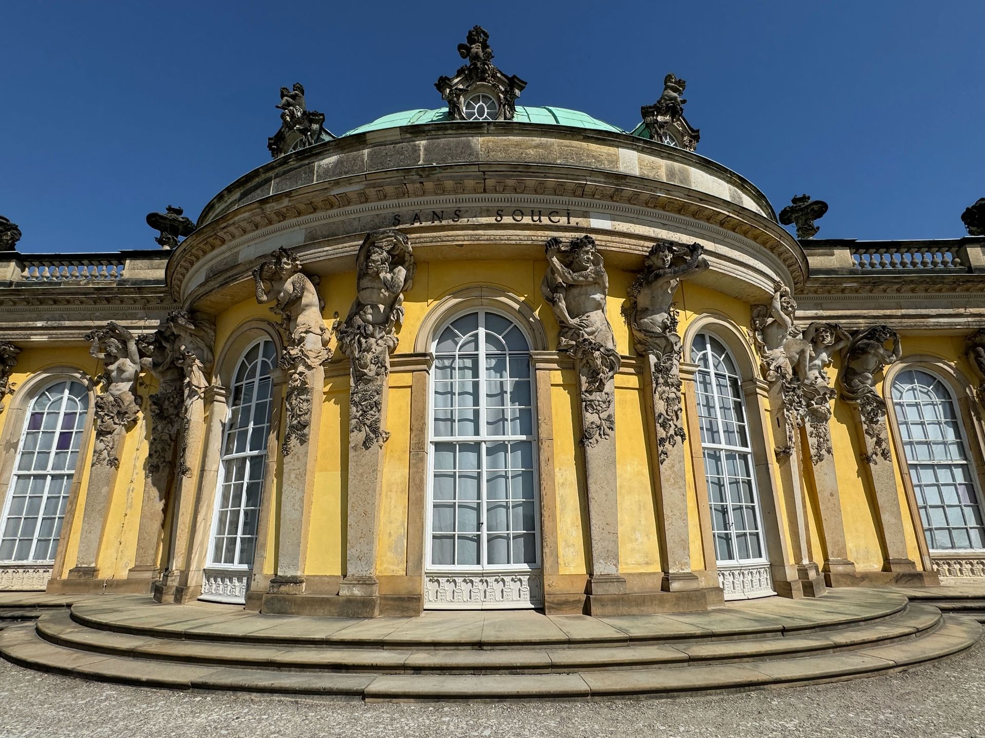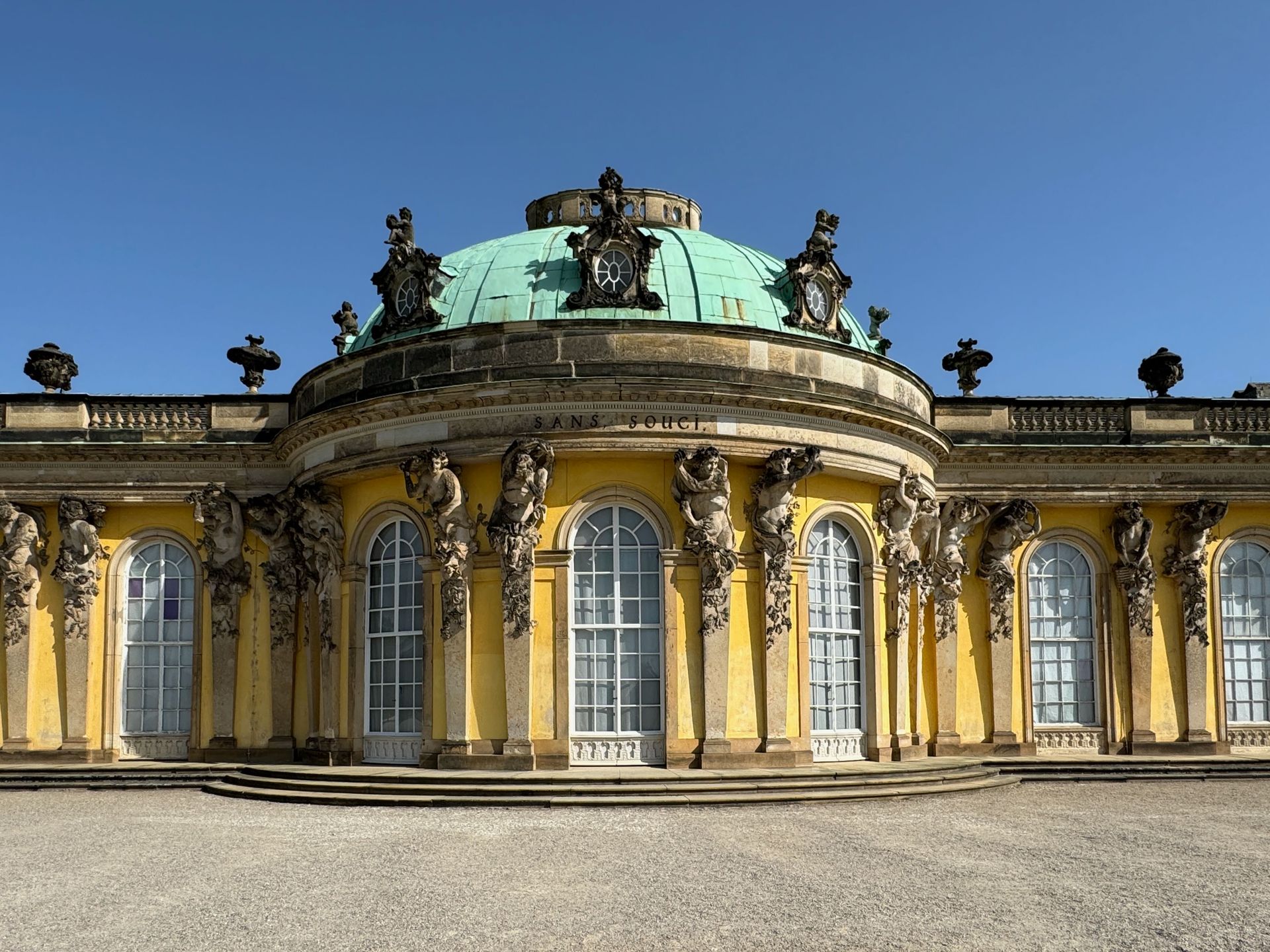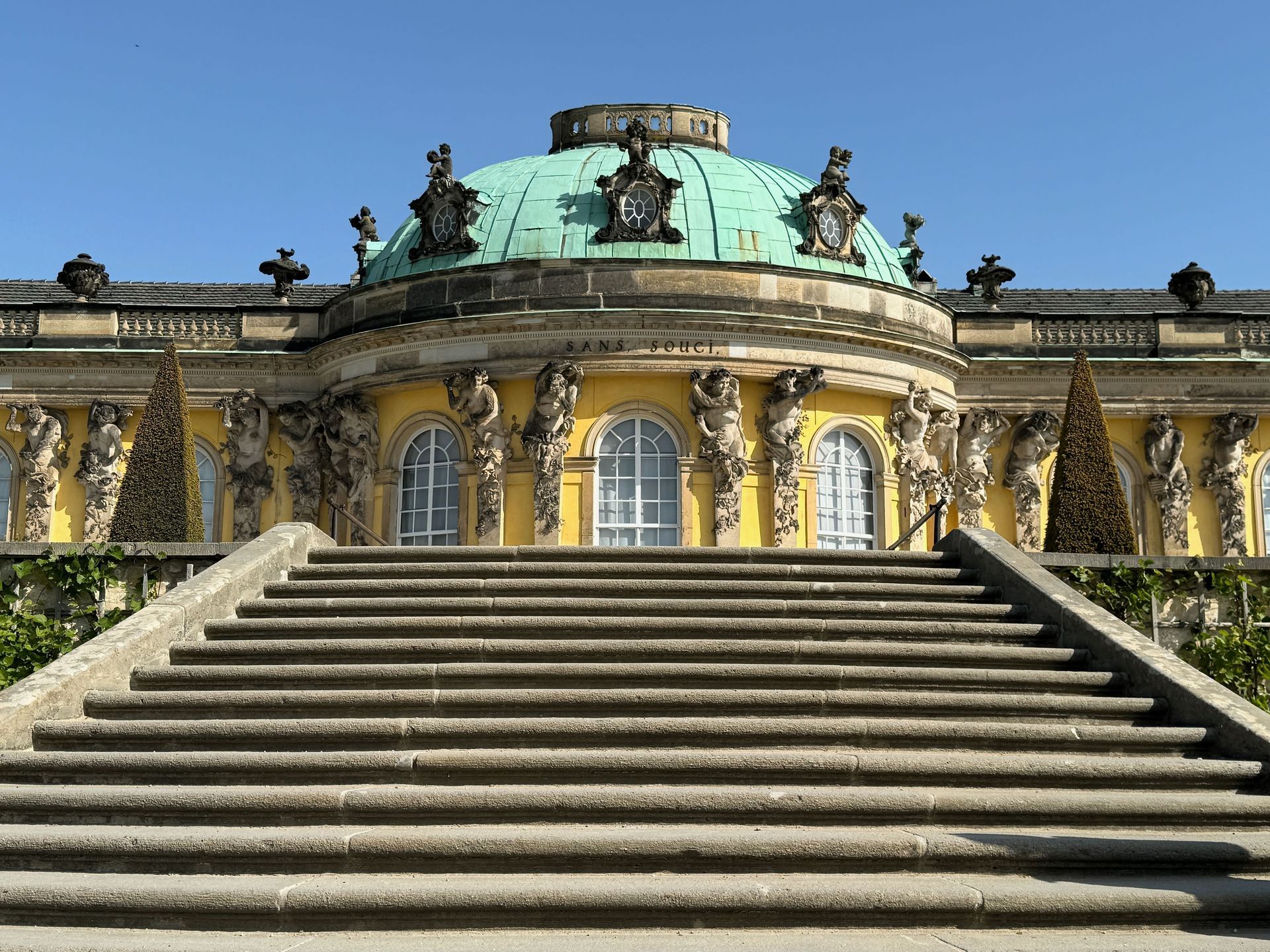 Schloss Sanssouci schauen wir uns lediglich kurz im Vorbeigehen an, da wir für den morgigen Tag Karten für die Schlossbesichtigung haben.