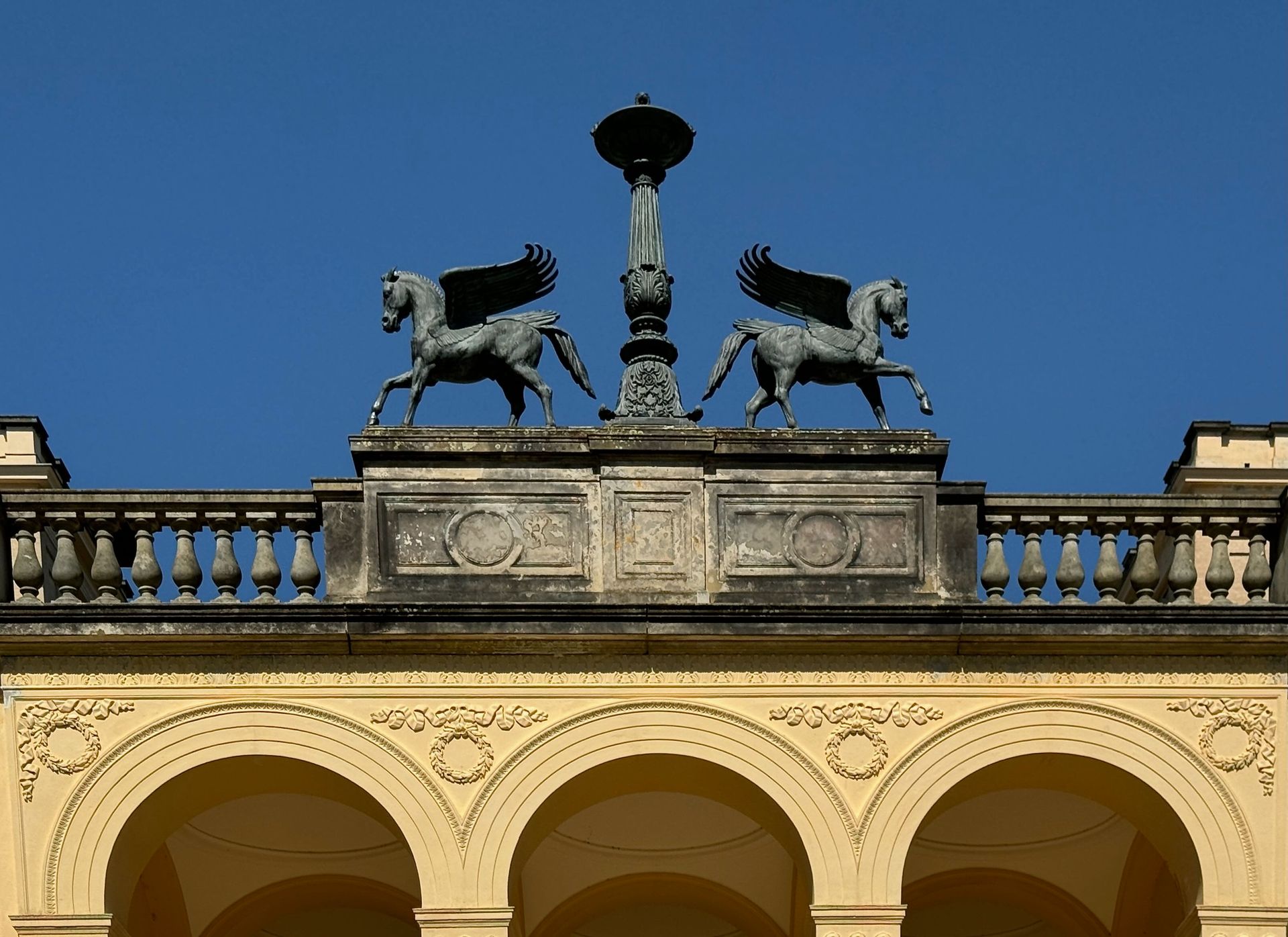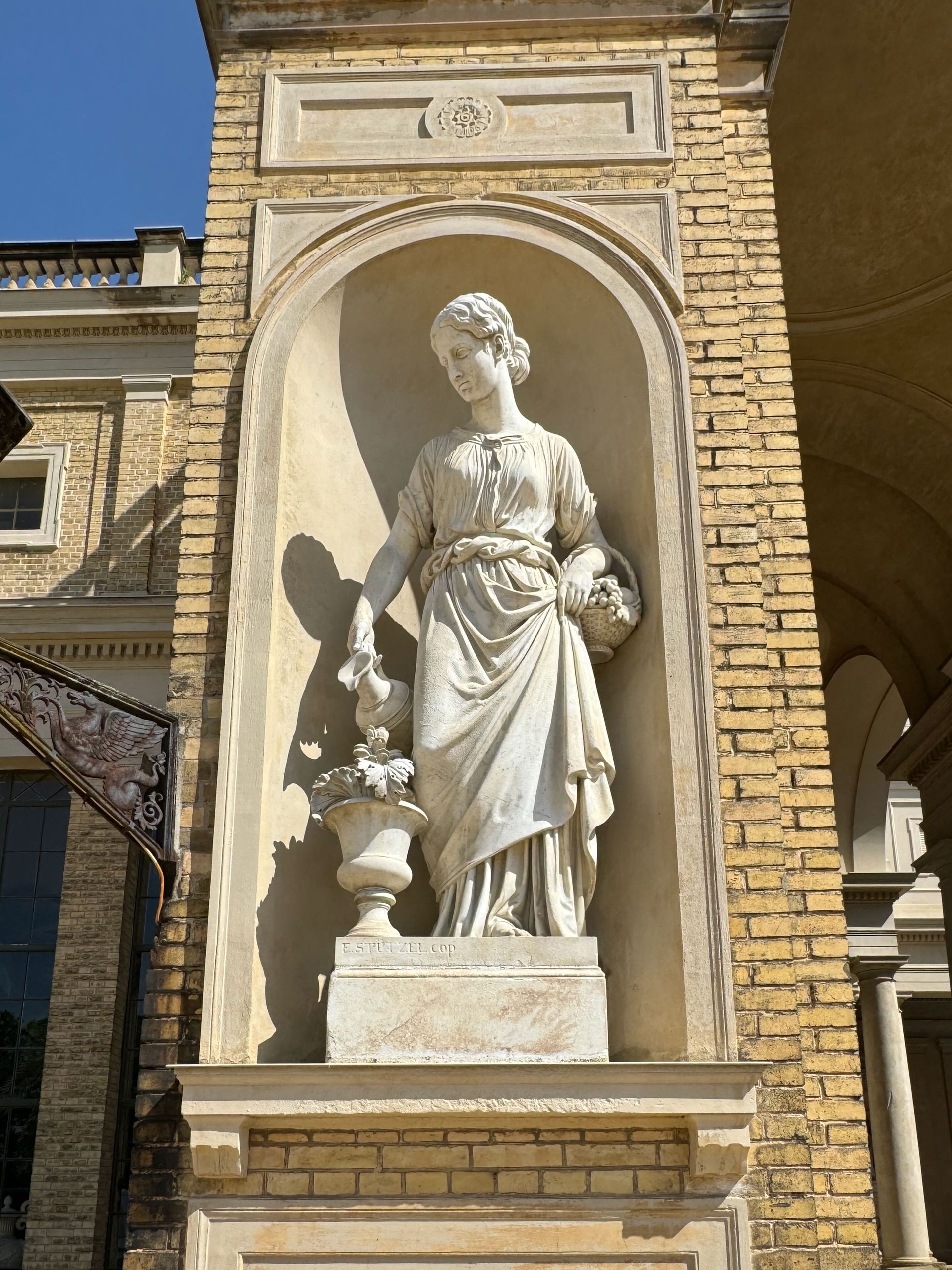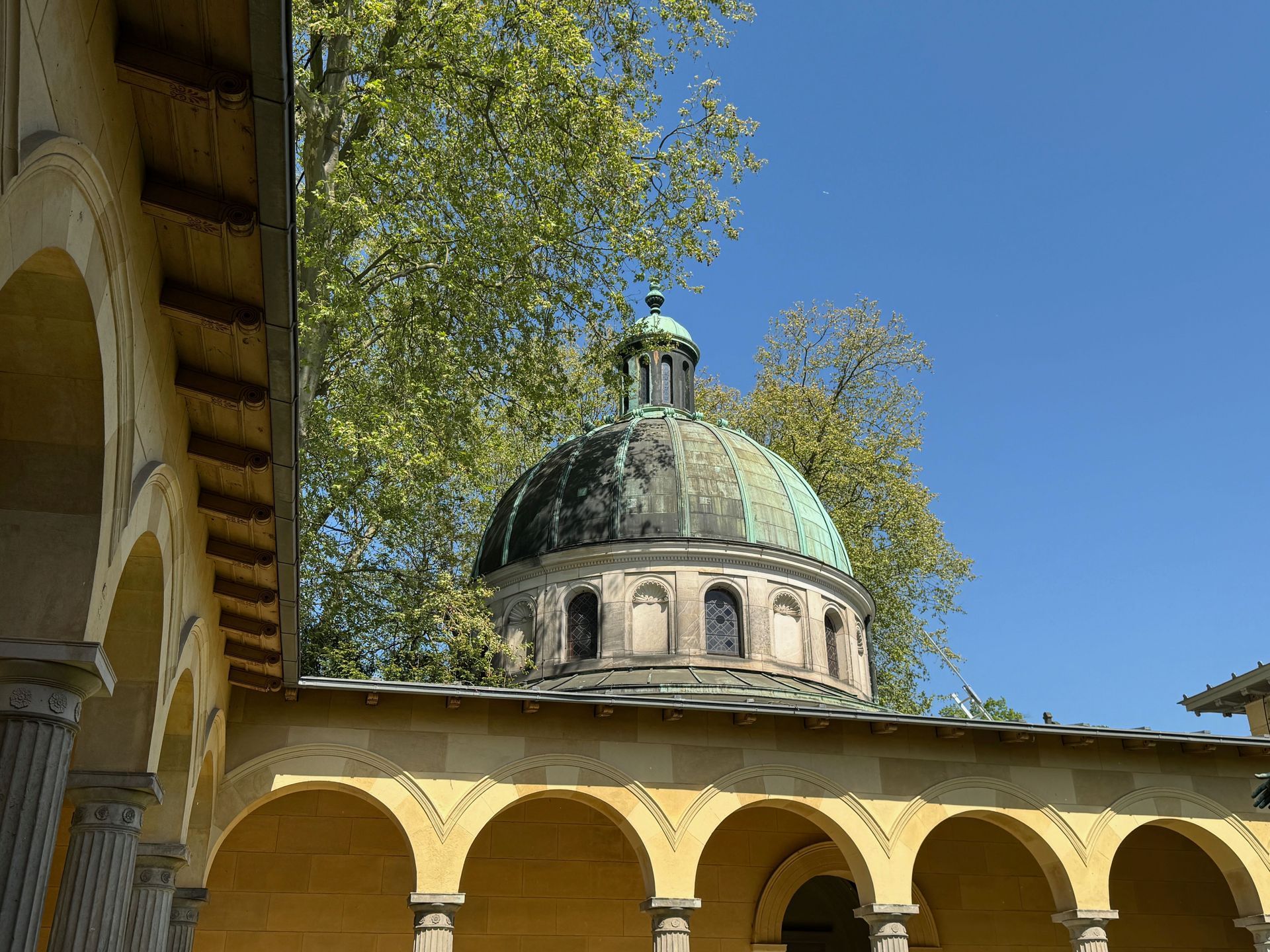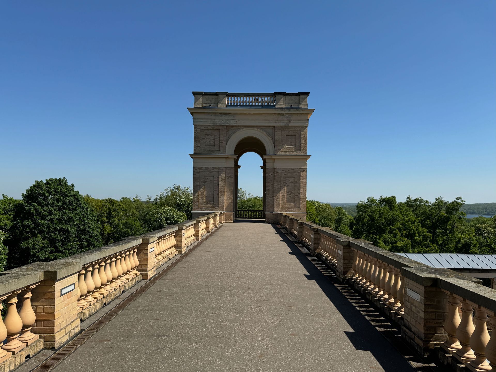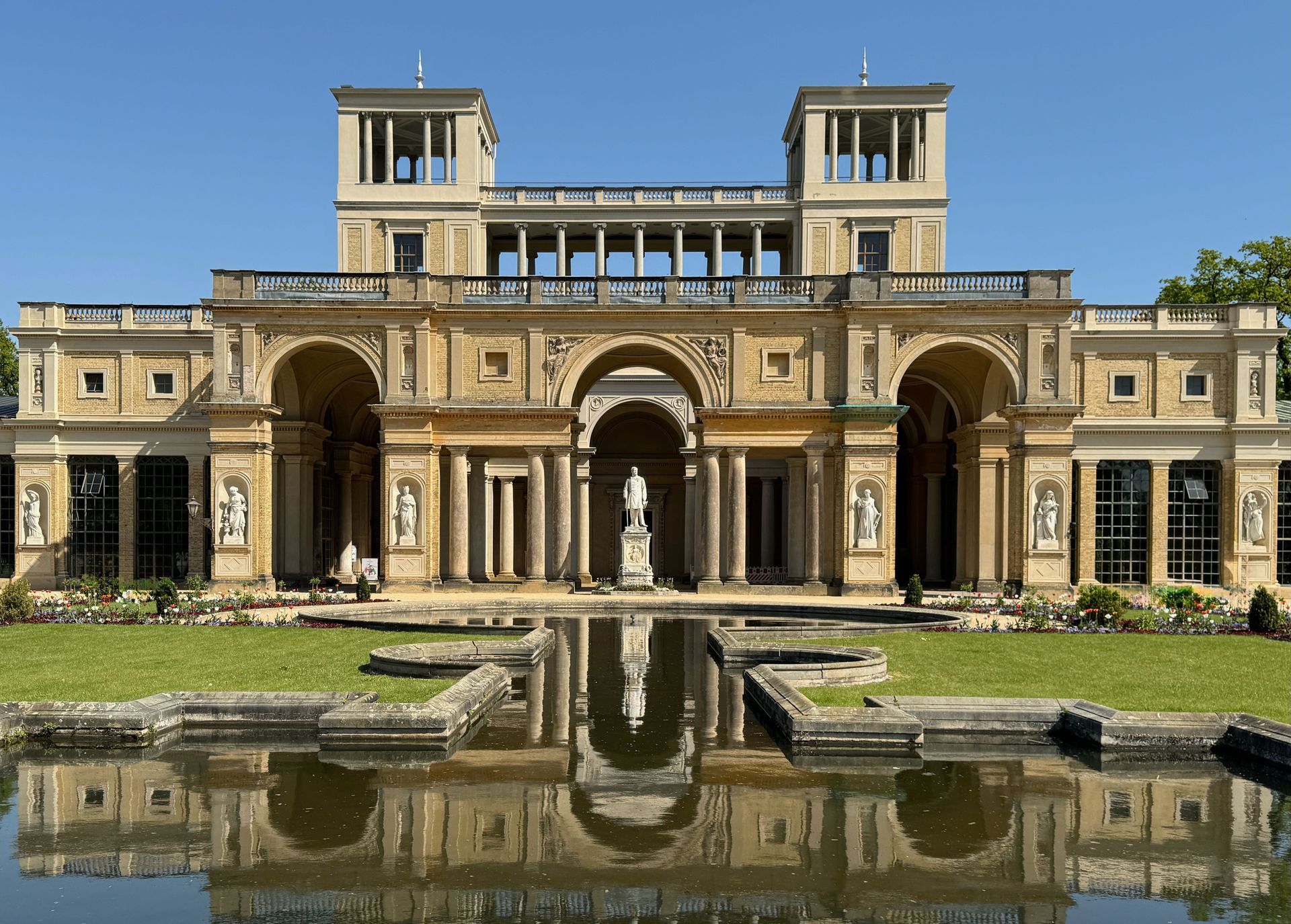 Mit einem Gebäude wie Belvedere auf dem Pfingstberg hatten wir in Deutschland so gar nicht gerechnet, vielleicht mag das naiv klingen, aber so ist es. Wir fühlen uns ein klitzekleinwenig an Andalusien und Italien erinnert bei all den Säulen, Verzierungen und dem Wasserbecken im Innenhof. Von den obersten Plattformen bietet sich ein grandioser Blick über Potsdam und sein Umland mit all dem Grün und seinen vielen Seen.