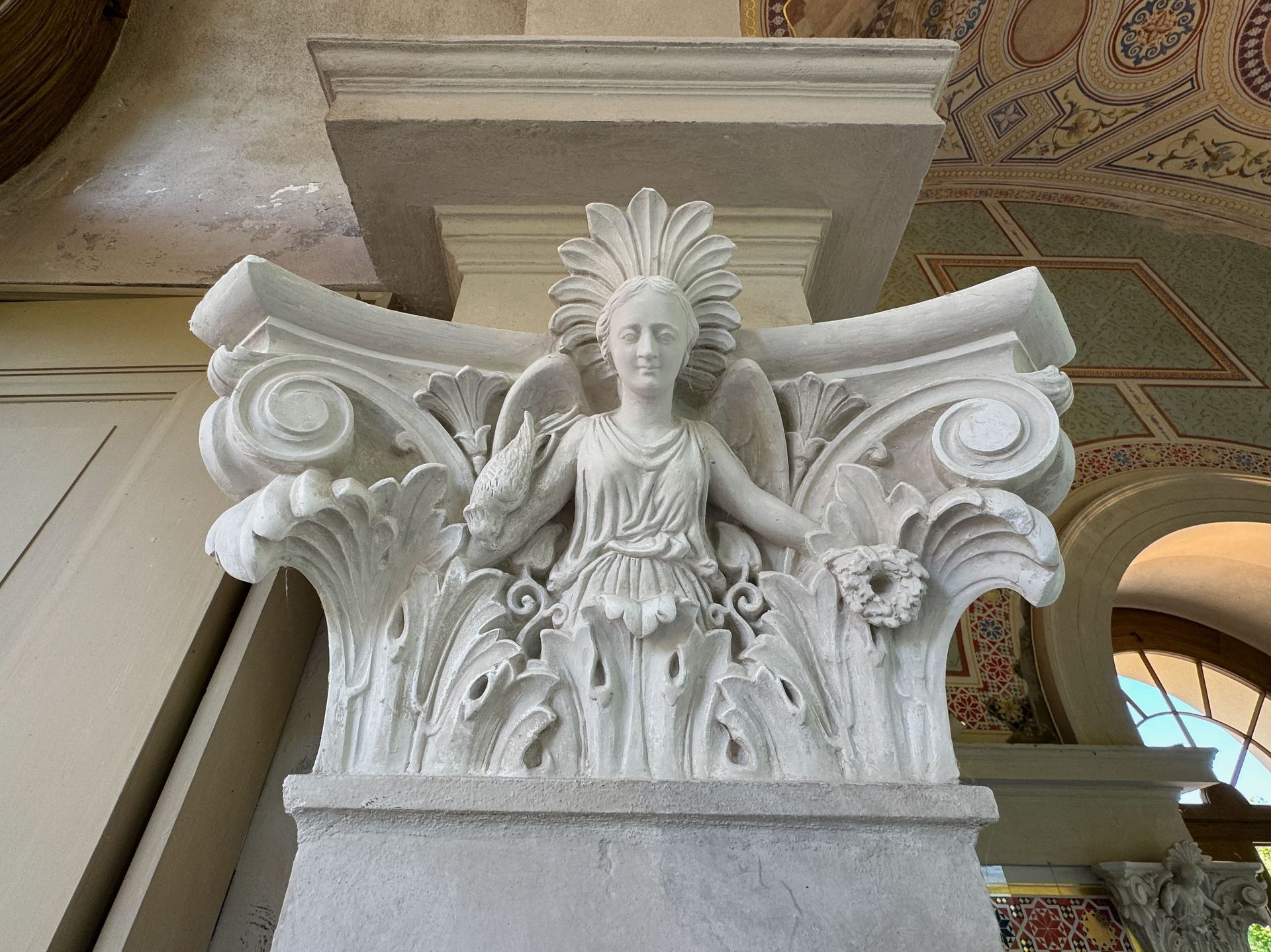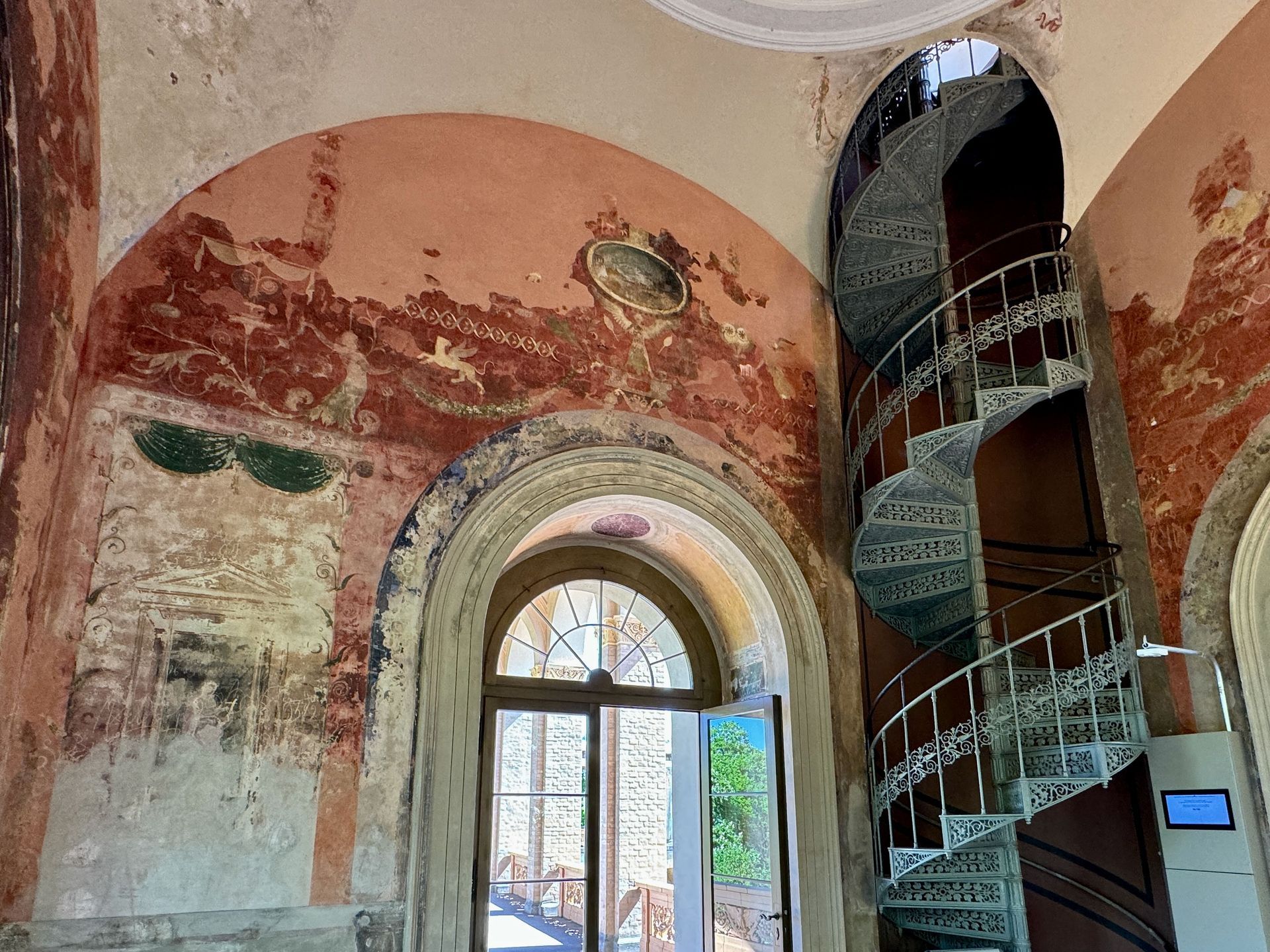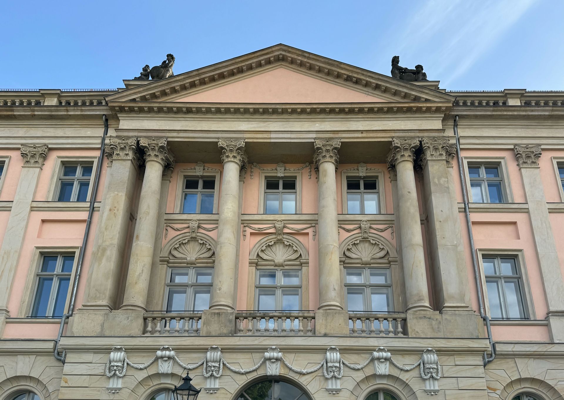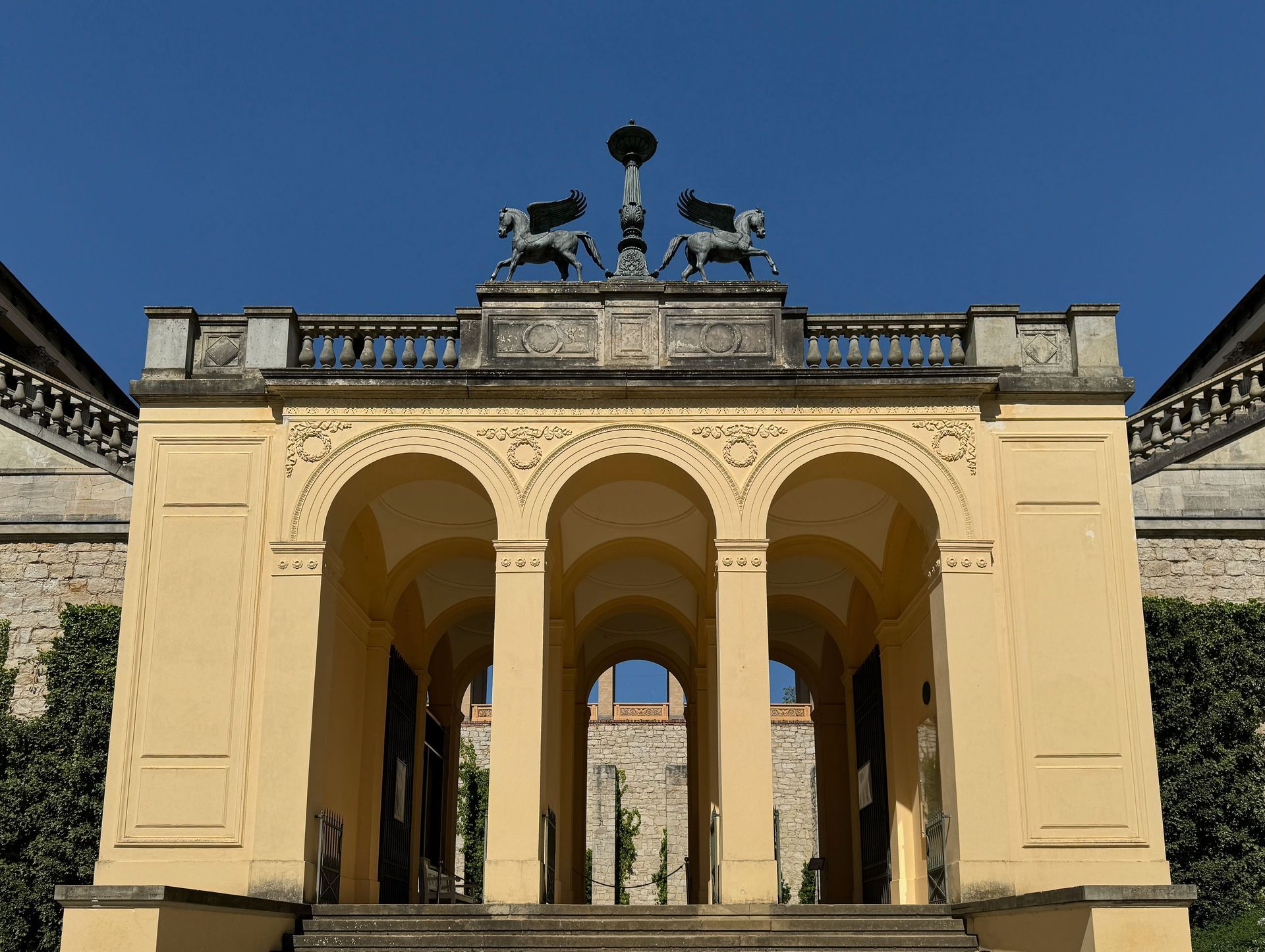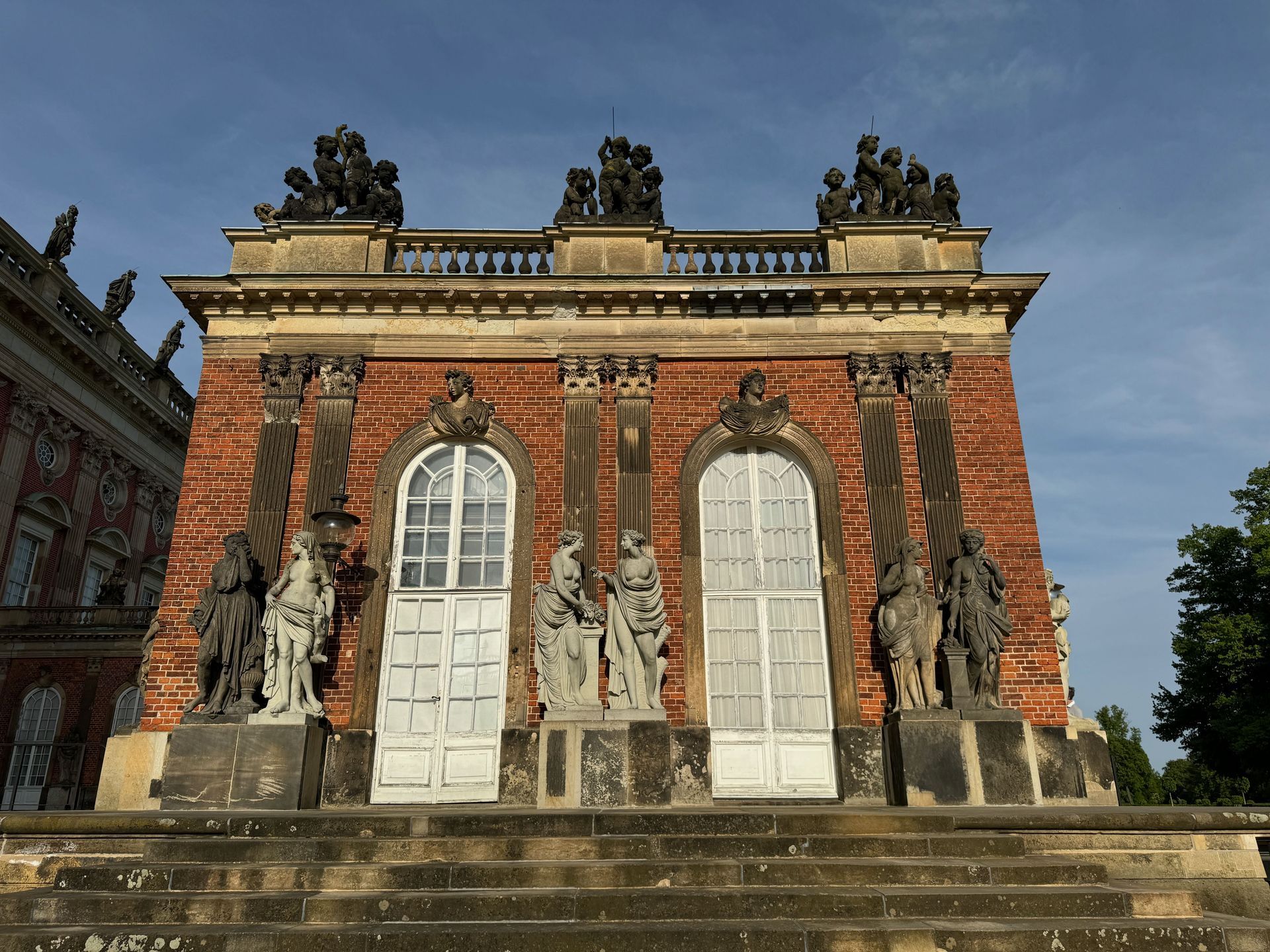 Mit einem Gebäude wie Belvedere auf dem Pfingstberg hatten wir in Deutschland so gar nicht gerechnet, vielleicht mag das naiv klingen, aber so ist es. Wir fühlen uns ein klitzekleinwenig an Andalusien und Italien erinnert bei all den Säulen, Verzierungen und dem Wasserbecken im Innenhof. Von den obersten Plattformen bietet sich ein grandioser Blick über Potsdam und sein Umland mit all dem Grün und seinen vielen Seen.