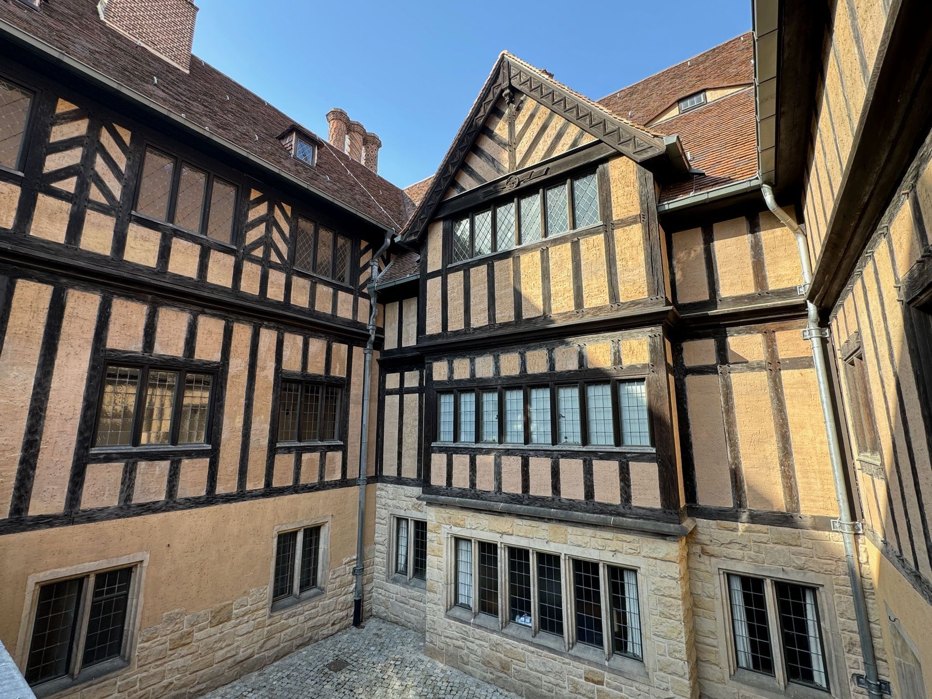 Nachmittags fahren wir mit öffentlichen Verkehrsmitteln zum Schloss Cecilienhof. Der Komplex wurde von den Hohenzollern während des ersten Weltkrieges errichtet.