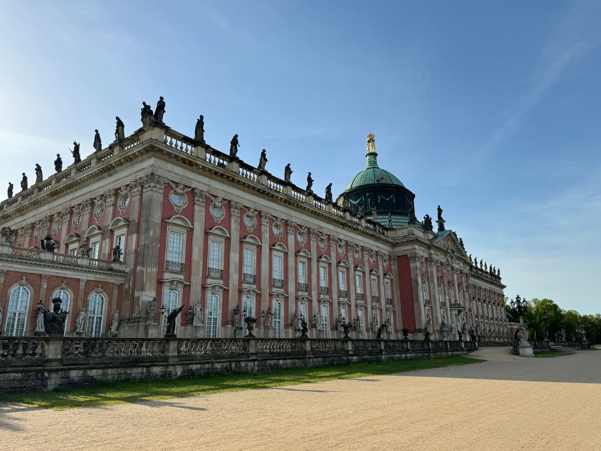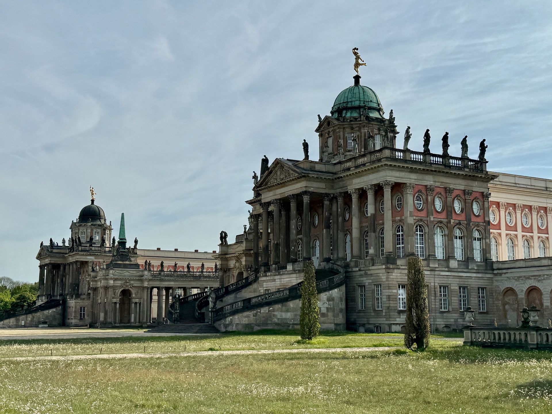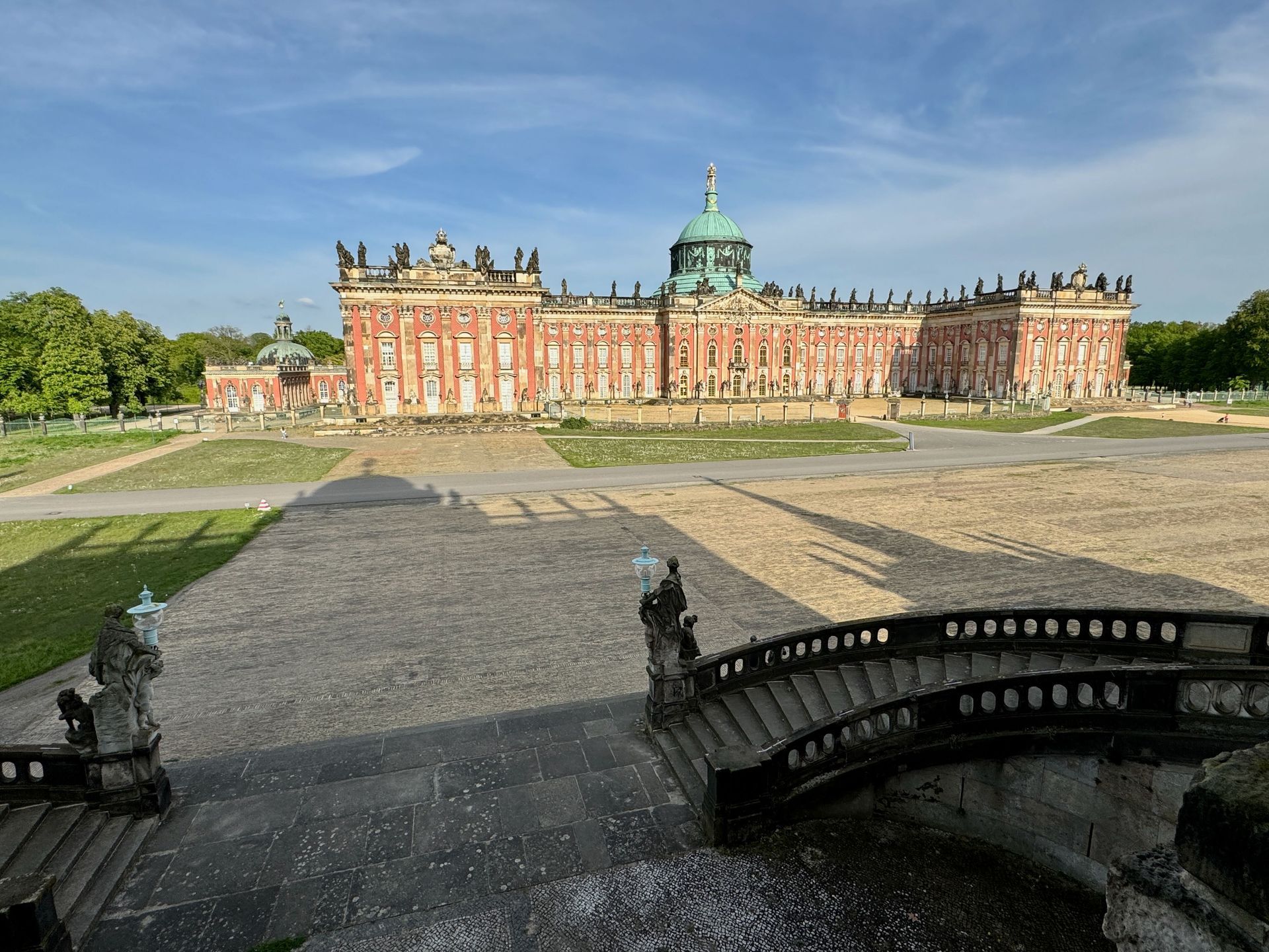 Den Nachmittag verbringen wir in Fritzchens Vorgarten. Der Park Sanssouci ist nicht nur äußerst weitläufig, sondern auch wunderschön. Das Neue Palais ist sehr imposant, aber auch der Rest des Parks ist mit weiteren beeindruckenden Gebäuden durchsetzt. Erbaut wurden die meisten Schmuckstücke von Friedrich dem Großen.