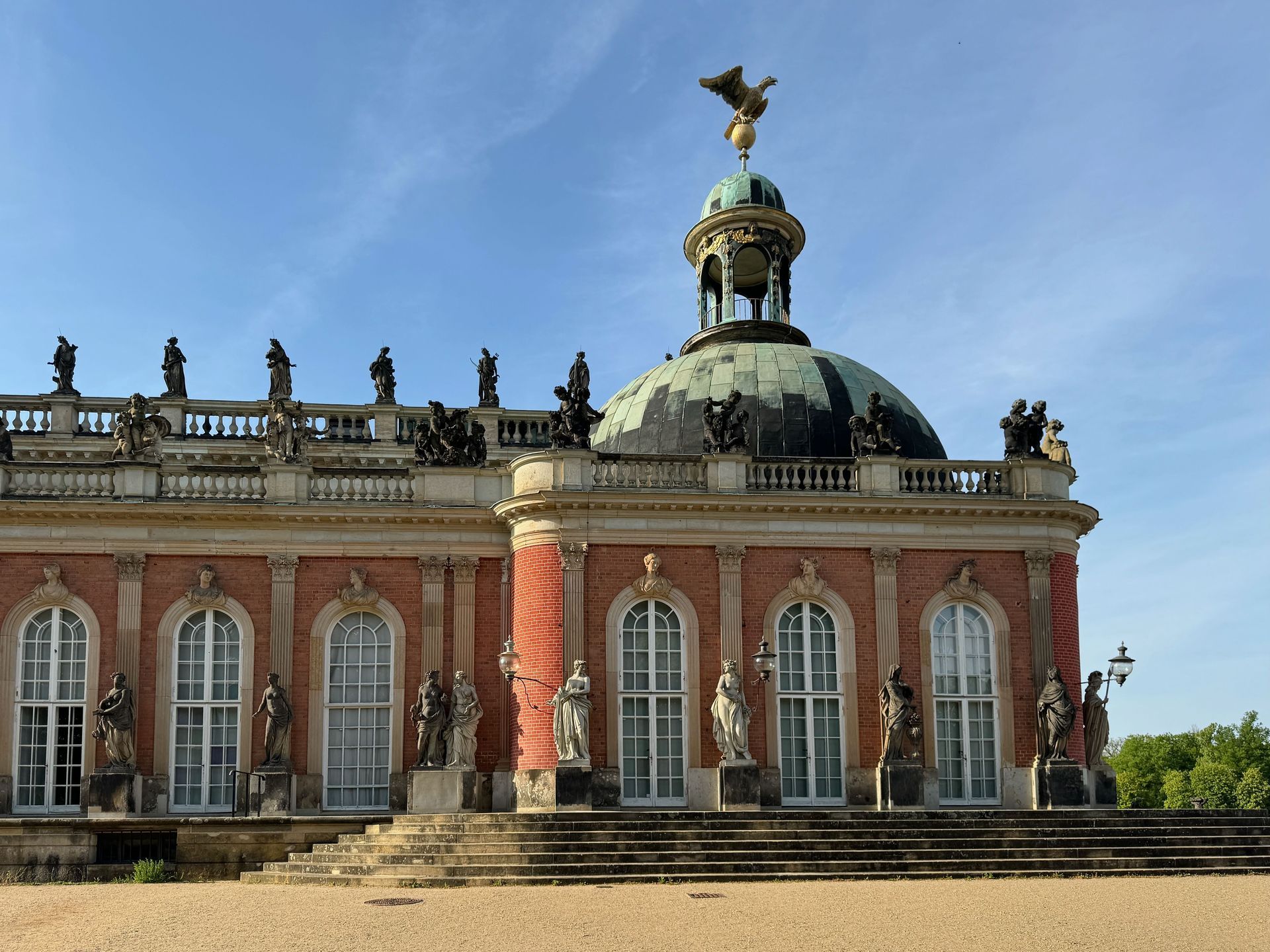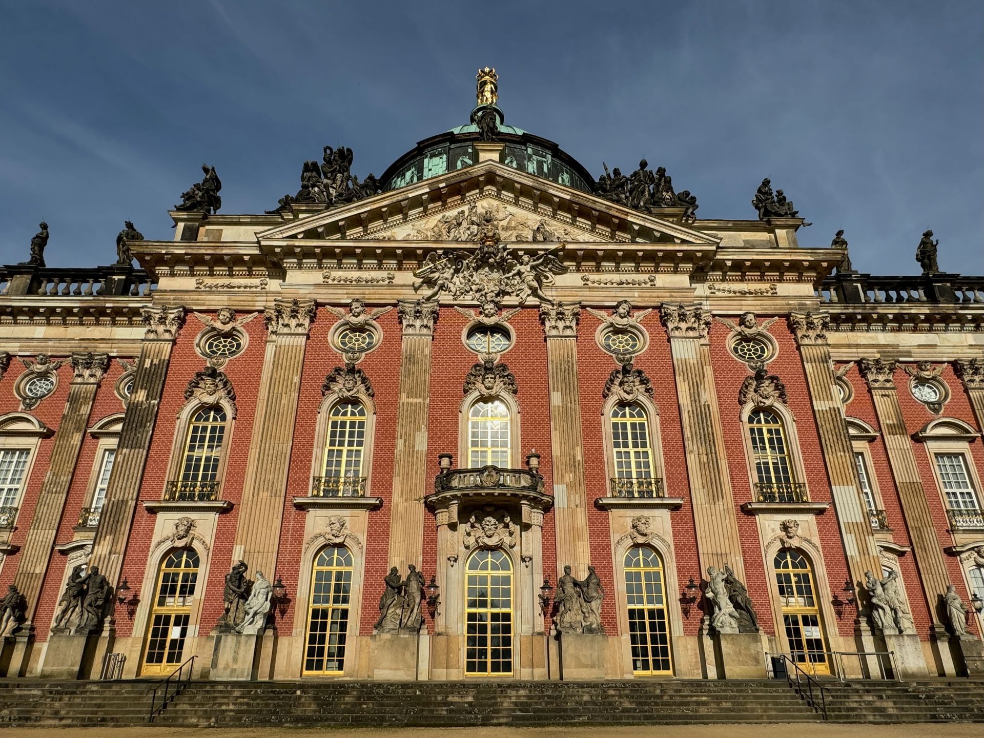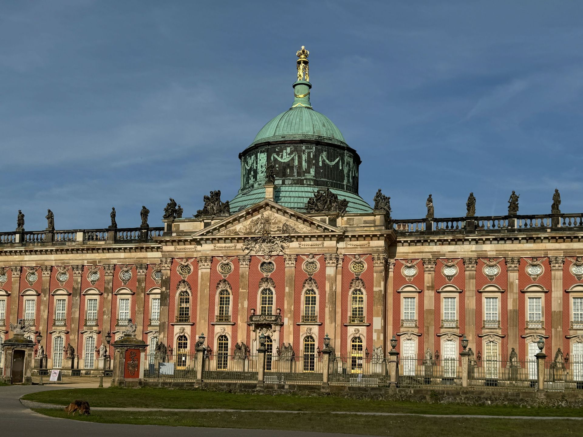 Den Nachmittag verbringen wir in Fritzchens Vorgarten. Der Park Sanssouci ist nicht nur äußerst weitläufig, sondern auch wunderschön. Das Neue Palais ist sehr imposant, aber auch der Rest des Parks ist mit weiteren beeindruckenden Gebäuden durchsetzt. Erbaut wurden die meisten Schmuckstücke von Friedrich dem Großen.