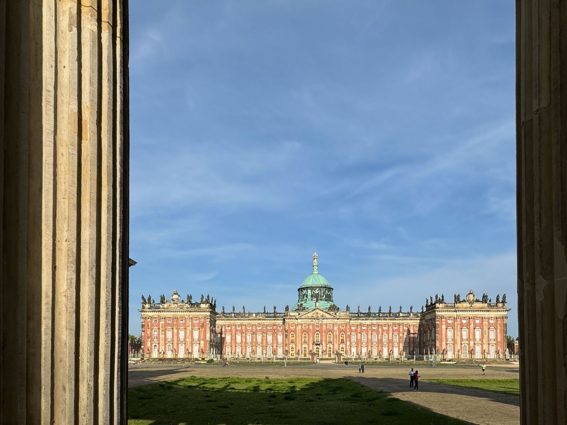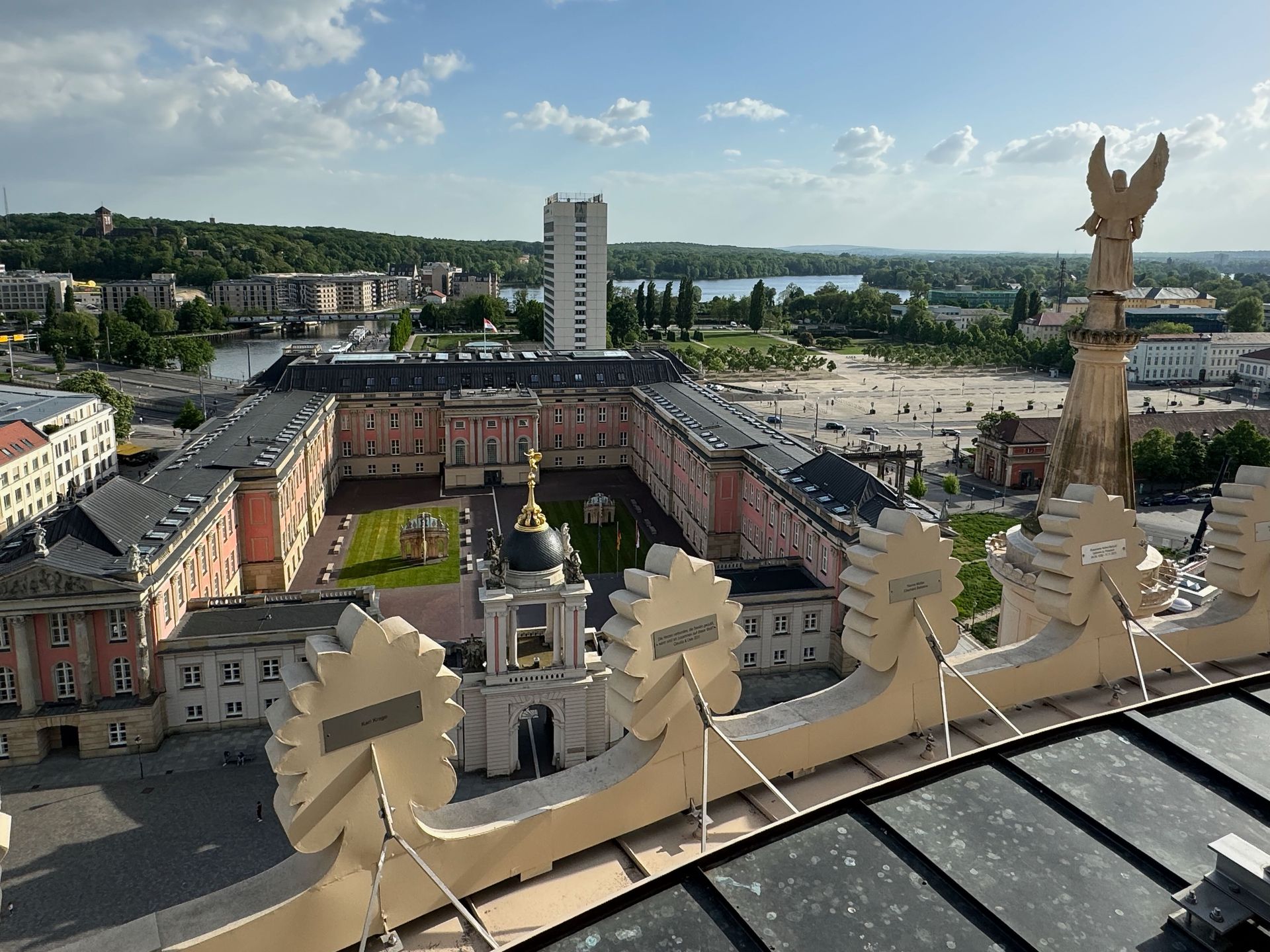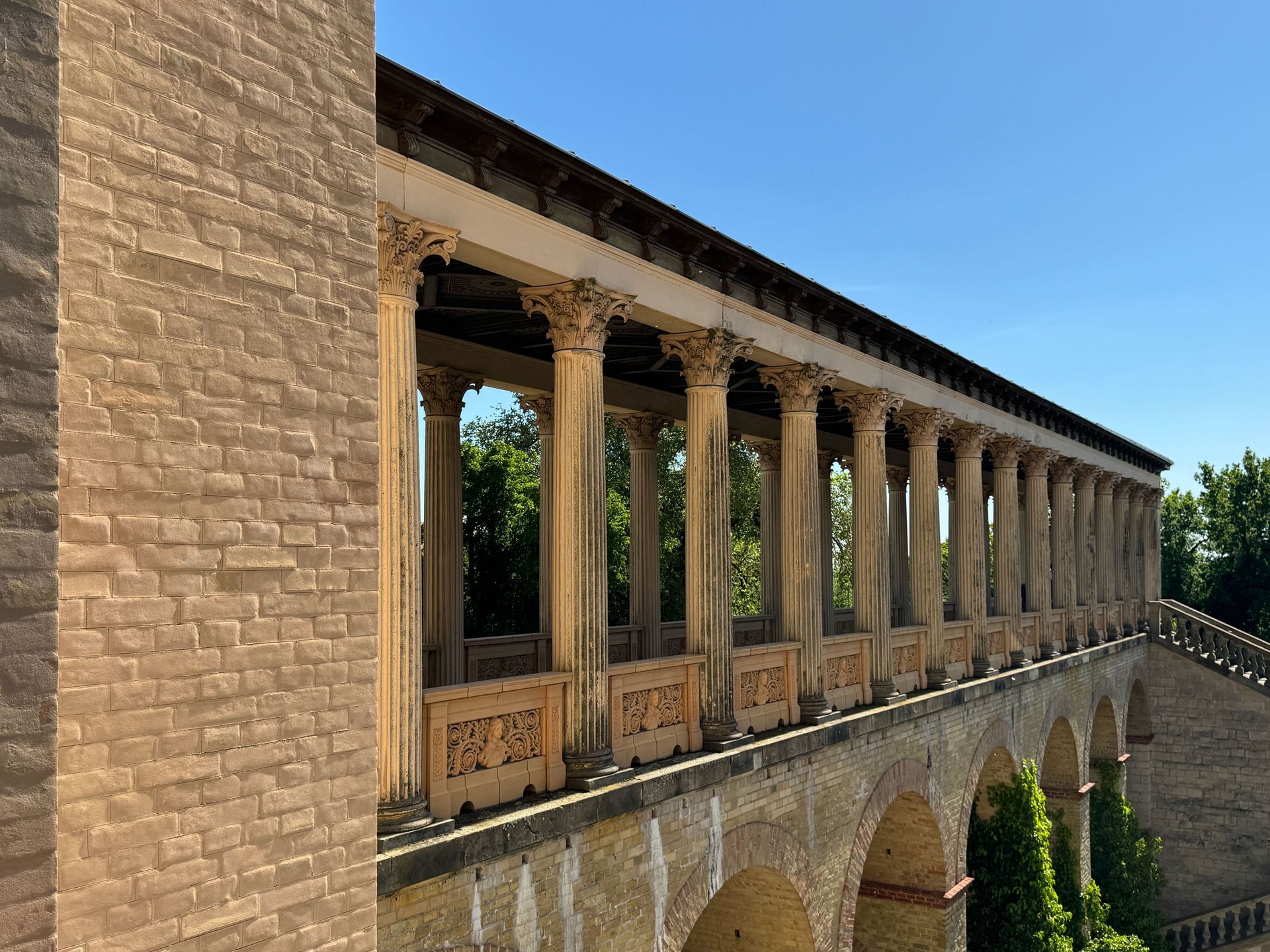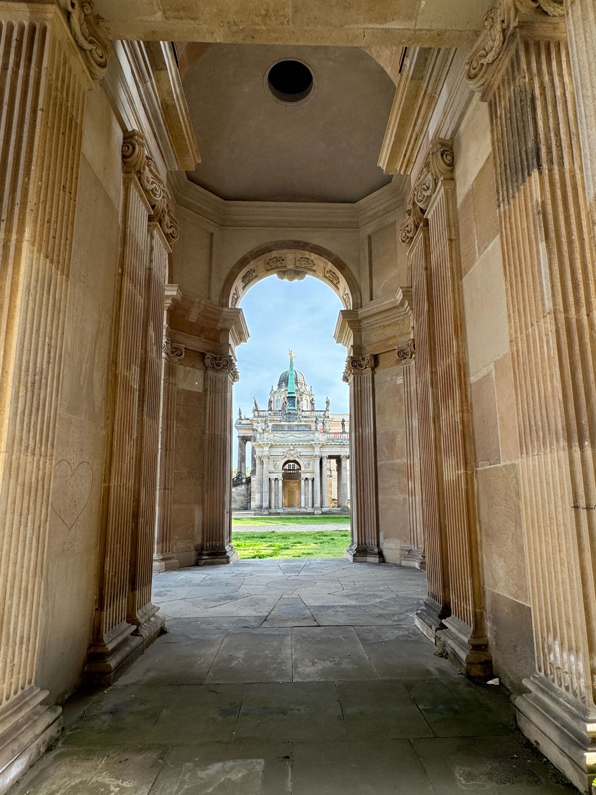Als allerletzte Besucherin des heutigen Tages darf ich noch die mehr als 200 Stufen erklimmen, die zum Kolonnadengang führen, währenddessen mein Mann unten auf dem Platz geduldig auf mich wartet. Von hier oben habe ich einen wunderbaren Blick über das so schöne Potsdam.
