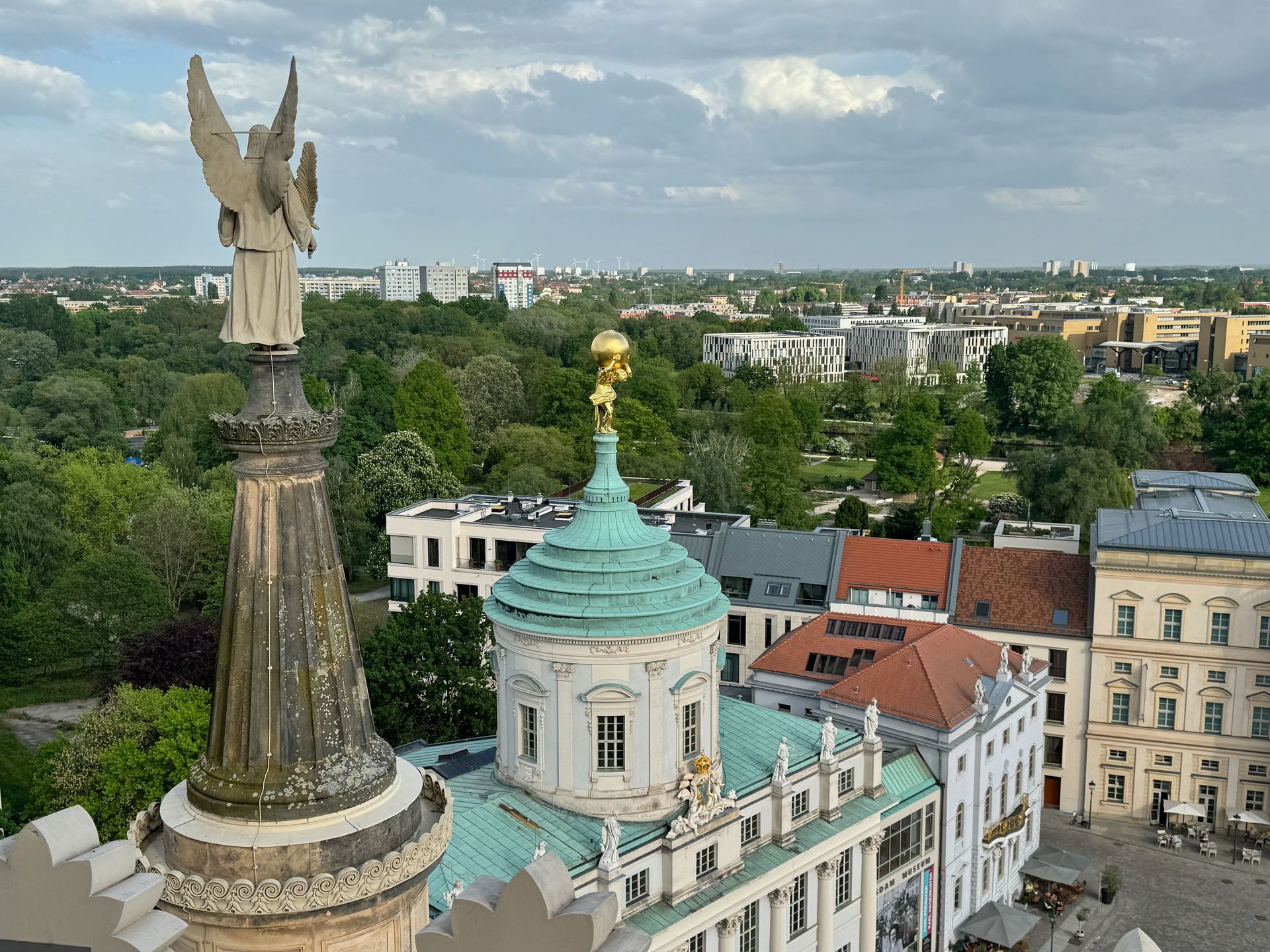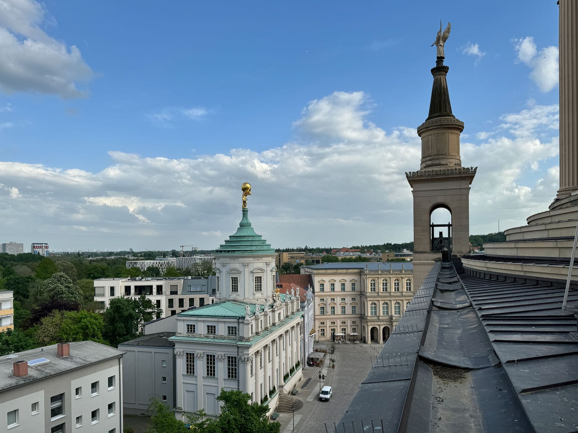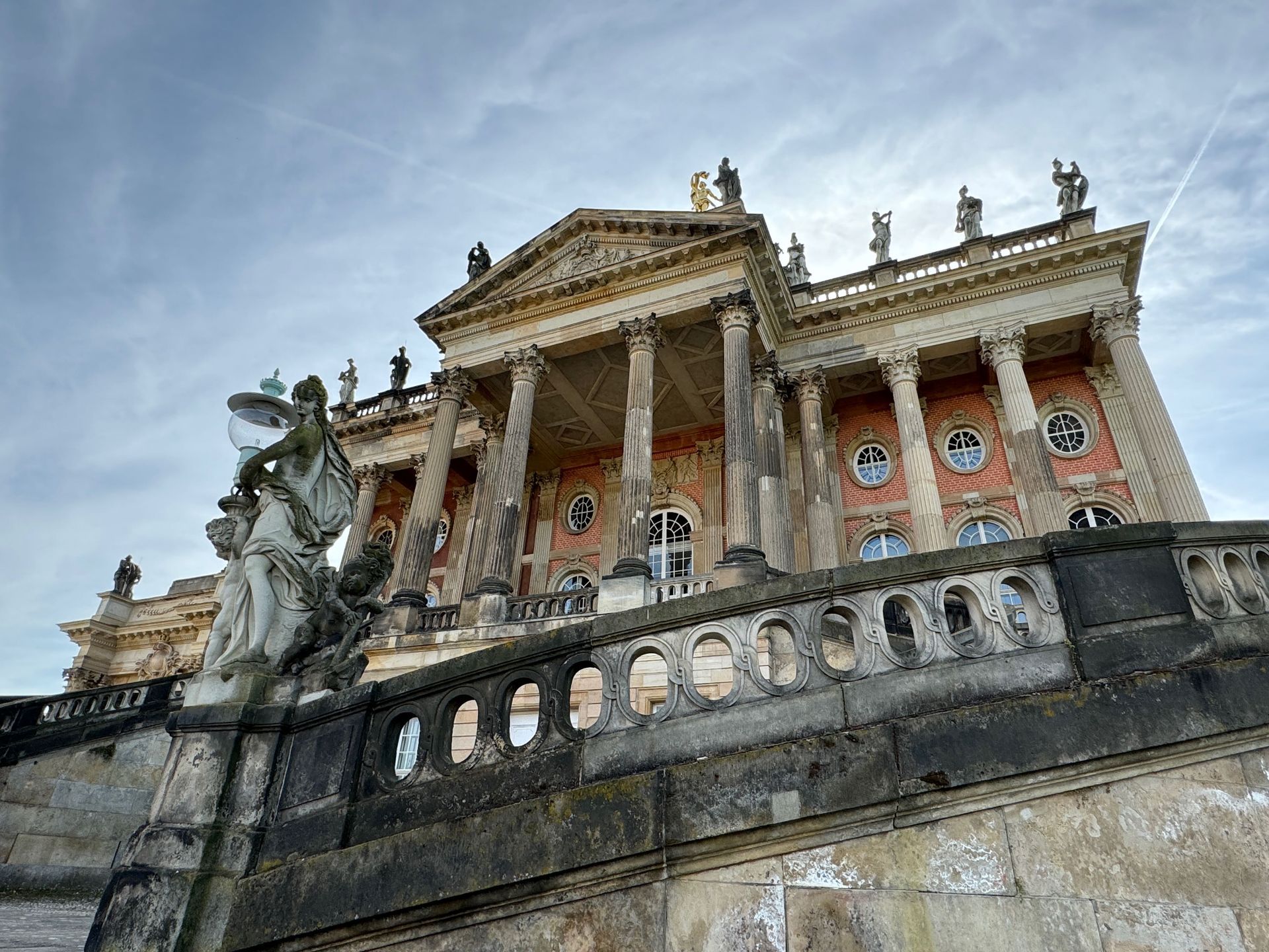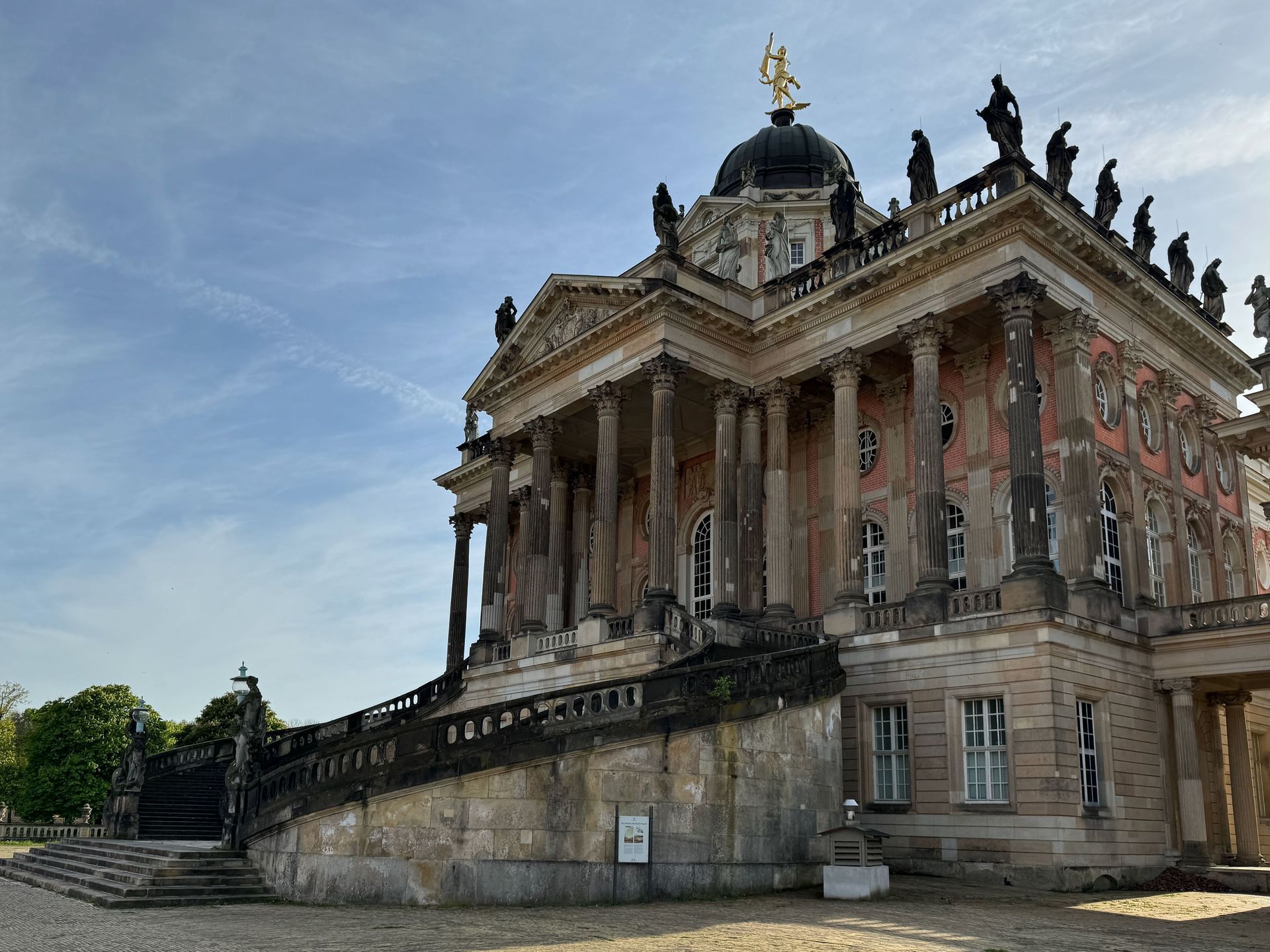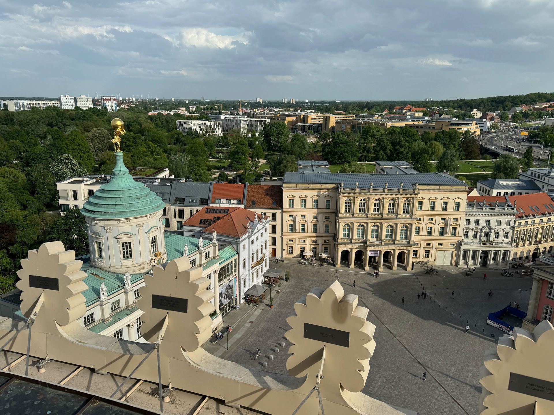 Als allerletzte Besucherin des heutigen Tages darf ich noch die mehr als 200 Stufen erklimmen, die zum Kolonnadengang führen, währenddessen mein Mann unten auf dem Platz geduldig auf mich wartet. Von hier oben habe ich einen wunderbaren Blick über das so schöne Potsdam.