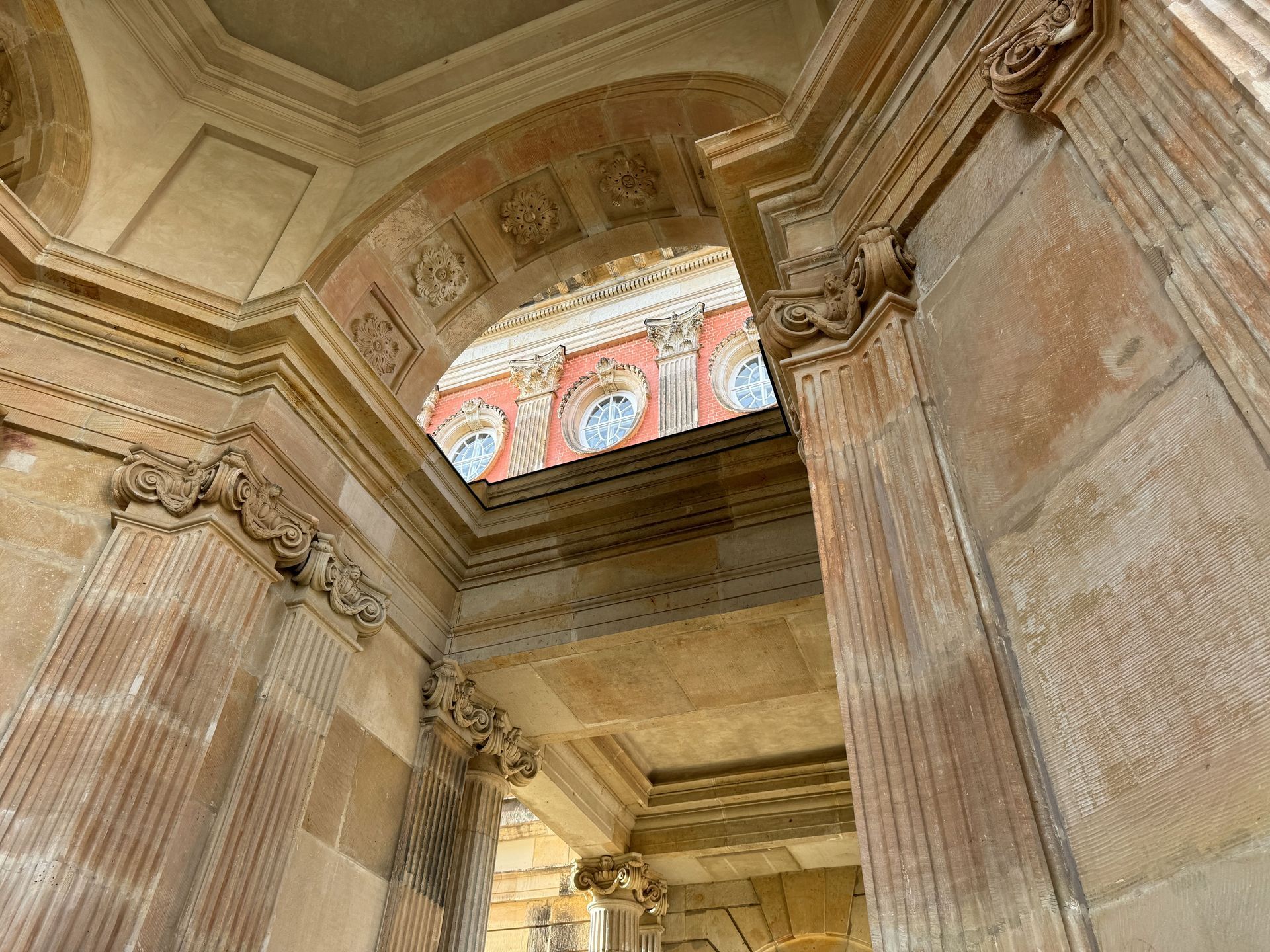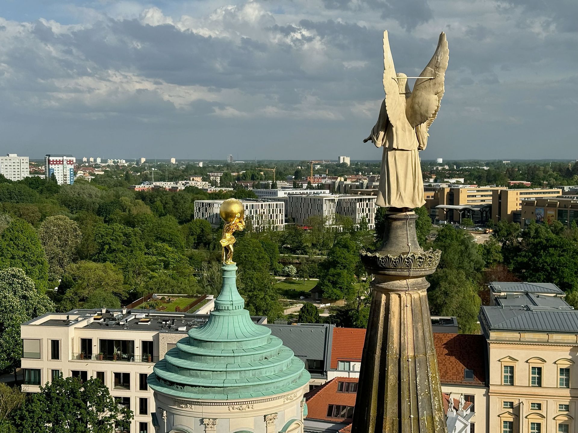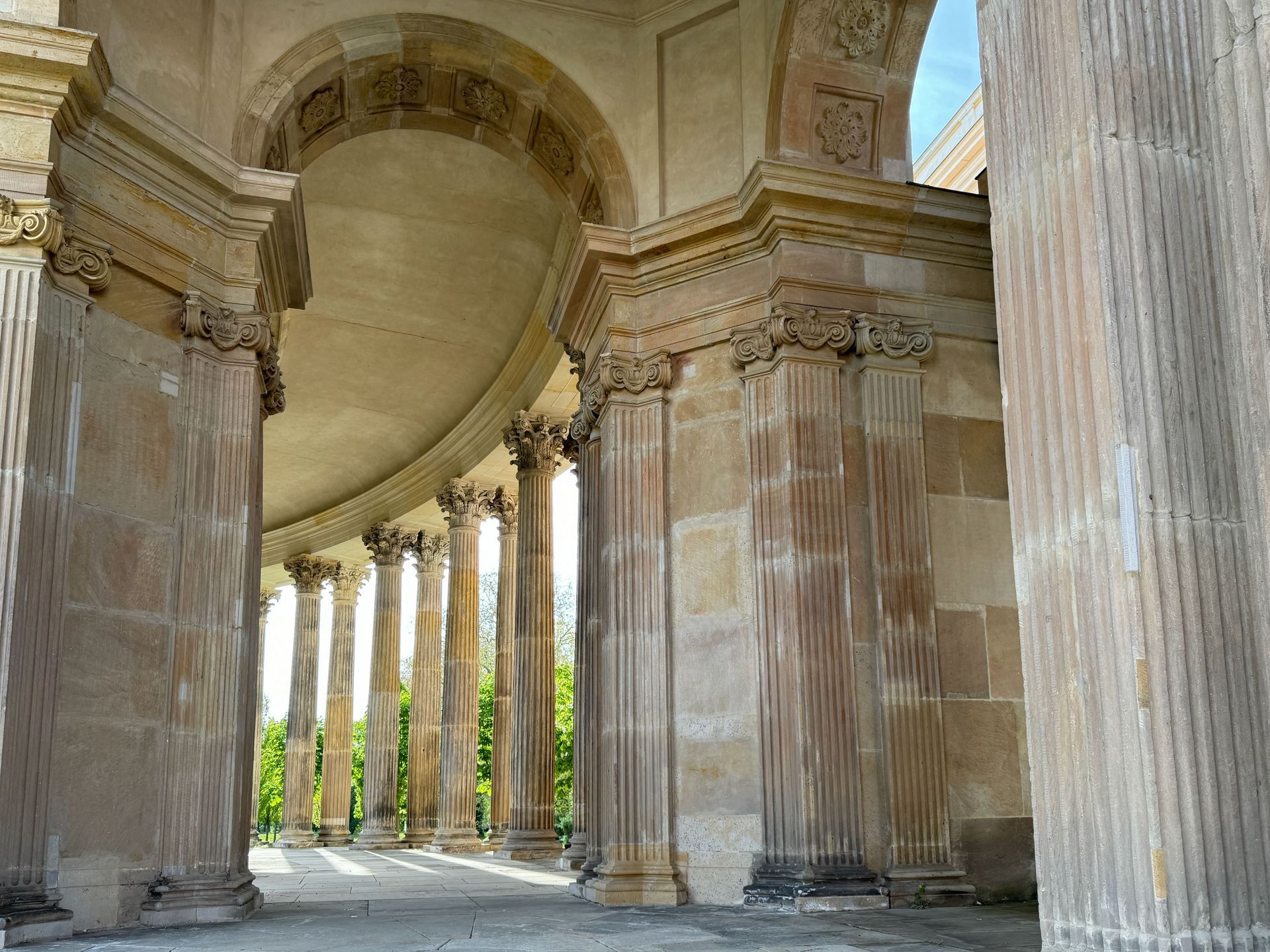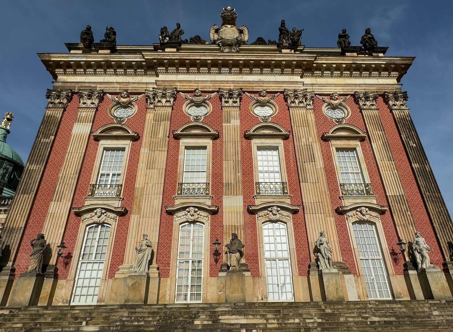 Als allerletzte Besucherin des heutigen Tages darf ich noch die mehr als 200 Stufen erklimmen, die zum Kolonnadengang führen, währenddessen mein Mann unten auf dem Platz geduldig auf mich wartet. Von hier oben habe ich einen wunderbaren Blick über das so schöne Potsdam.