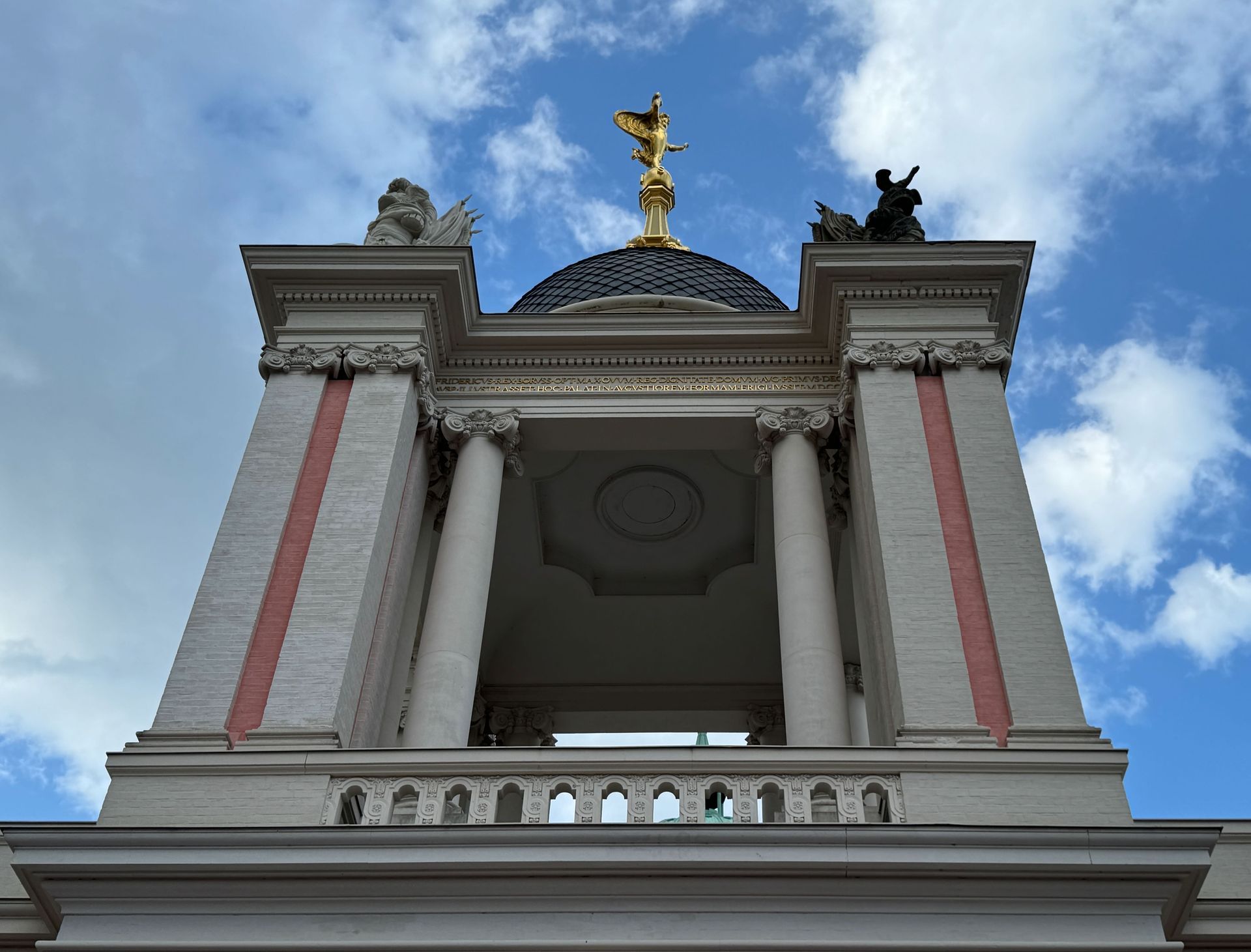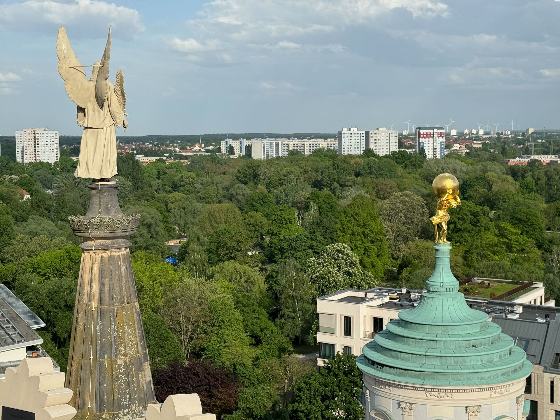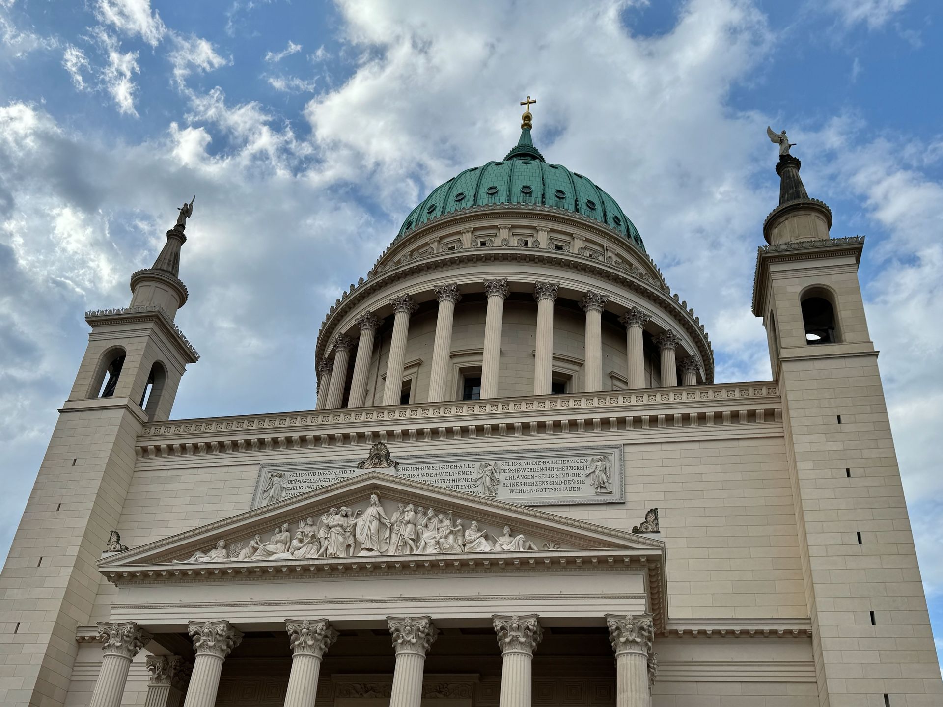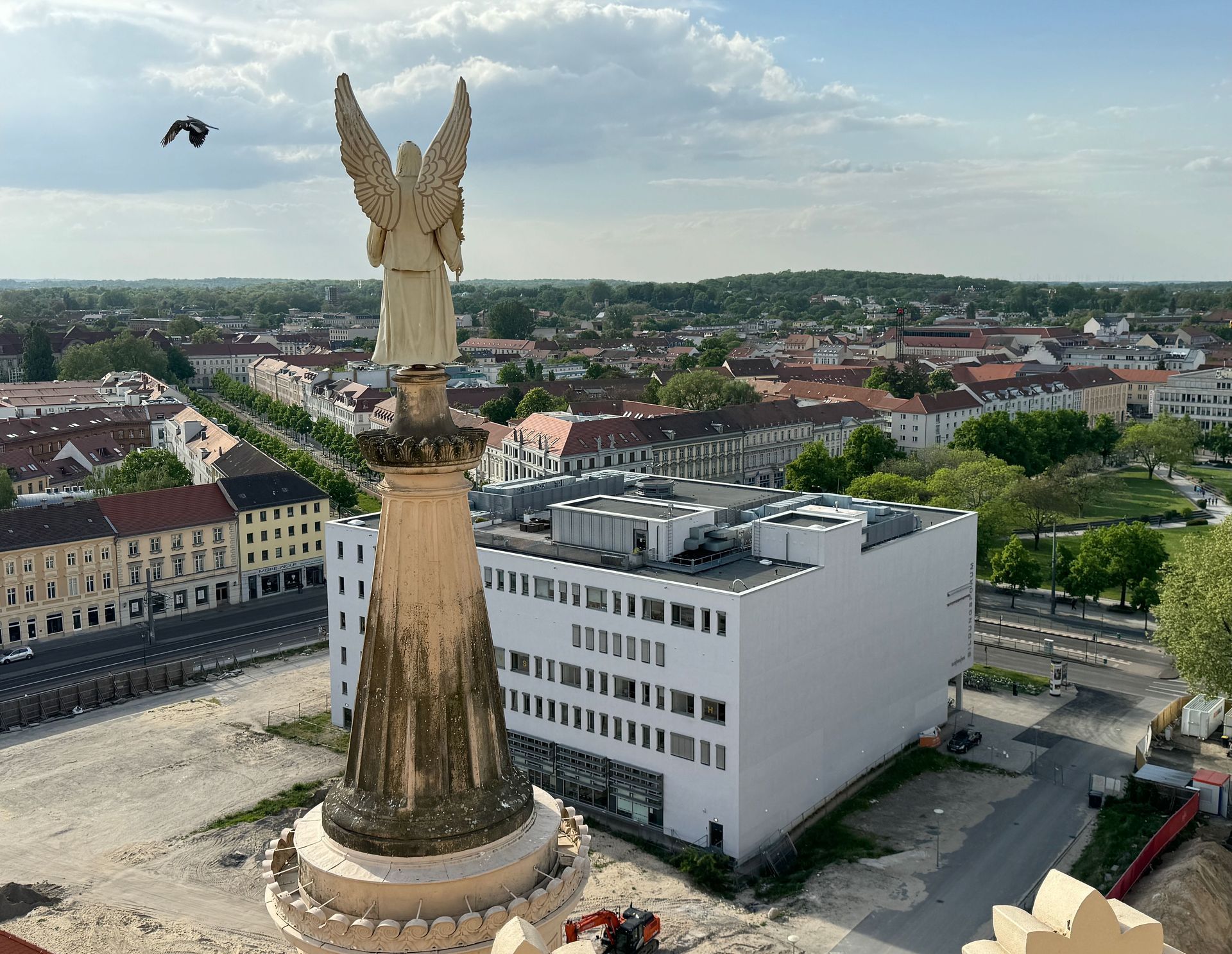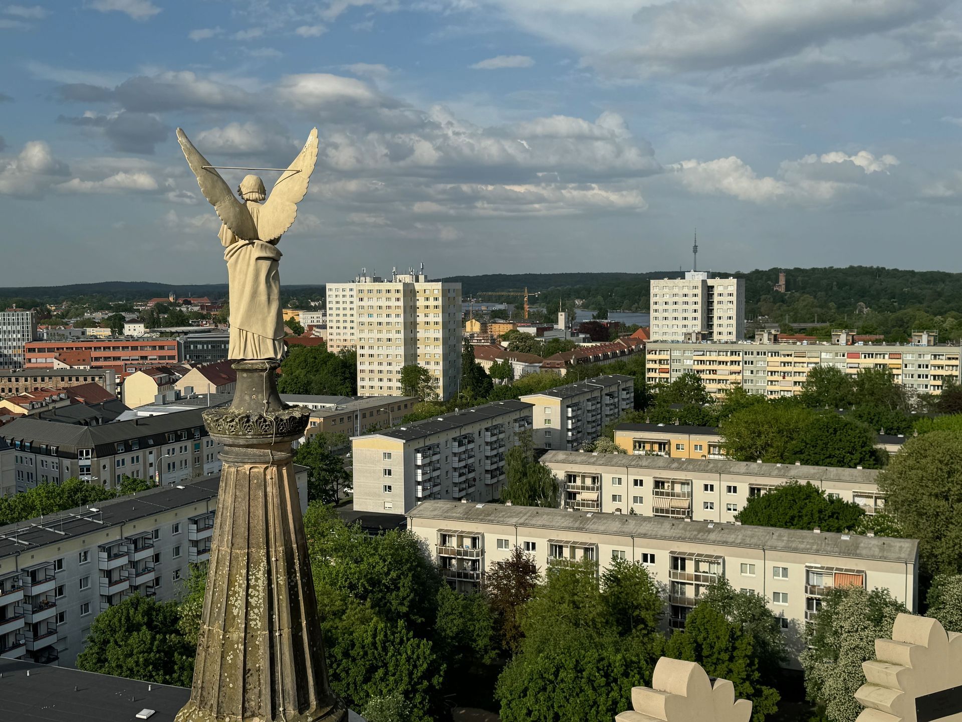 Als allerletzte Besucherin des heutigen Tages darf ich noch die mehr als 200 Stufen erklimmen, die zum Kolonnadengang führen, währenddessen mein Mann unten auf dem Platz geduldig auf mich wartet. Von hier oben habe ich einen wunderbaren Blick über das so schöne Potsdam.