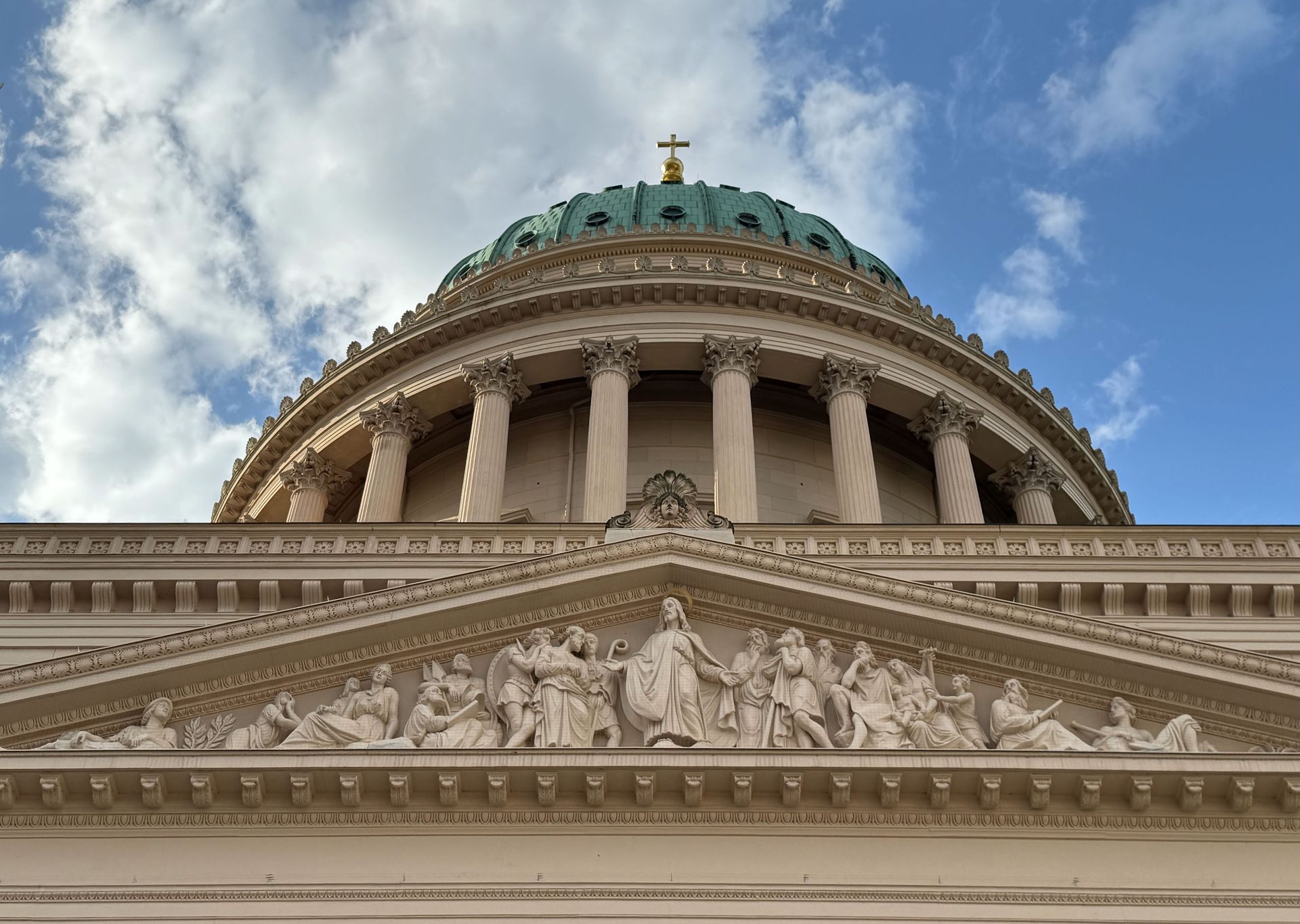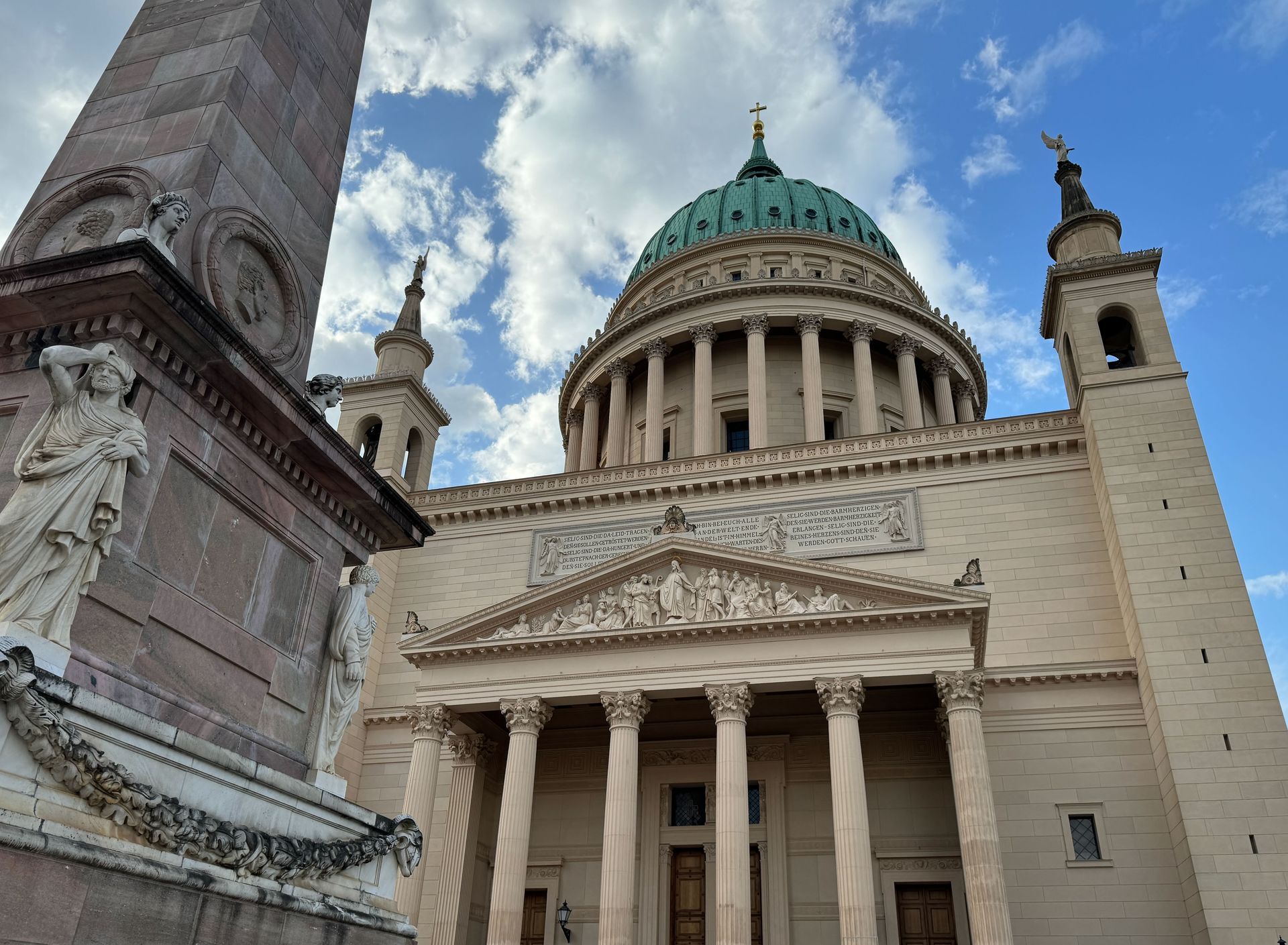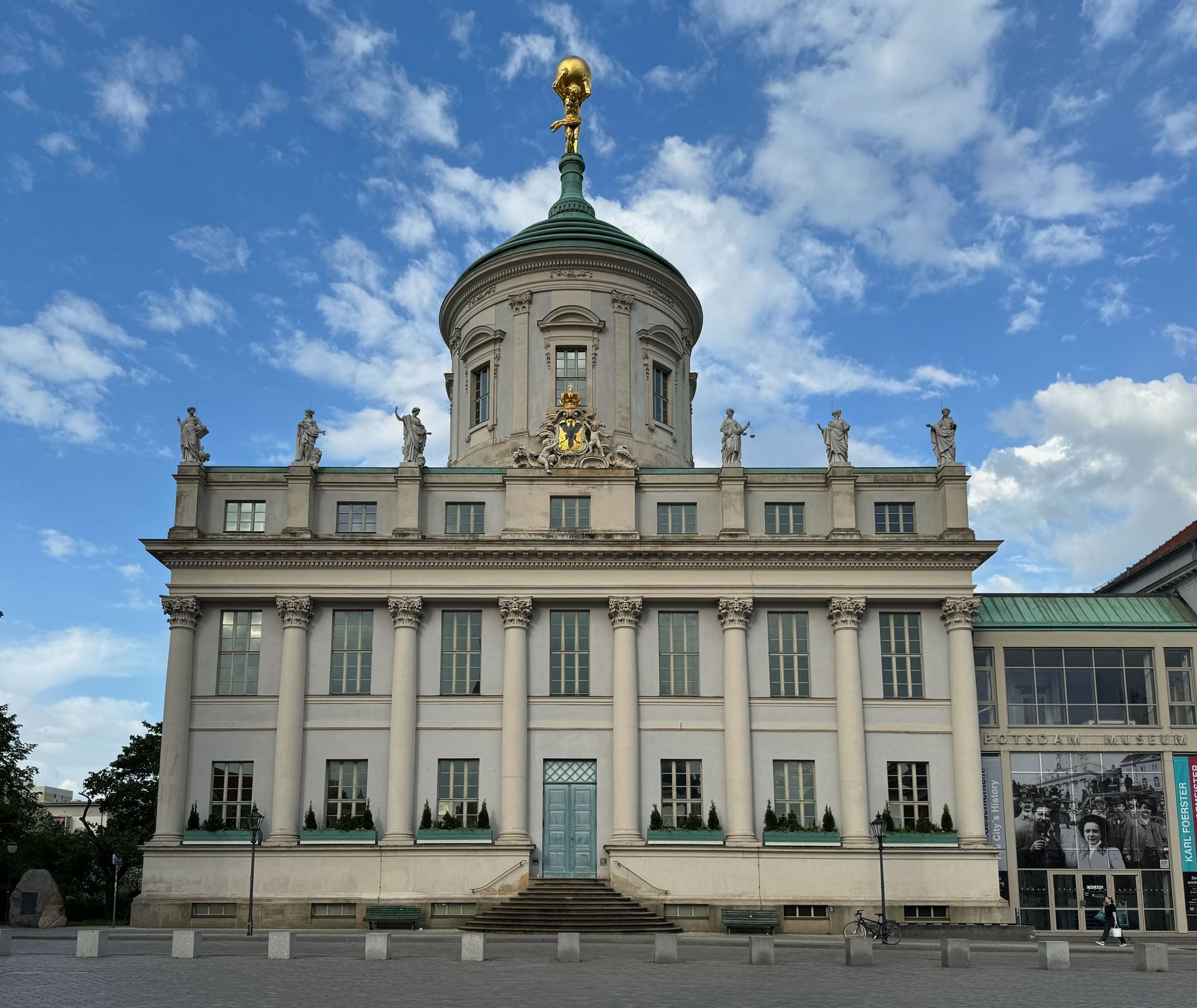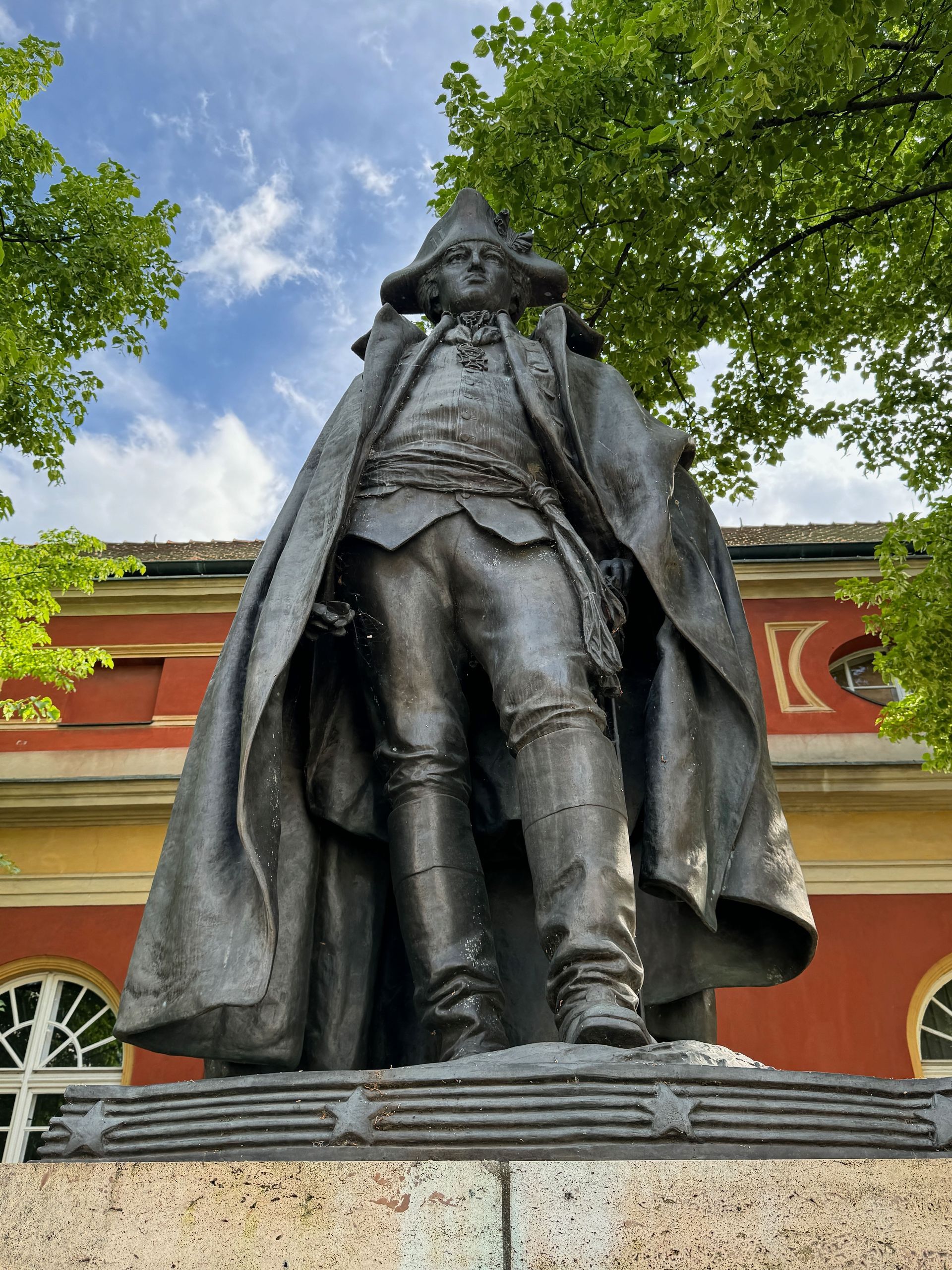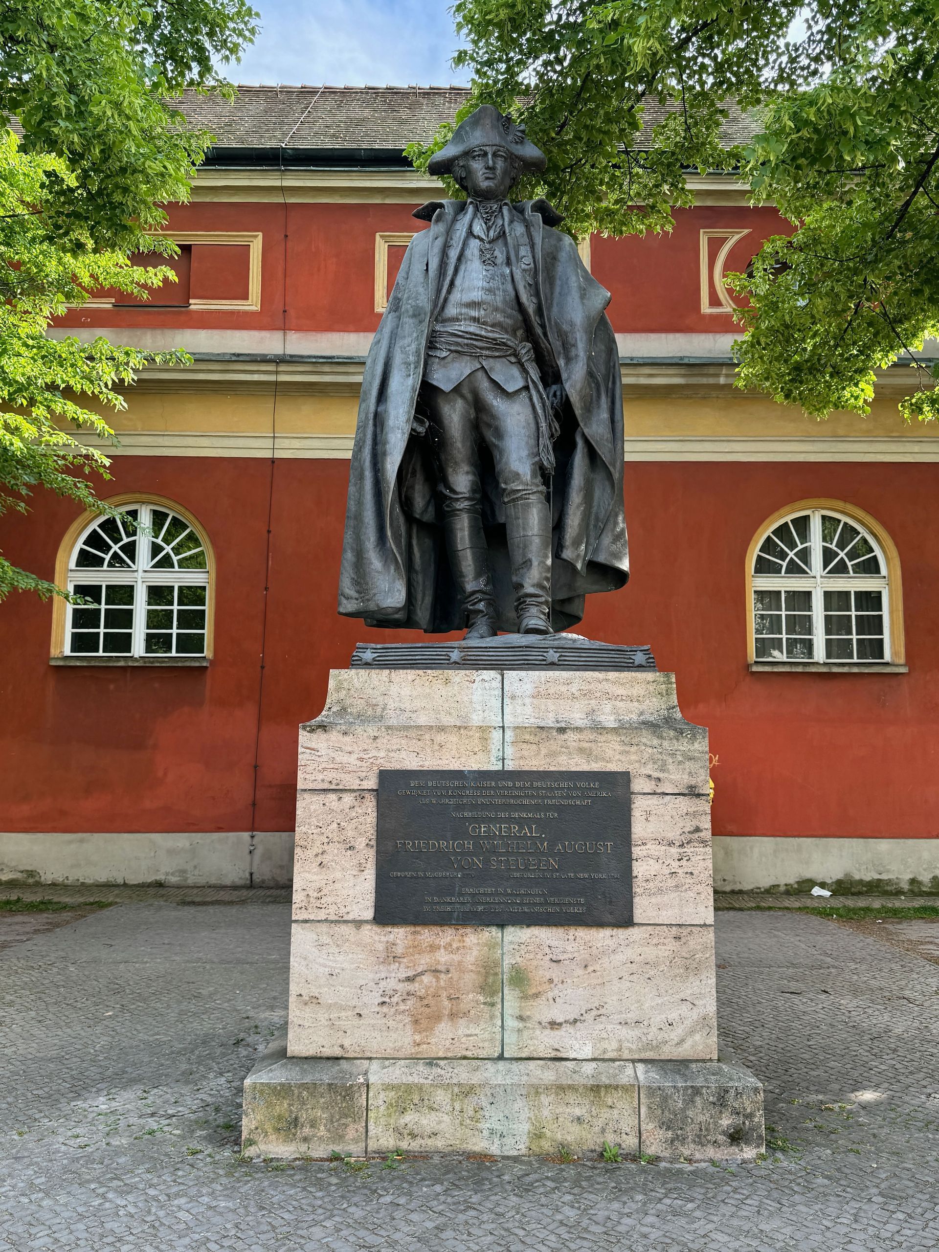 Für den Nachmittag nehmen wir uns ein freudigeres Programm vor. Wir schlendern durch Potsdams Zentrum zum Neuen Markt, vorbei am Marstall, in dem sich das Filmmuseum befindet. Hier steht ein Denkmal von Friedrich Wilhelm von Steuben, der einen ganz erheblichen, wenn nicht sogar den ausschlaggebenden Beitrag dazu leistete, dass die Armee(n) von Georg Washington während des Unabhängigkeitskrieges den Sieg davon trug(en). Die jährliche Steubenparade in New York geht auf ihn zurück. Ein Preuße hatte quasi seine Finger bei der Gründung der Vereinigten Staaten im Spiel.