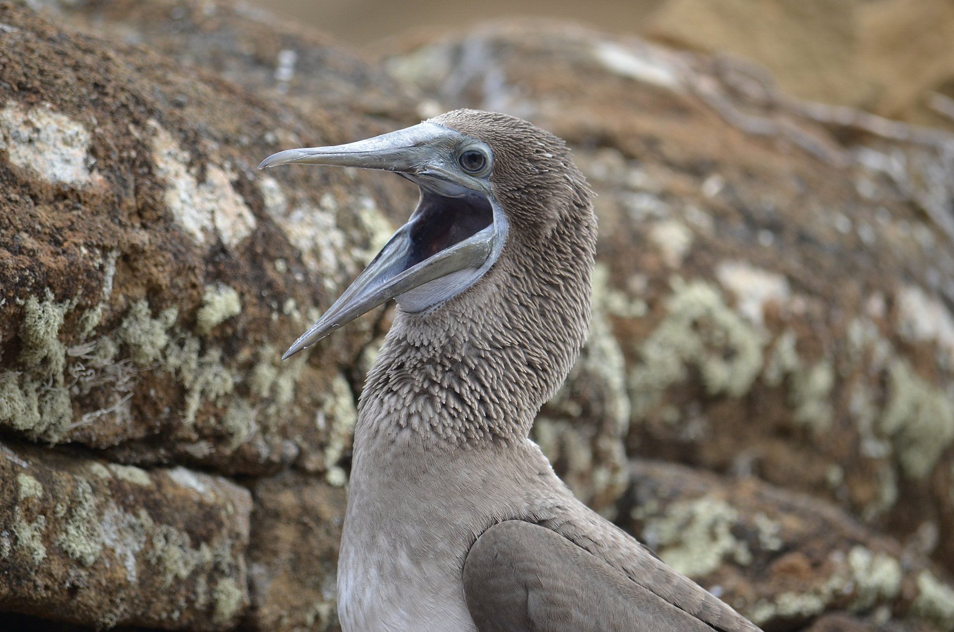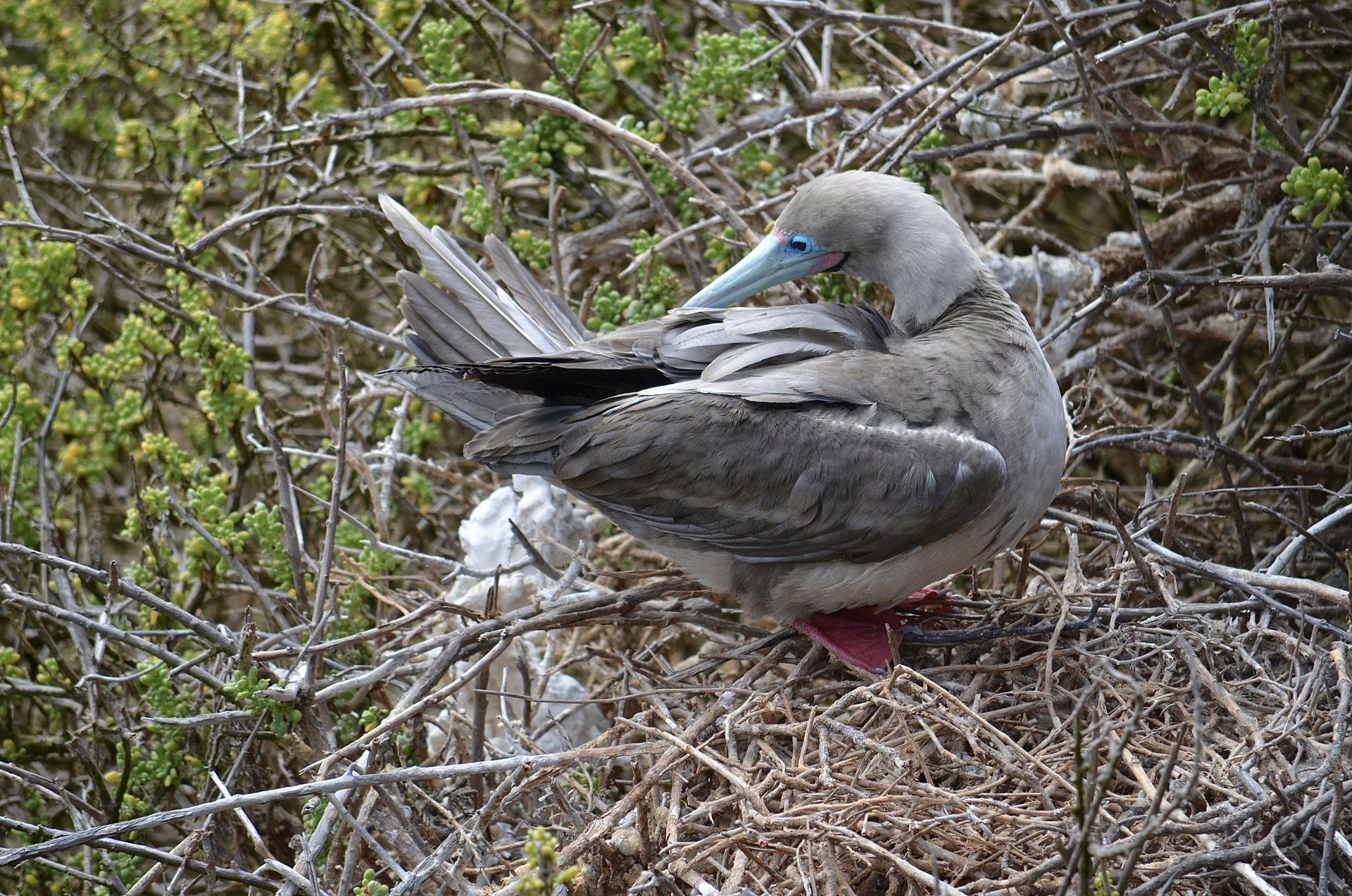 Absolut begeistert bin ich von den vielen Küken hier oben. Die der Blaufußtöpel hocken, völlig zerzaust, auf dem Boden und schauen mich einfach nur an. Die Rotfußtöpel hingegen leben auf Bäumen, wo sie auch brüten. Ganz entspannt und gelassen sitzen die Rotfußtölpel auf den Ästen und schauen von oben auf mich herab. Ich kann es immer noch nicht glauben, dass die Tiere einfach ruhig sitzen bleiben und es ihnen so dermaßen egal ist, dass ich hier rumlaufe und sie fotografiere.