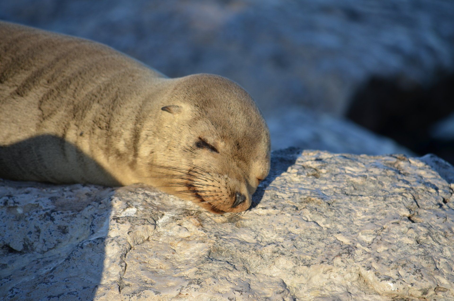 Da Santa Fe über keinen Steg zum Anlegen verfügt, haben wir heute unser erstes Wet Landing auf dieser Kreuzfahrt, was allerdings bei diesen Temperaturen keinerlei Problem darstellt. Wir müssen nur beim Abtrocknen der Füße und dem anschließenden Reinschlüpfen in Socken und Schuhe aufpassen, dass wir alles irgendwie festhalten, denn die ersten, ausgesprochen süßen und nicht minder neugierigen Seelöwenjungen sind schon zur Stelle. Zügig verpacken wir unsere Sachen in den wasserdichten Rucksack, bevor wir zur Inselerkundung starten.