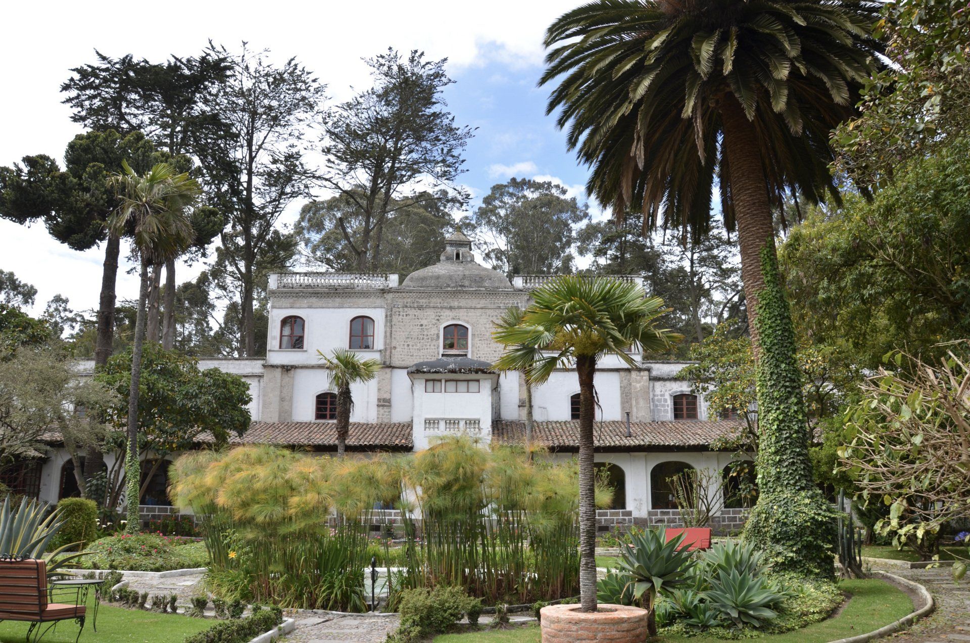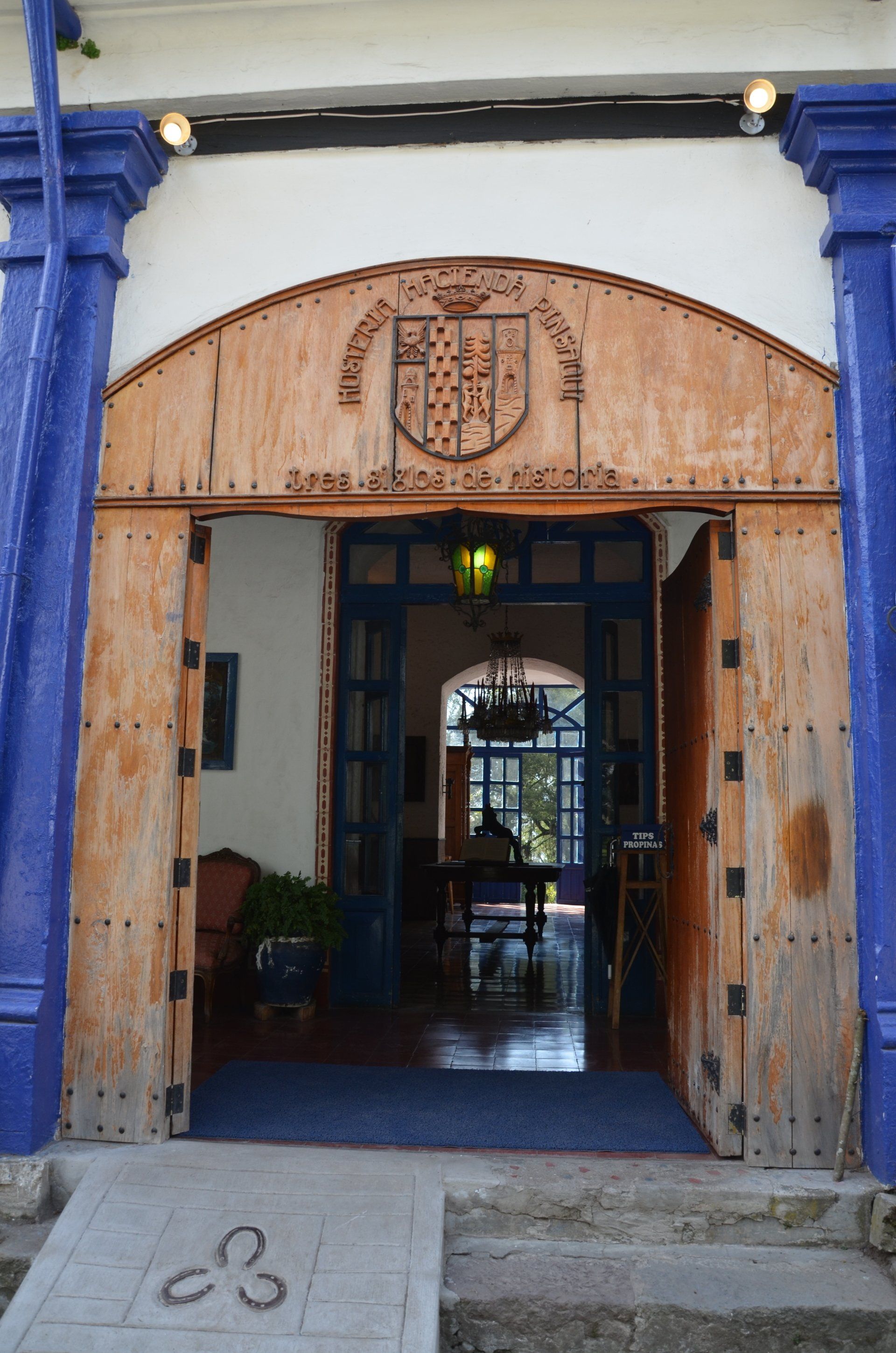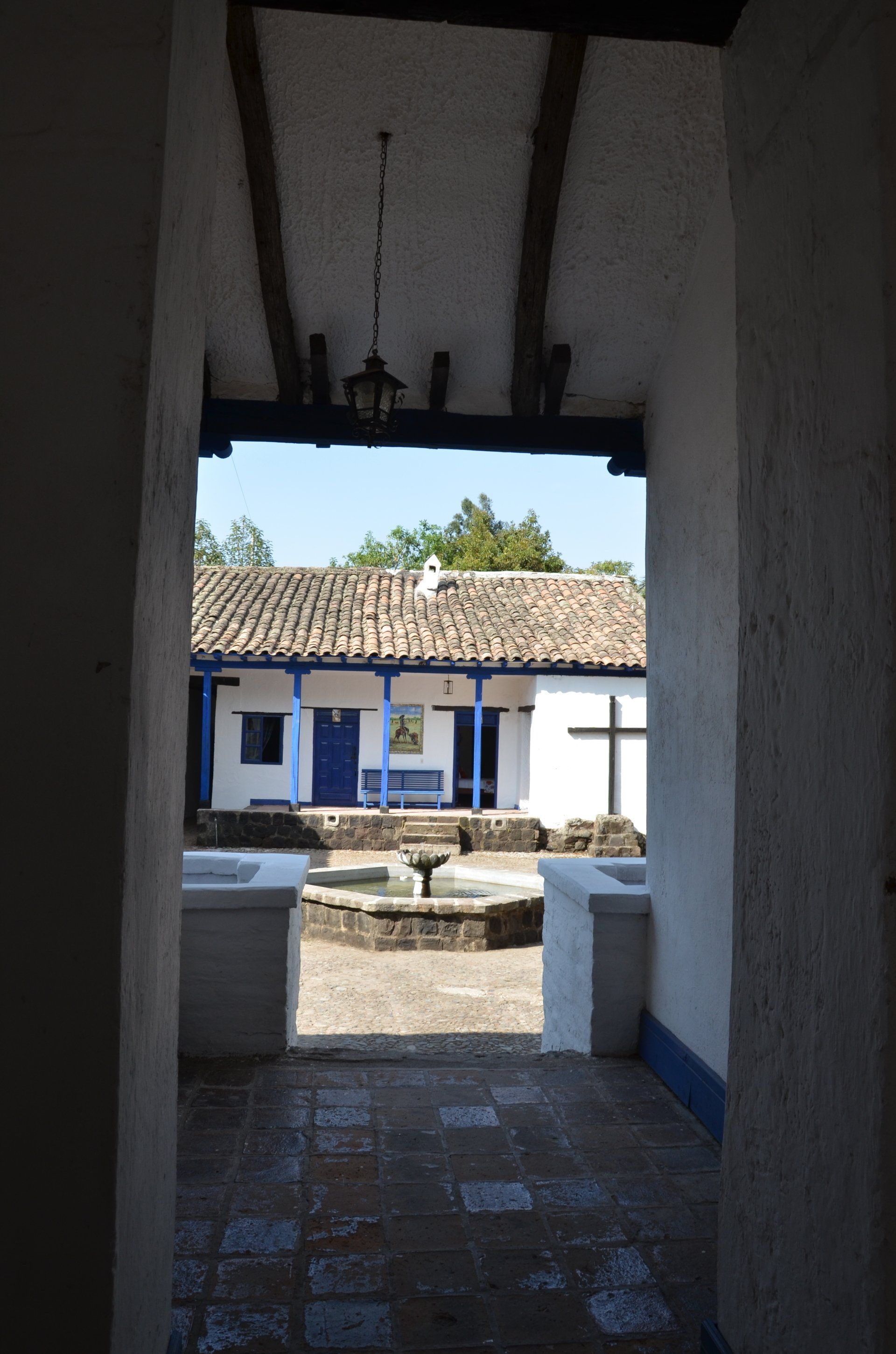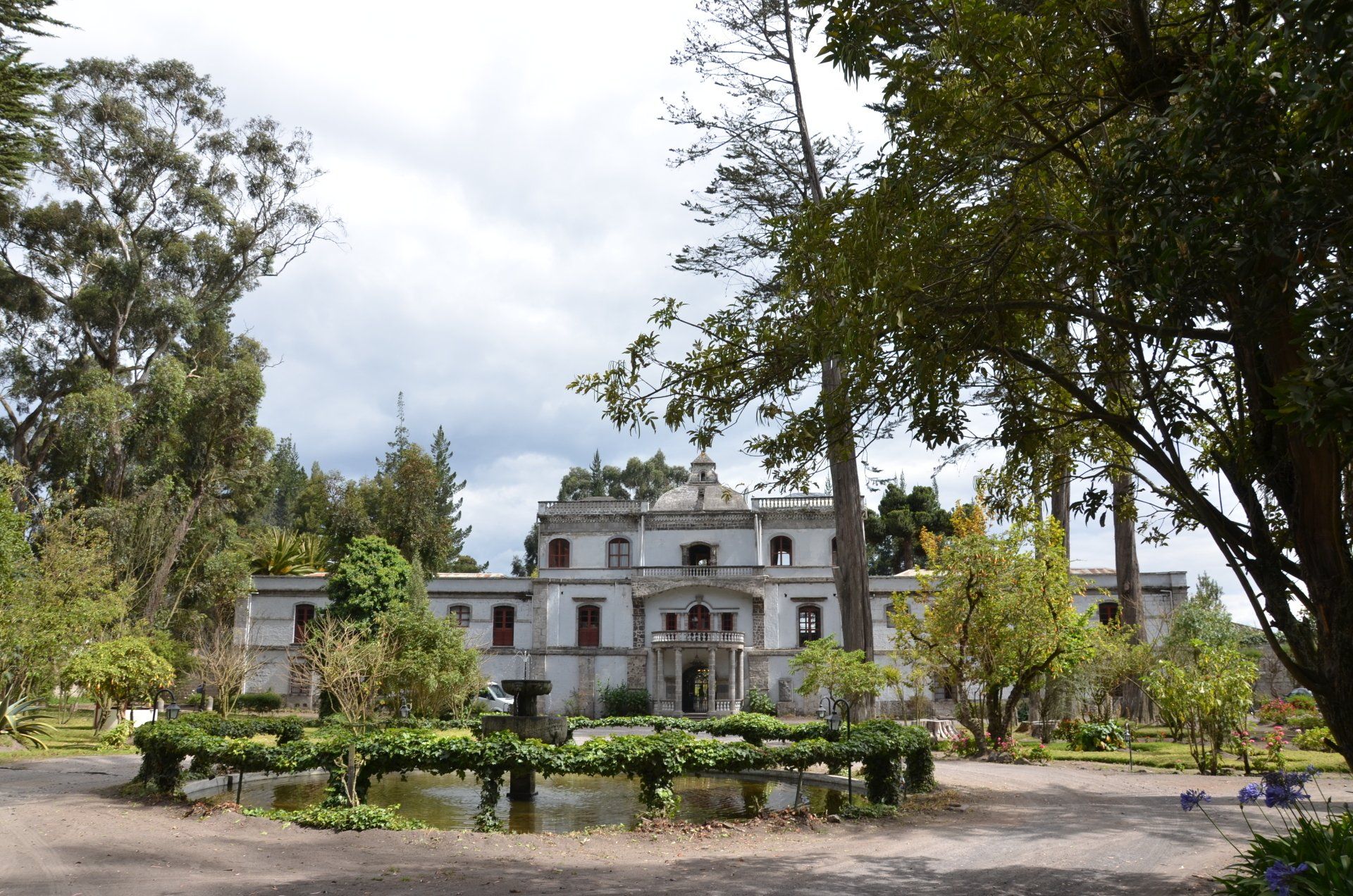 Der Großvater des jetzigen Besitzers der Hacienda Pinsaqui war Botschafter in Mexiko, wo er unter anderem auch Frida Kahlo traf. Von dieser Begegnung hängt eine Fotografie in den Hallen der altehrwürdigen Hacienda. Überhaupt kann man eine ganze Weile durch die Gebäude schlendern und immer wieder sehr interessante Entdeckungen machen. Besonders die vielen Fotografien finde ich spannend. Der Garten ist voll von alten Baumbeständen und im vorderen Bereich befindet sich eine wunderschöne Allee. Zur Hacienda gehört – nicht ungewöhnlich – eine alte Kapelle. Pferdefreunde kommen auch auf ihre Kosten. Im Garten laufen die Pferde der Hacienda frei herum.