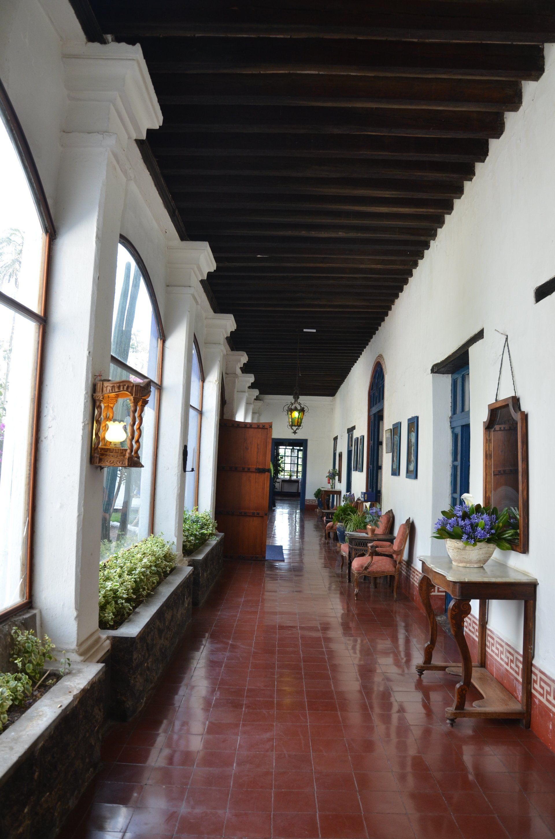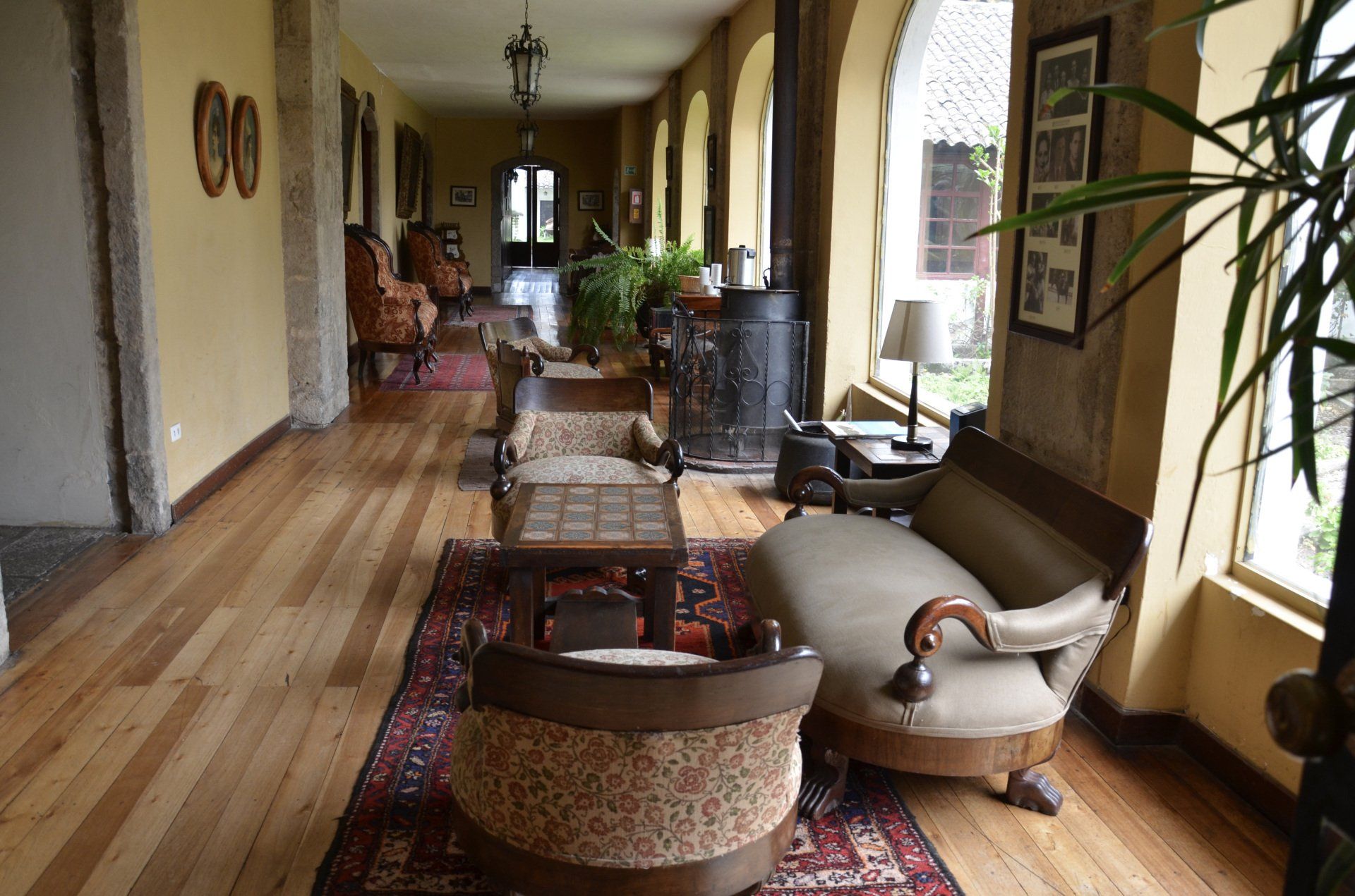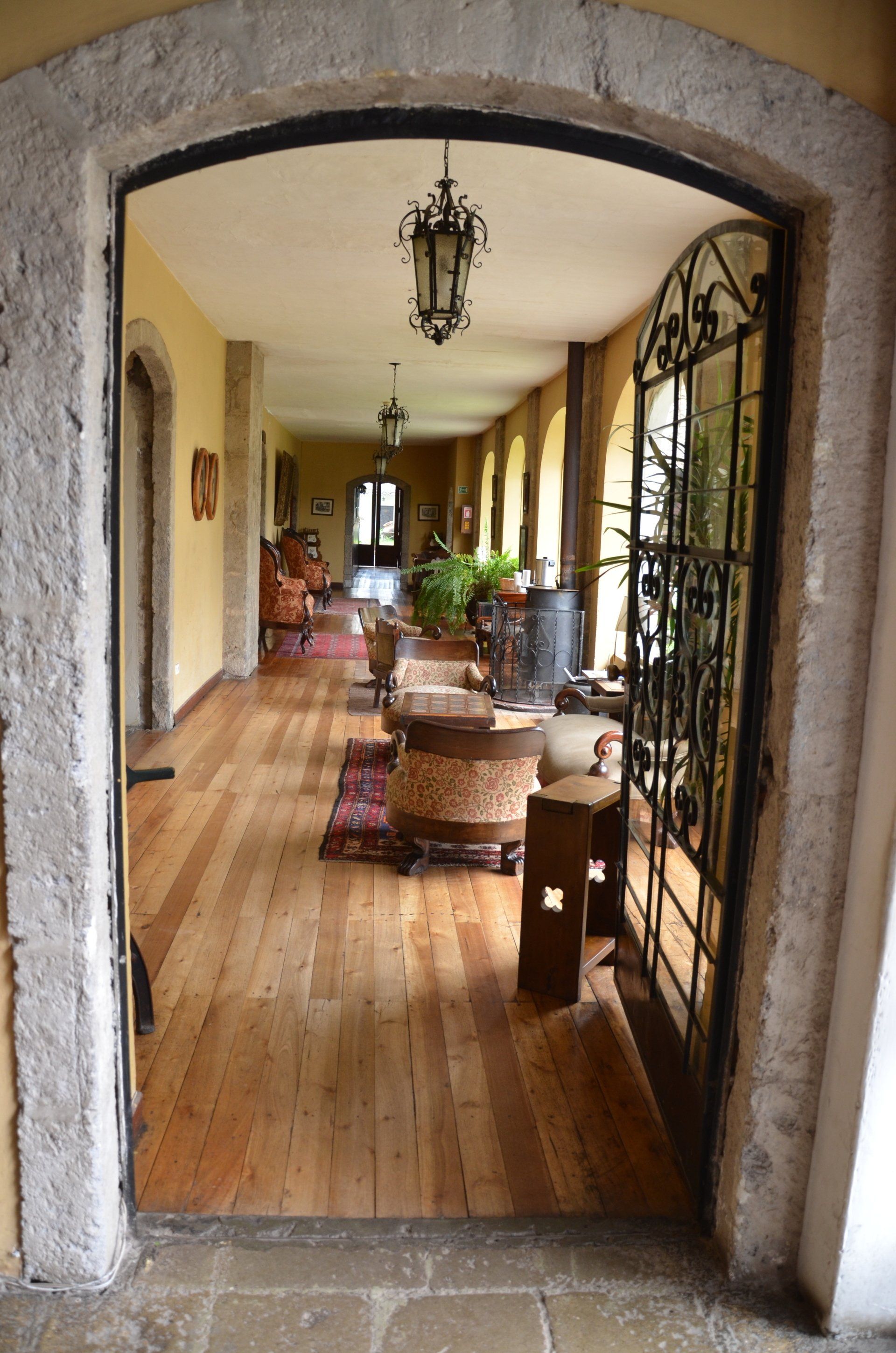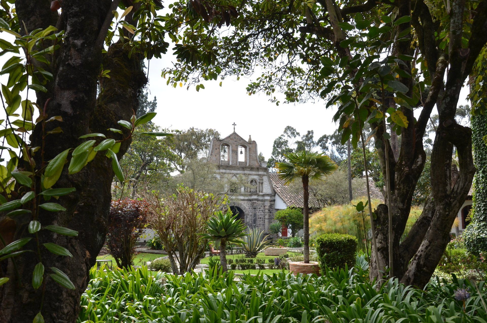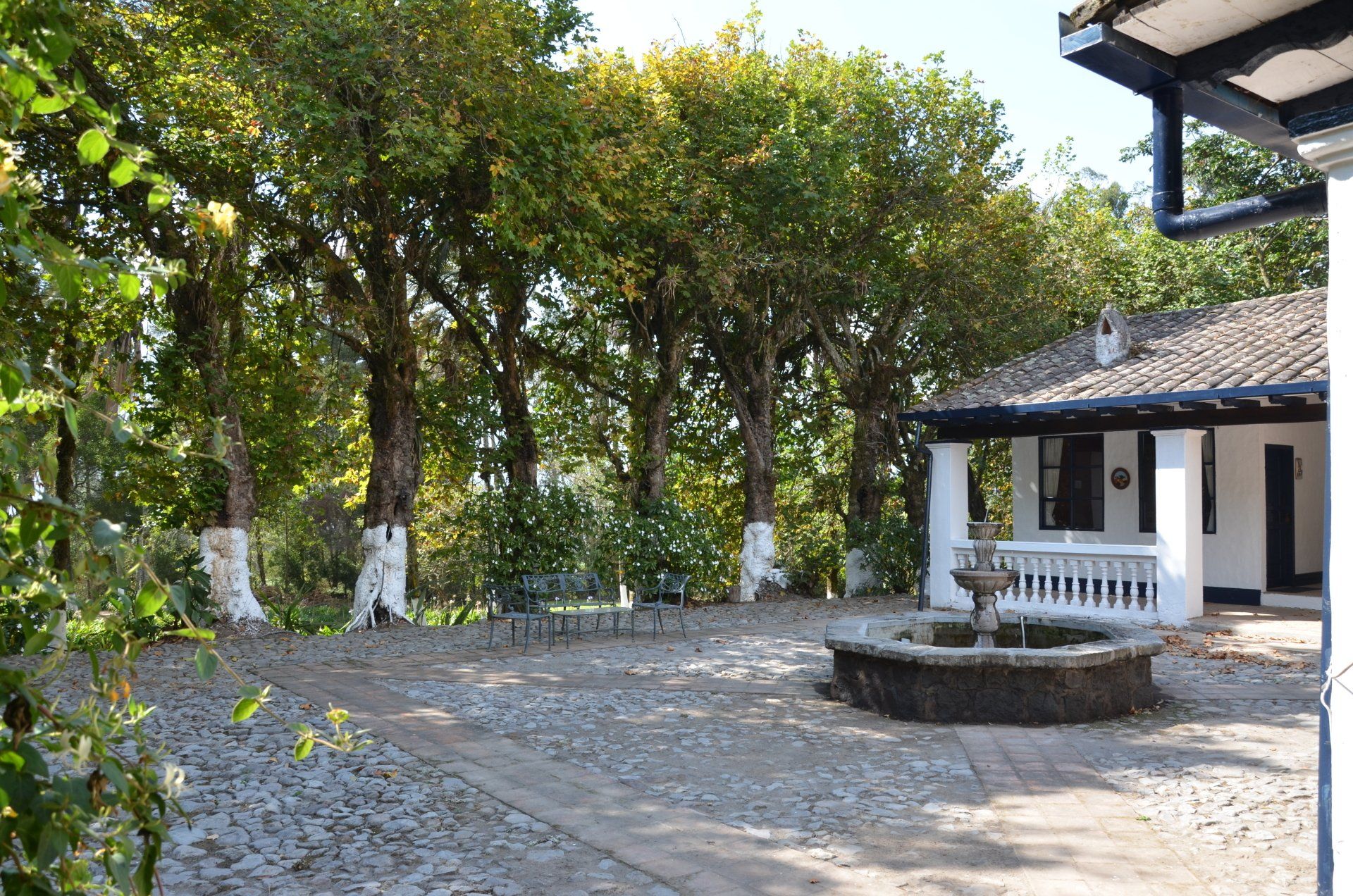 Der Großvater des jetzigen Besitzers der Hacienda Pinsaqui war Botschafter in Mexiko, wo er unter anderem auch Frida Kahlo traf. Von dieser Begegnung hängt eine Fotografie in den Hallen der altehrwürdigen Hacienda. Überhaupt kann man eine ganze Weile durch die Gebäude schlendern und immer wieder sehr interessante Entdeckungen machen. Besonders die vielen Fotografien finde ich spannend. Der Garten ist voll von alten Baumbeständen und im vorderen Bereich befindet sich eine wunderschöne Allee. Zur Hacienda gehört – nicht ungewöhnlich – eine alte Kapelle. Pferdefreunde kommen auch auf ihre Kosten. Im Garten laufen die Pferde der Hacienda frei herum.