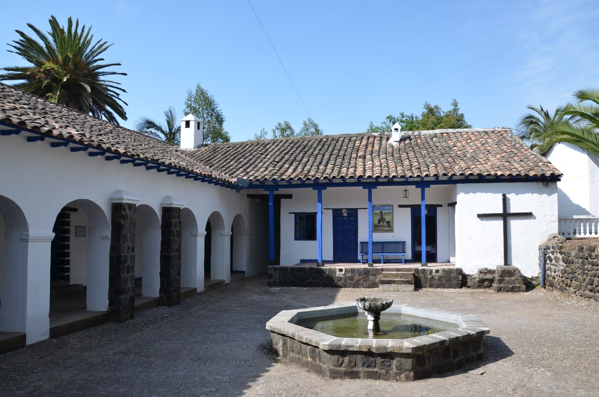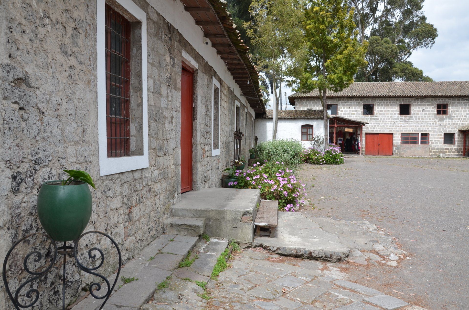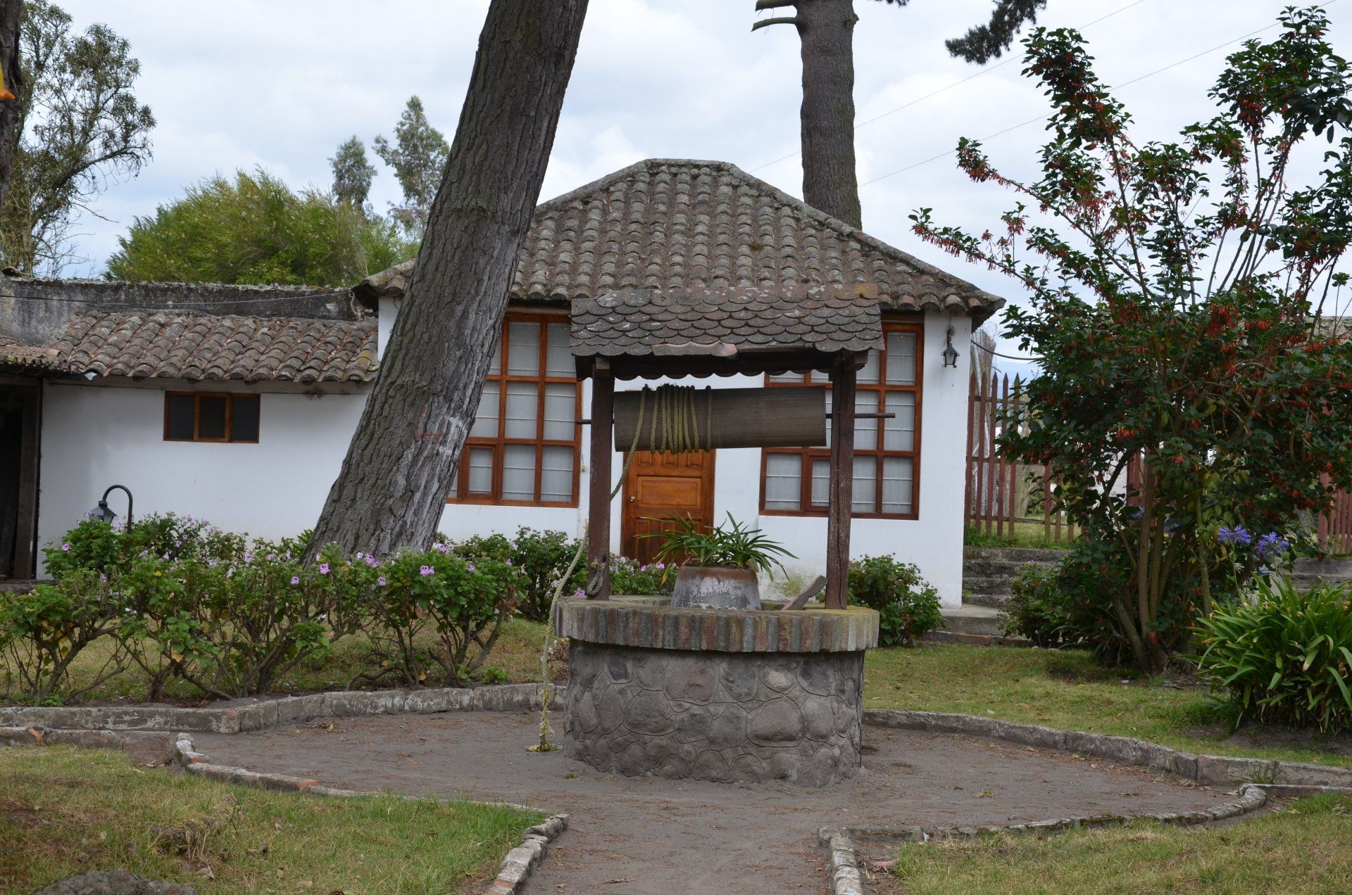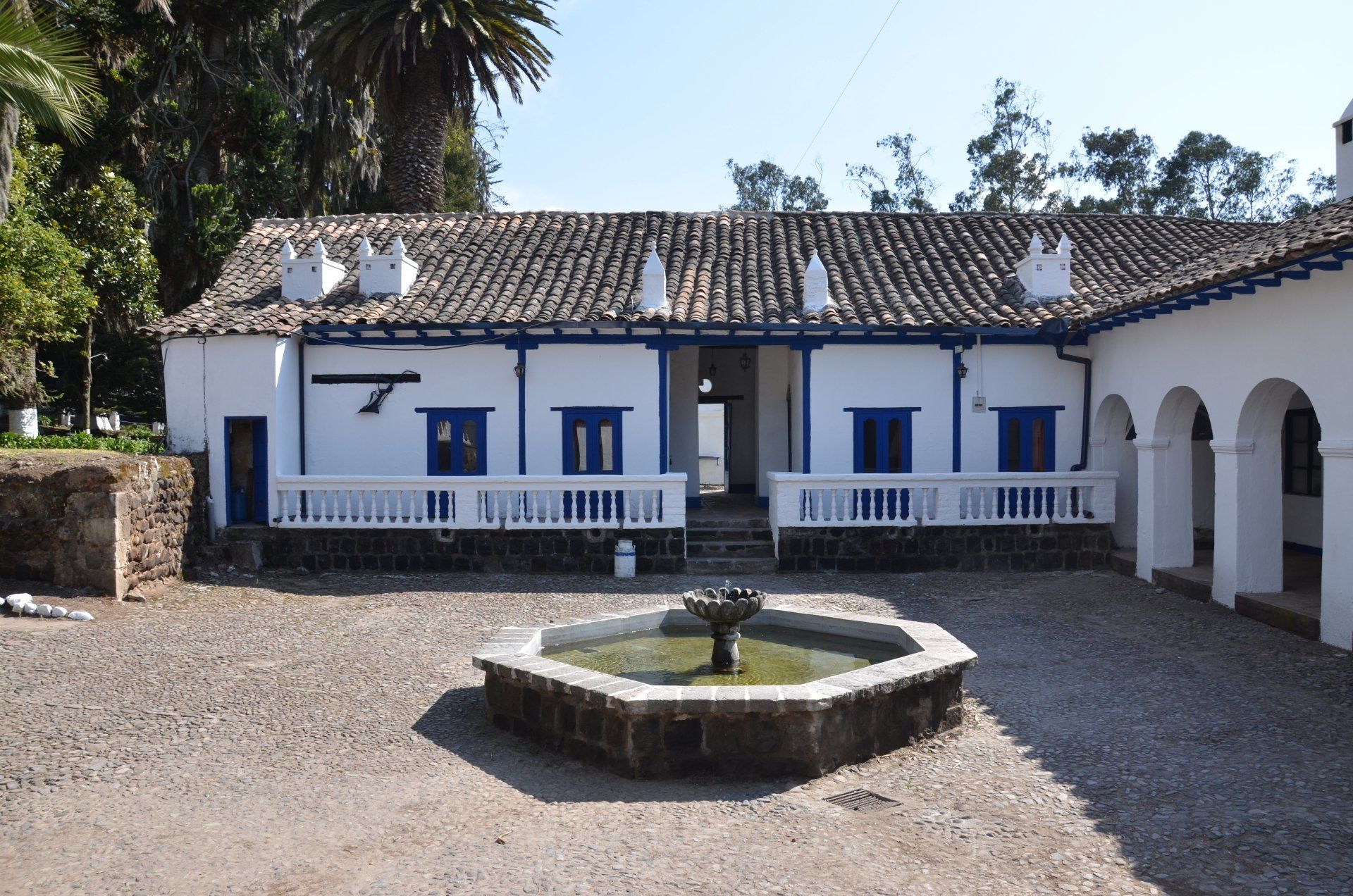 Der Großvater des jetzigen Besitzers der Hacienda Pinsaqui war Botschafter in Mexiko, wo er unter anderem auch Frida Kahlo traf. Von dieser Begegnung hängt eine Fotografie in den Hallen der altehrwürdigen Hacienda. Überhaupt kann man eine ganze Weile durch die Gebäude schlendern und immer wieder sehr interessante Entdeckungen machen. Besonders die vielen Fotografien finde ich spannend. Der Garten ist voll von alten Baumbeständen und im vorderen Bereich befindet sich eine wunderschöne Allee. Zur Hacienda gehört – nicht ungewöhnlich – eine alte Kapelle. Pferdefreunde kommen auch auf ihre Kosten. Im Garten laufen die Pferde der Hacienda frei herum.