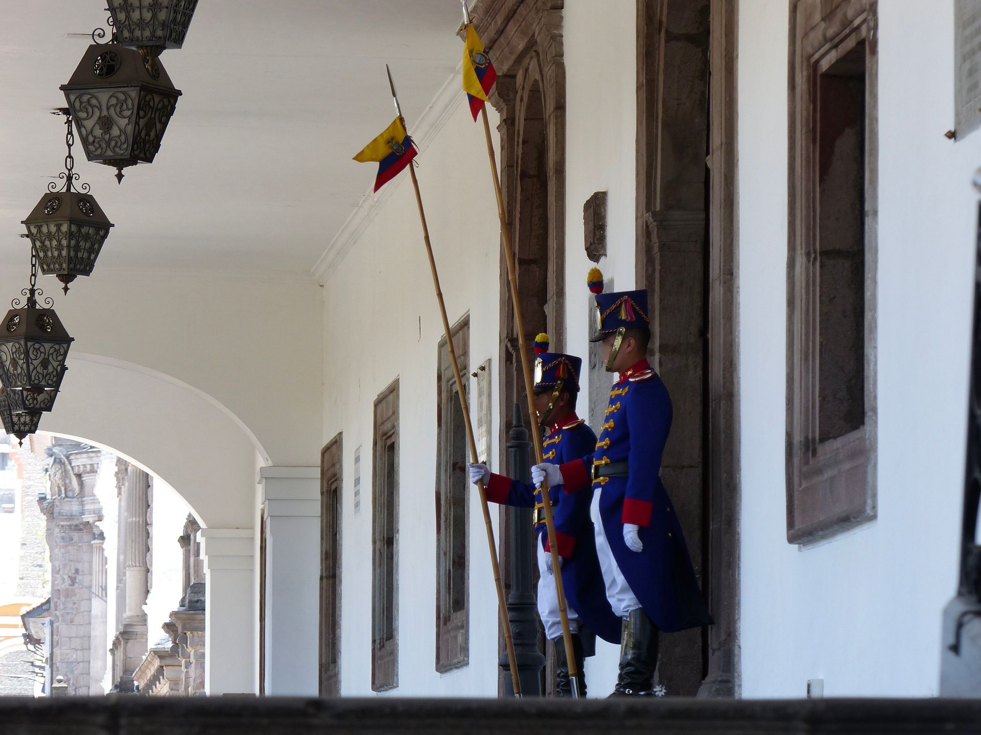 Wir schlendern noch einige Zeit durch die Straßen des historischen Zentrums, genießen die Eindrücke, verweilen ausgiebig auf dem Plaza de la Independencia, an der auch der Regierungspalast liegt, bewundern die Uniformen der Regierungswachen und schauen uns immer mal wieder eine Kirche von innen an. Selbst wenn eine Kirche von außen einmal unscheinbar wirkt, innen ist beinahe jede dermaßen prächtig ausgestattet, dass wir uns fragen, wieviel Reichtum hier vorhanden sein muss.