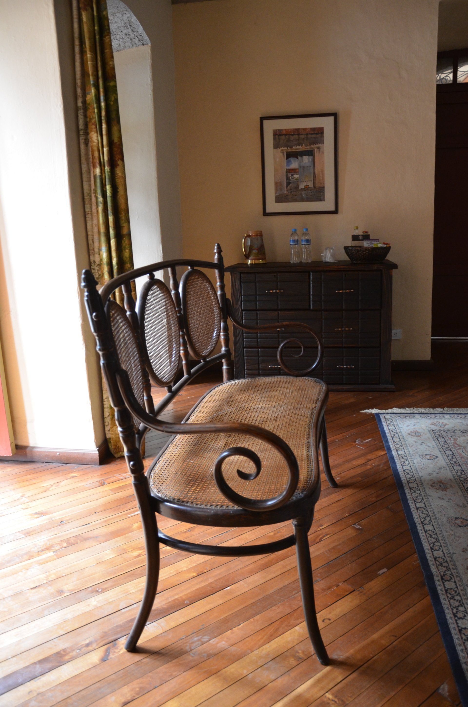 Wir beziehen unser Zimmer, das Bad scheint recht neu zu sein, alles ist sehr sauber, aber eher einfach. In unserem Zimmer, obwohl recht groß, steht nur ein Schaukelstuhl, aber kein Stuhl. Nachdem ich frage, ob wir noch einen Stuhl bekommen könnten, werden gleich zwei gebracht. Die Frage, ob wir auch noch einen Tisch möchten, beantworte ich mit: „Oh ja, sehr gerne, wenn es nicht zu viele Mühen macht“. Mein Mann verdreht schon die Augen und fragt mich später, ob wir nicht gleich den ganzen Hausstand ins Zimmer holen wollen …