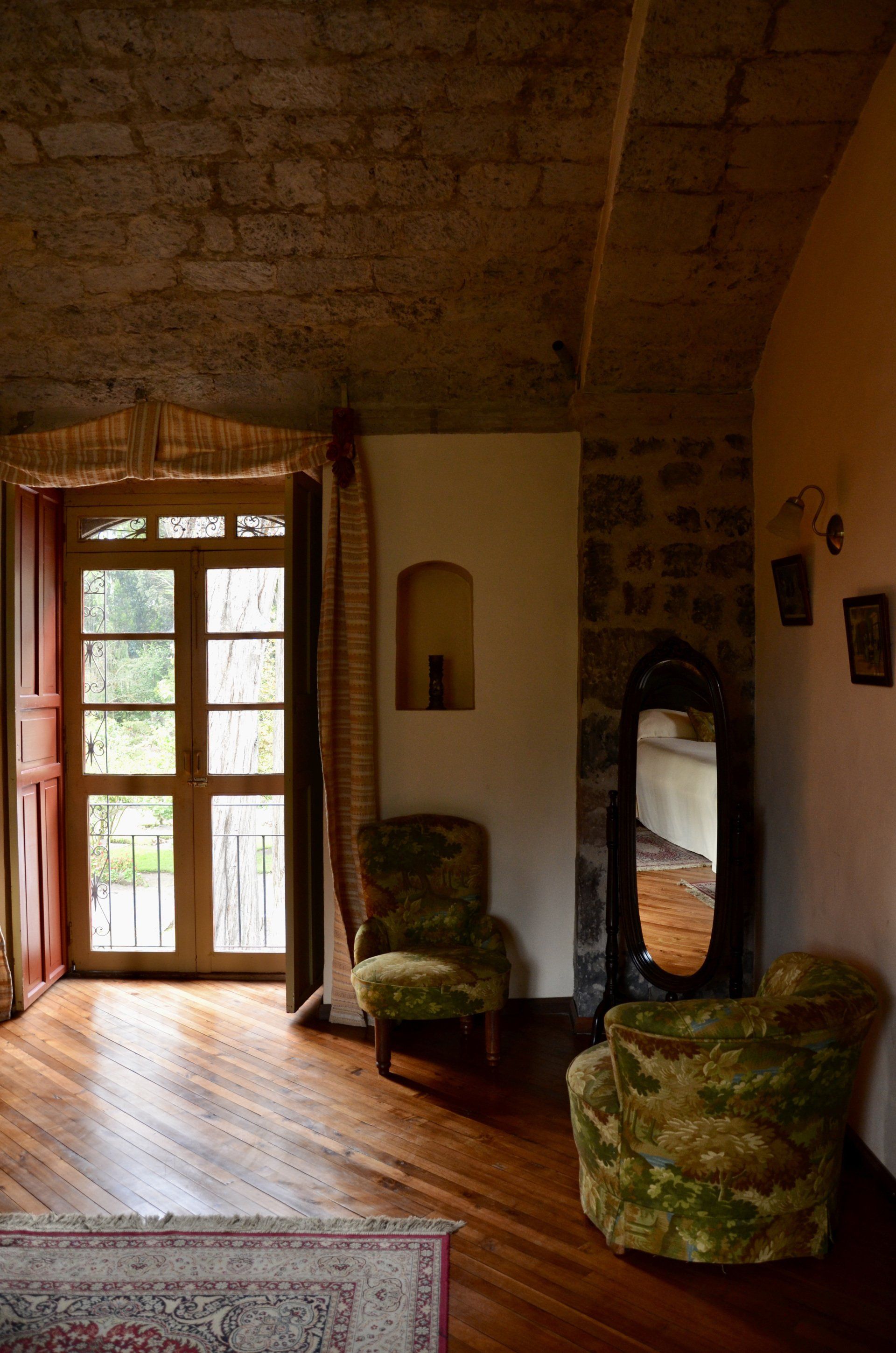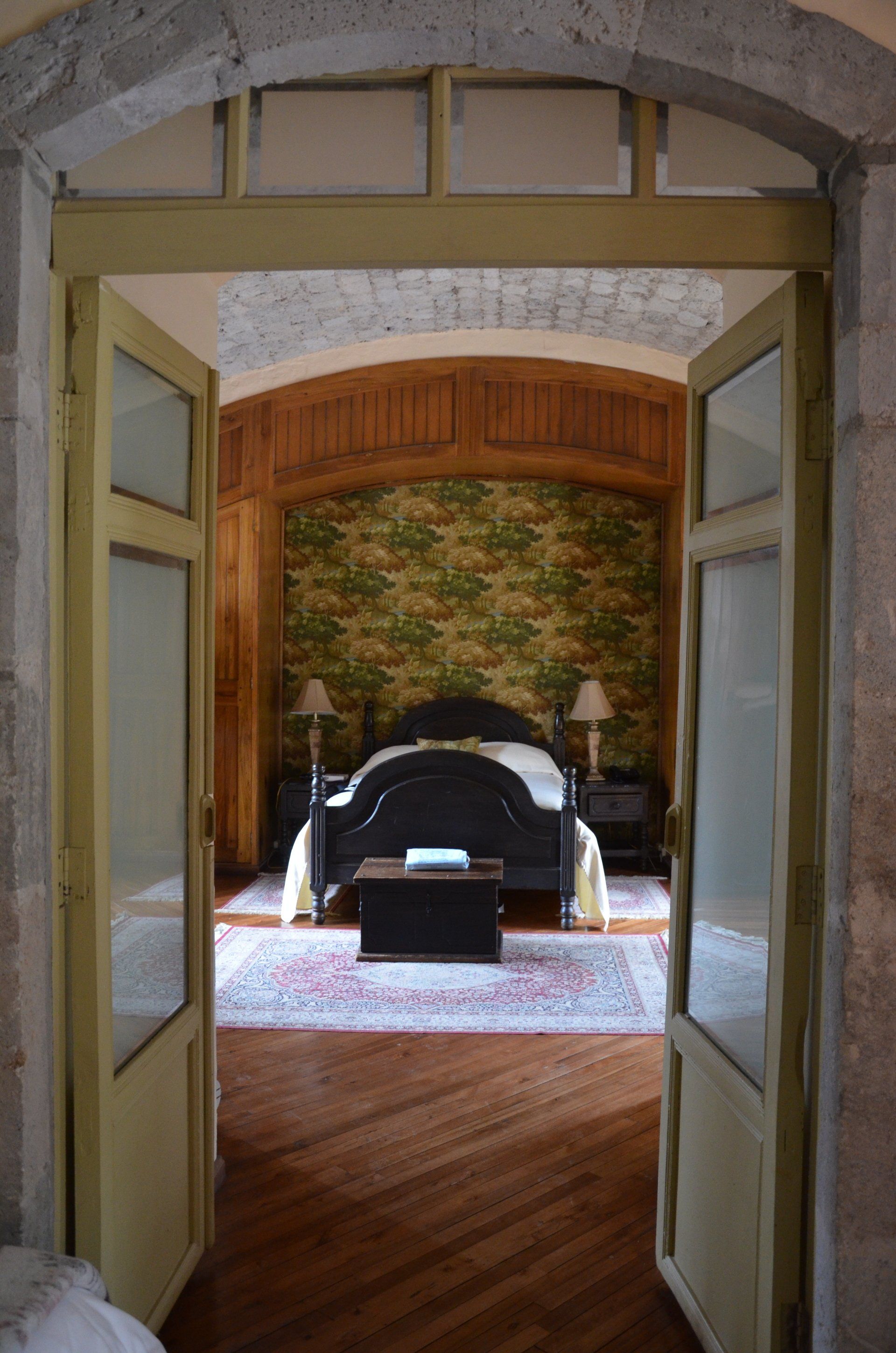 Unsere Suite hat auf jeden Fall alles, was man sich in solch einer altehrwürdigen Hacienda vorstellt. Ein sehr geräumiges Badezimmer sowie zwei nicht gerade kleine Zimmer, die mit alten Möbeln ausgestattet sind, passend zum Flair der Hacienda und gefühlt aus der Zeit Alexanders von Humboldt. Außerdem verfügt das Zimmer über einen Balkon, der uns direkt auf die Allee blicken lässt, was sich leider am Abend als großer Nachteil, um nicht zu sagen als schlechter Scherz, entpuppen sollte. Dazu dann später mehr.
