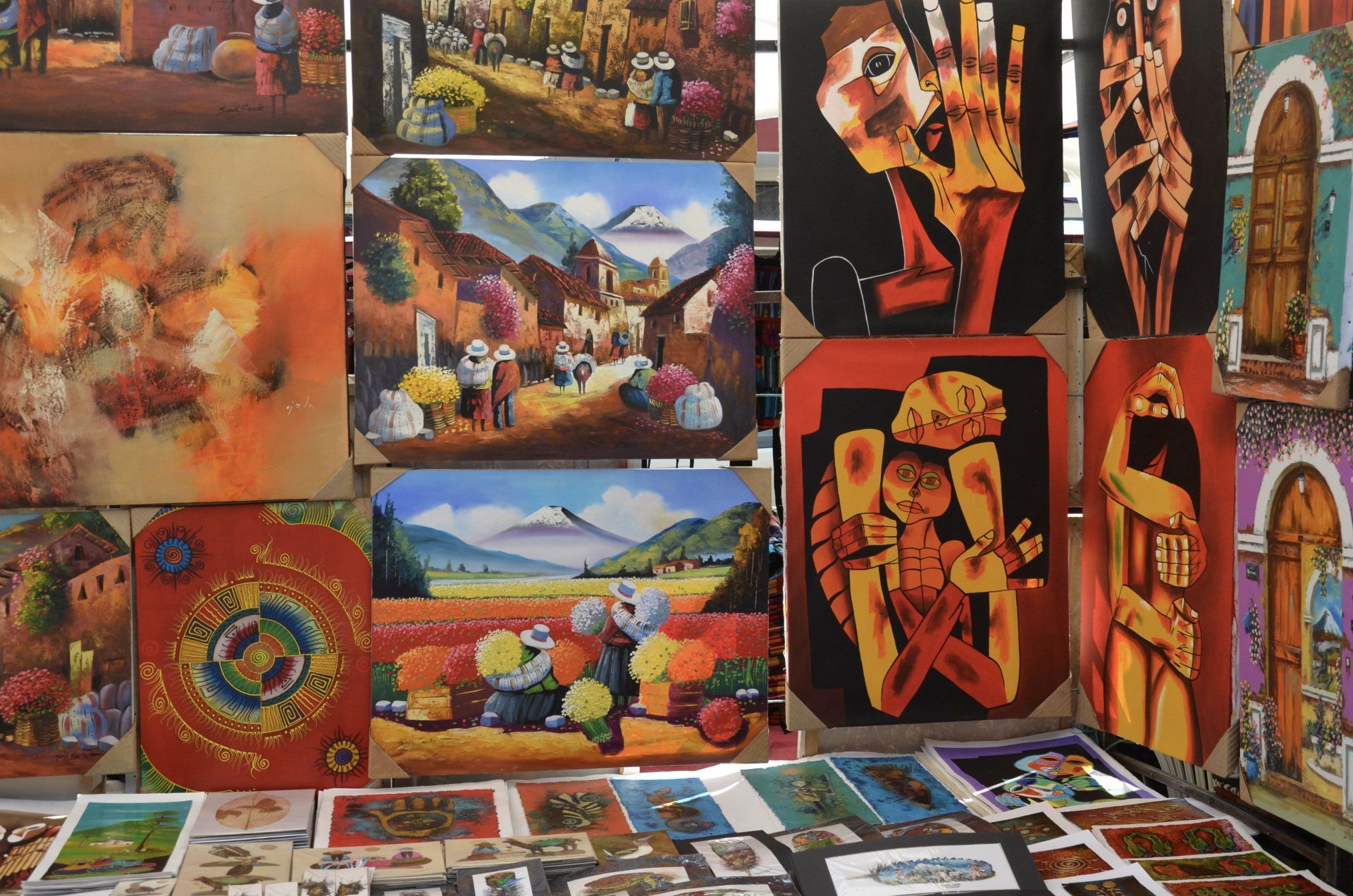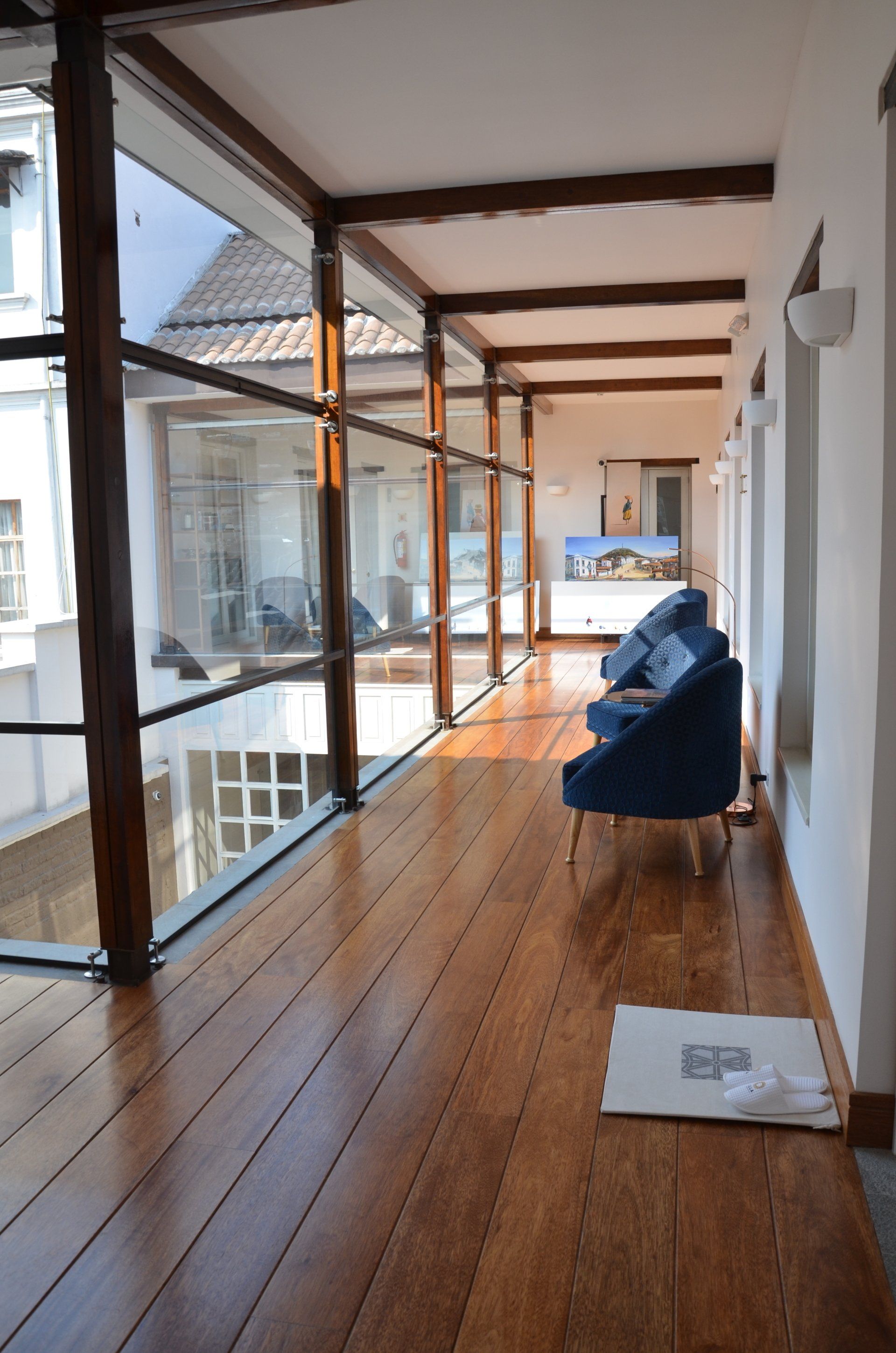Nach gut einer Stunde Fahrtzeit zurück ins Illa Experience, mache ich noch ein paar Fotos vom Hotel. Besonders angetan haben es mir die Gemälde, die besonders im obersten Stockwerk ausgestellt sind. Sie wirken farbenfroh, zugleich modern und stellen zumeist das ländliche Leben in Ecuador dar. Da der Patio des Hotels lichtdurchflutet ist, was in diesen Höhen für mich noch ein wenig eindrucksvoller ist, kommen die Bilder ganz besonders gut zur Geltung.