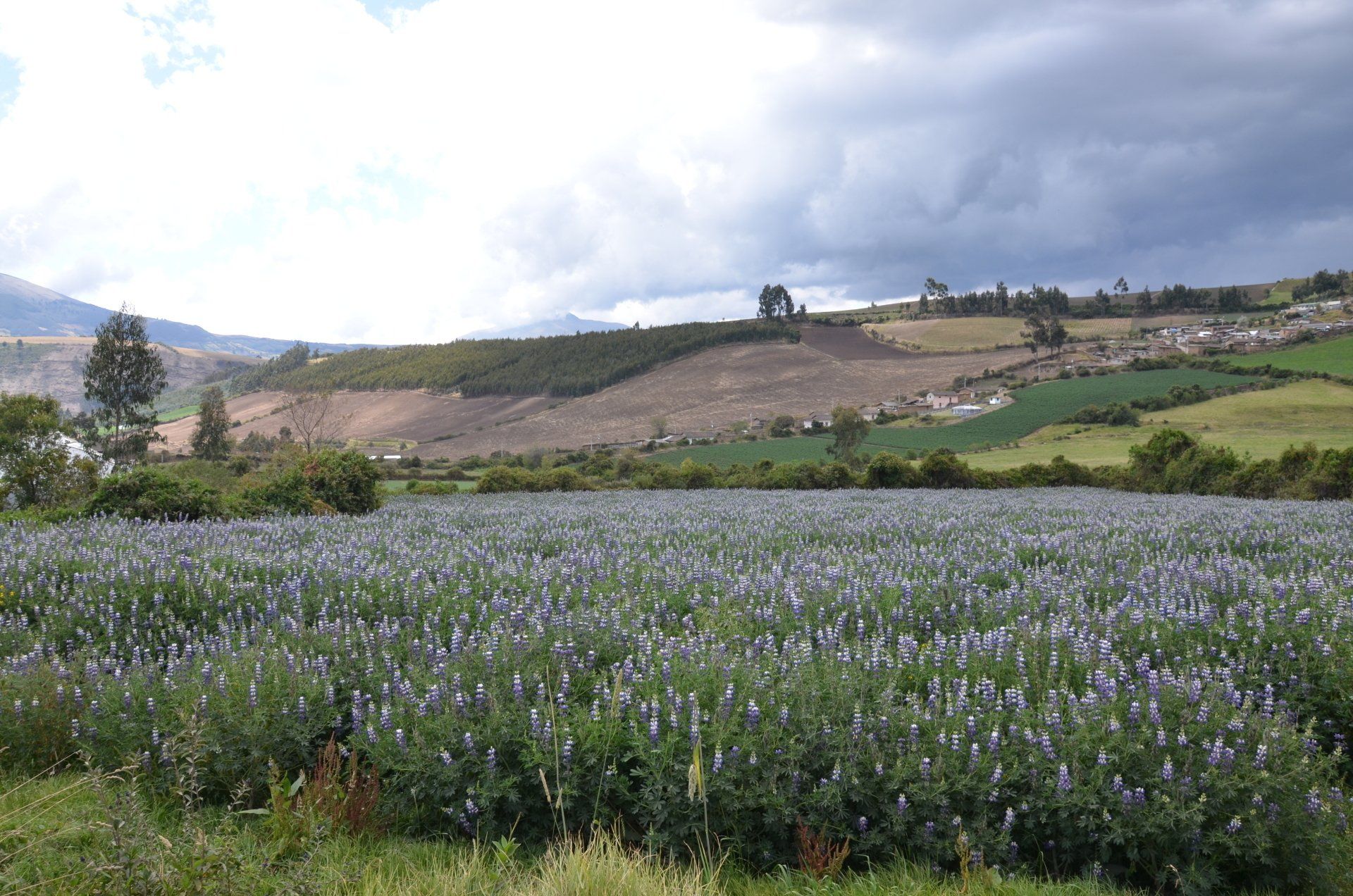 Als ich mich mit der Routenplanung für Ecuador beschäftigt habe, las ich hiervon, und ich wusste gleich, diese Destination ist gesetzt, auch wenn das Gebiet recht abgelegen liegt. Die Fahrt führt uns zuerst durch das subtropische Chota-Tal, bevor die Strecke mal merklich und dann wieder nur leicht ansteigt. Manolo muss immer mal wieder für mich anhalten, besonders angetan haben es mir die vielen Lupinenfelder. Diese Pflanze gehört zur Familie der Hülsenfrüchte und dank einigen Jahren Schullatein, erkenne ich den Wortstamm Lupus für Wolf. So entdecke ich zum wiederholten Mal, dass mir das früher nicht gerade liebgewonnene Deklinieren und Konjungieren in dieser toten Sprache dann auch beim Reisen hilfreich sein kann. Nichtsdestotrotz weiß ich aber trotzdem nicht, was der Wolf nun mit Lupinen zu tun hat. Egal, wir fahren weiter.