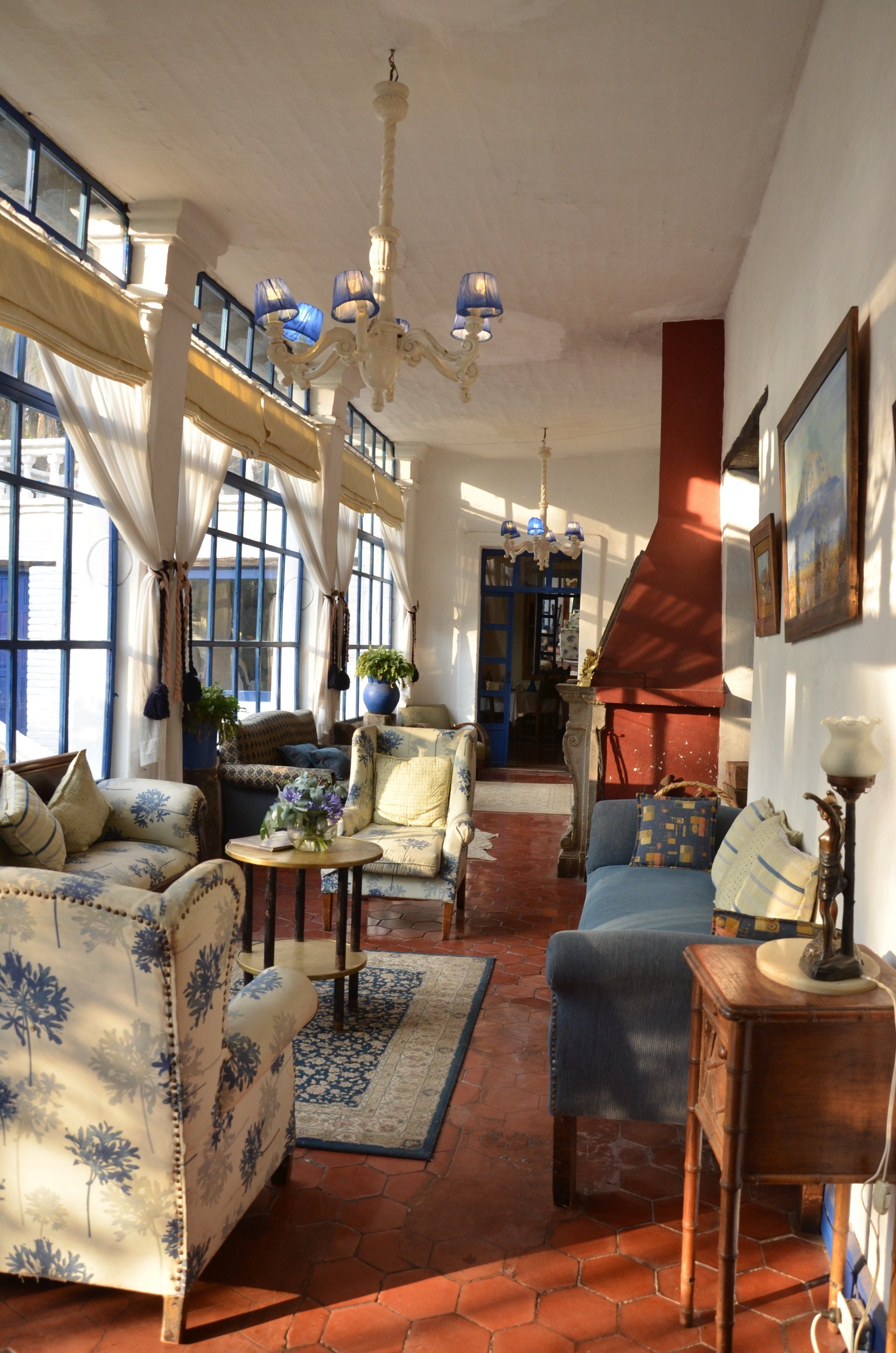 Bis zum Abend fühlen wir uns sehr wohl in unserer Humboldt Suite bis, ja bis es im wahrsten Sinne filmreif wird. Wir liegen bereits im Bett, mein Mann liest und ich vervollständige die Reisenotizen. Es ist sicherlich schon 22:00 Uhr. Zuvor hatten wir draußen schon einige Geräusche wahrgenommen, konnten aber nicht rausschauen, weil alle Fenster mit schweren Holztüren verschlossen sind und wir diese nicht extra öffnen wollten. Plötzlich trommelt es an unserer Tür. Ich gehe hin, davor steht ganz aufgeregt eine Mitarbeiterin der Hacienda. Ich verstehe nur „Filmaufnahmen, ganz wichtig“ und „unbedingt die Fenster öffnen“ sowie „überall Licht einschalten“. Für mich ist das Ganze irgendwie wirr, sodass ich nachfrage, bekomme aber keine Antwort, stattdessen zwängt sich die Frau durch die Tür, läuft aufgeregt zu den geschlossenen Holzverkleidungen der Fenster im ersten Raum, öffnet diese, schaltet jeden Lichtschalter an, den sie finden kann und wiederholt das Ganze dann im Schlafzimmer. Mein Mann schaut mich verwundert an und fragt sich, was hier gerade vor sich geht. Ich frage mich das allerdings auch und renne hinter der Frau her, will die erste Holzverkleidung wieder schließen, sie kommt zurück und greift zur Holzverkleidung und hält mich von meinem Ansinnen ab. Dann sehe ich nach draußen und blicke in riesige, helle Scheinwerfer, nehme allerlei Technik und Menschen wahr, die zu mir hochschauen und stelle fest, hier werden gerade Filmaufnahmen gemacht. Na klasse und ich mittendrin im Schlafanzug!